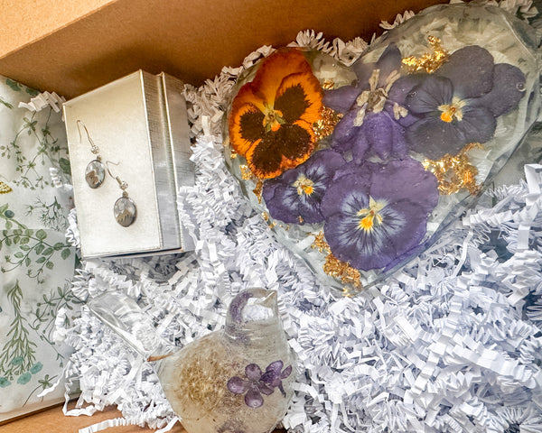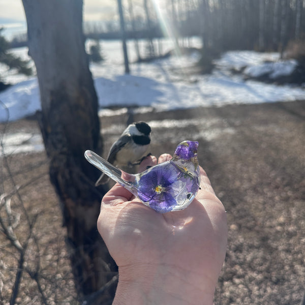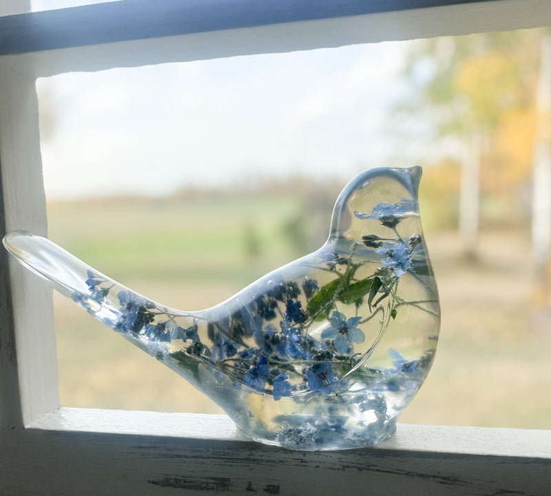 Unlike fresh bouquets, our Boreal Birds and Jewelry stay in bloom for a lifetime. Each piece is UV-resistant and set in glass like resin.