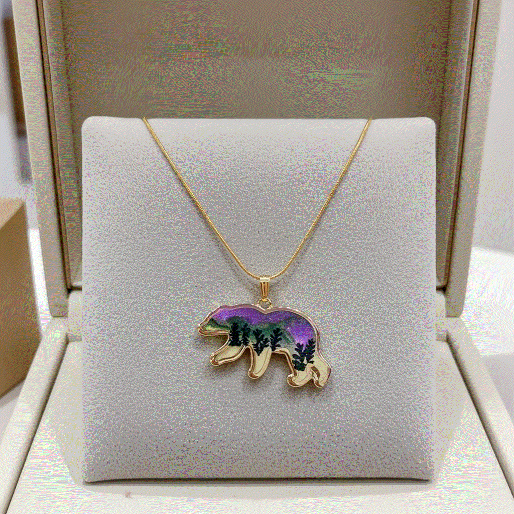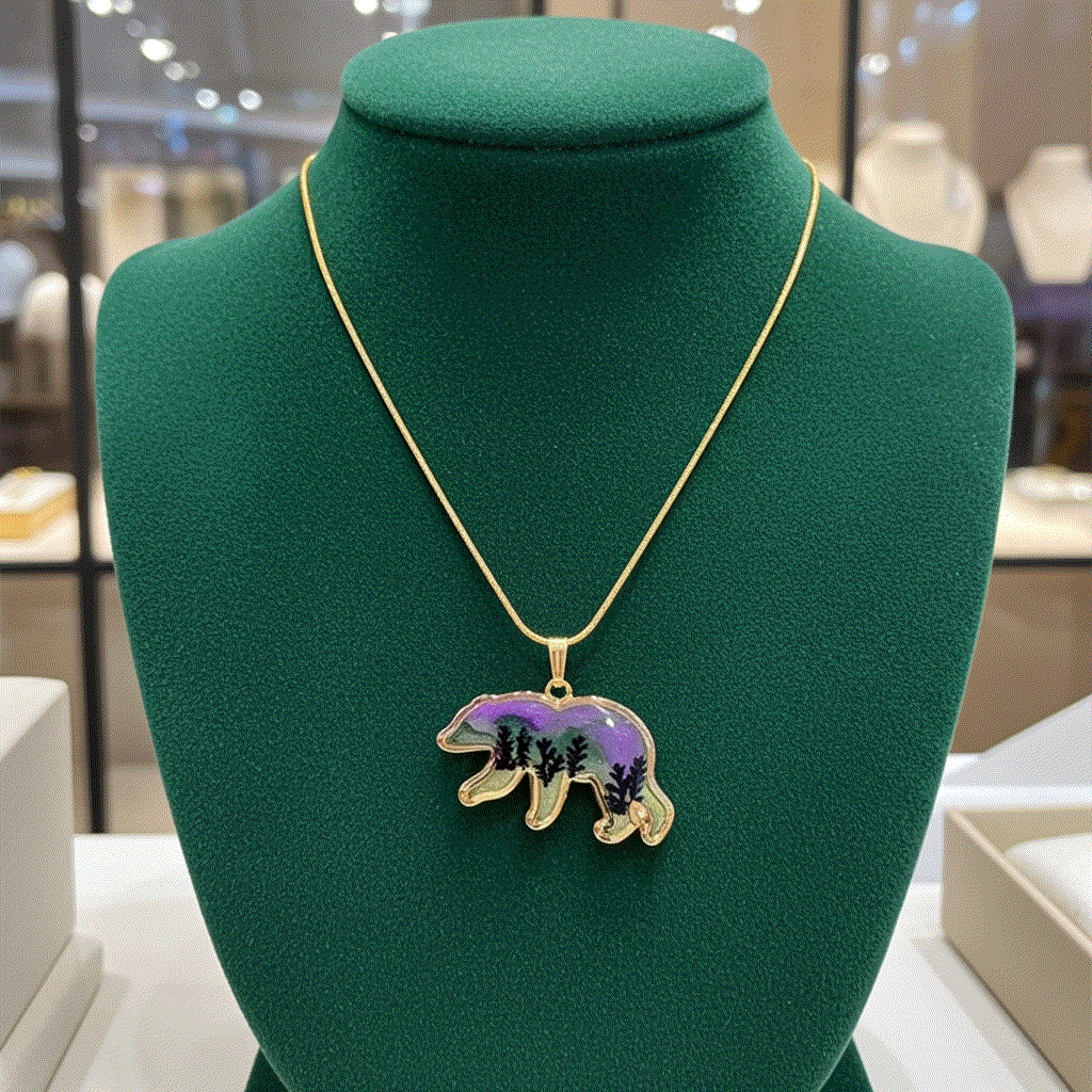 Northern Lights Spirit Bear - Handmade Resin Aurora Pendant