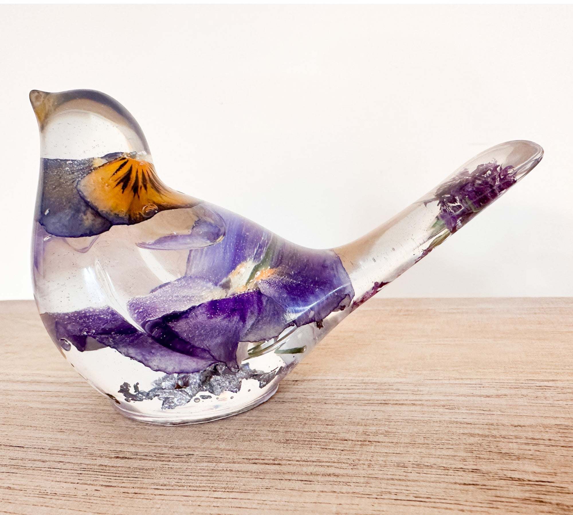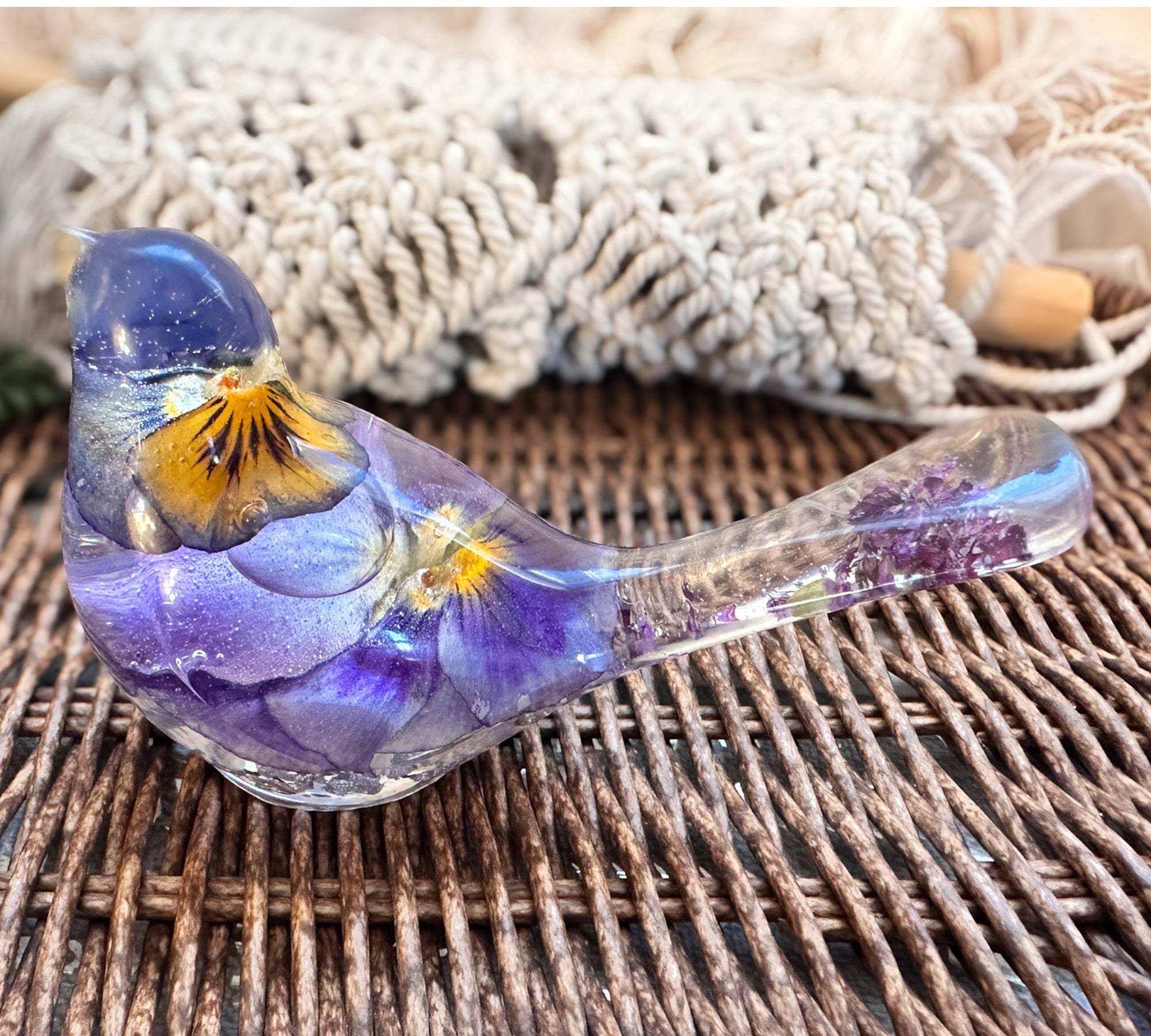 Purple Pansy Botanical Bird - Handmade Resin Floral Home Decor
