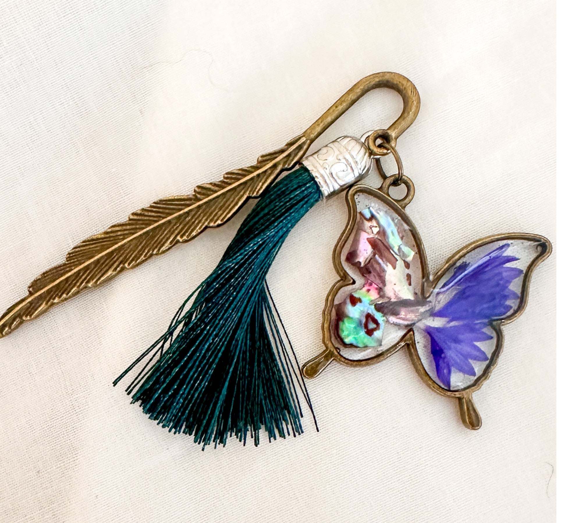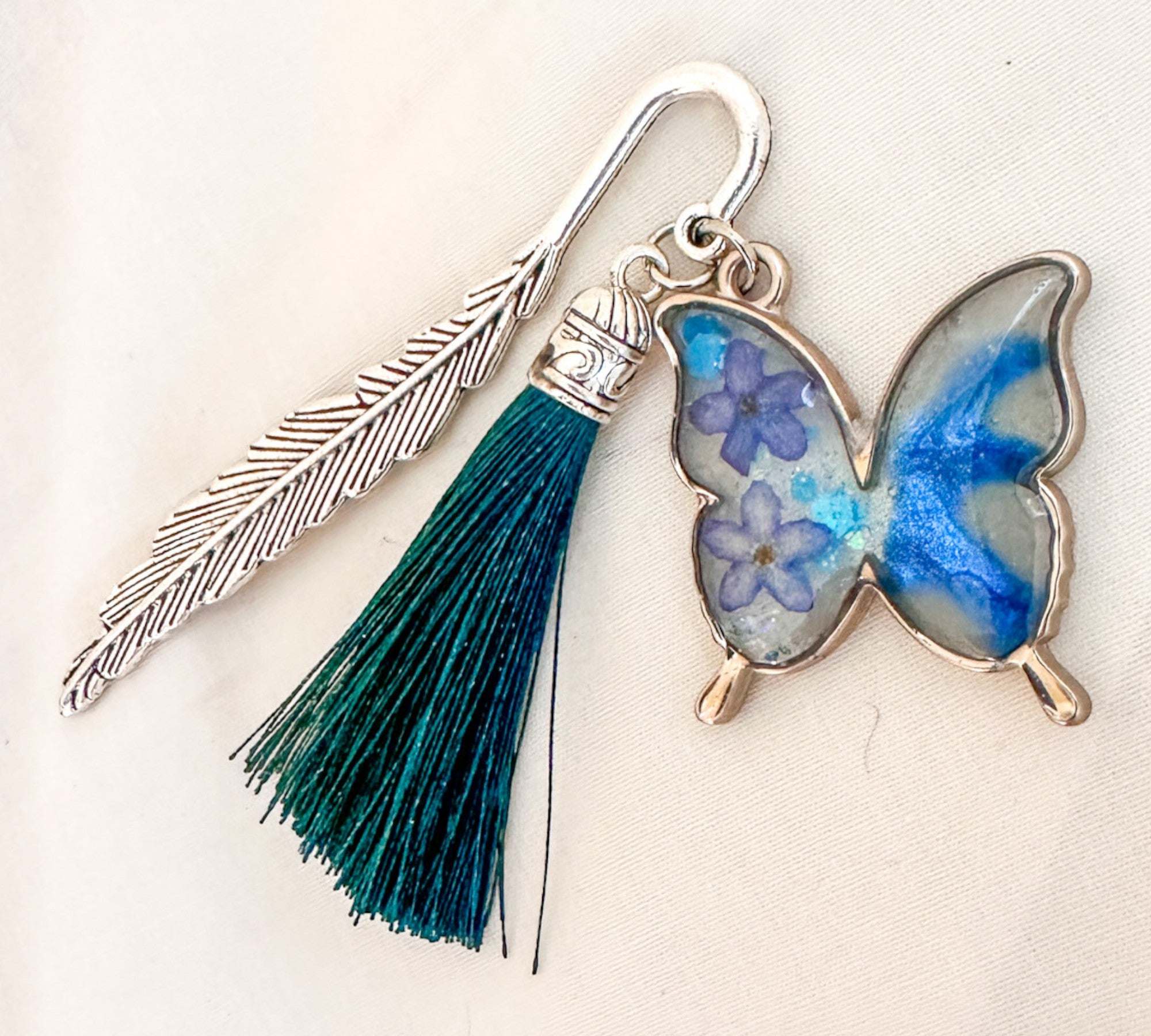 Butterfly Bookmarks- Handmade with Floral Accents & Metal Hook