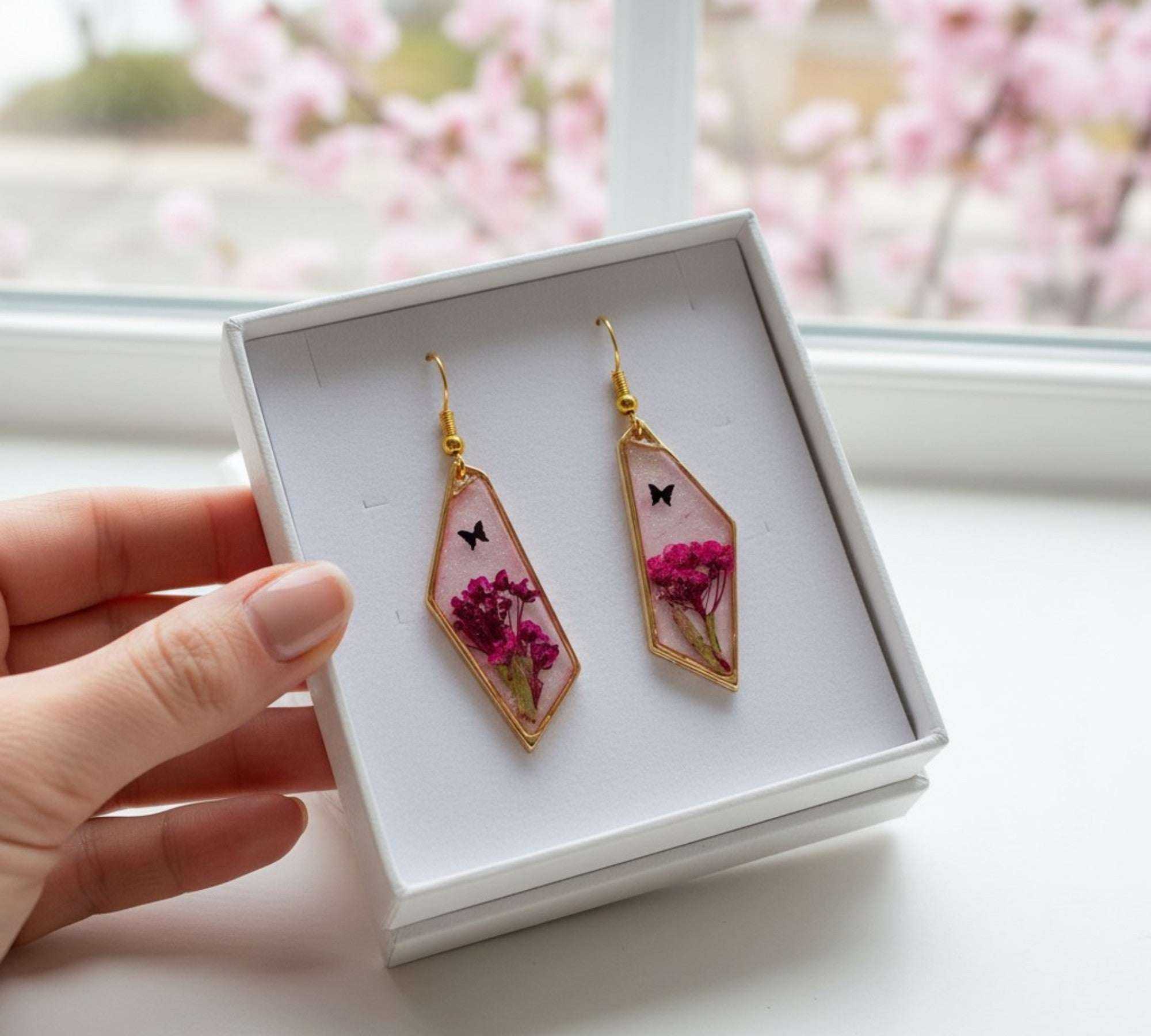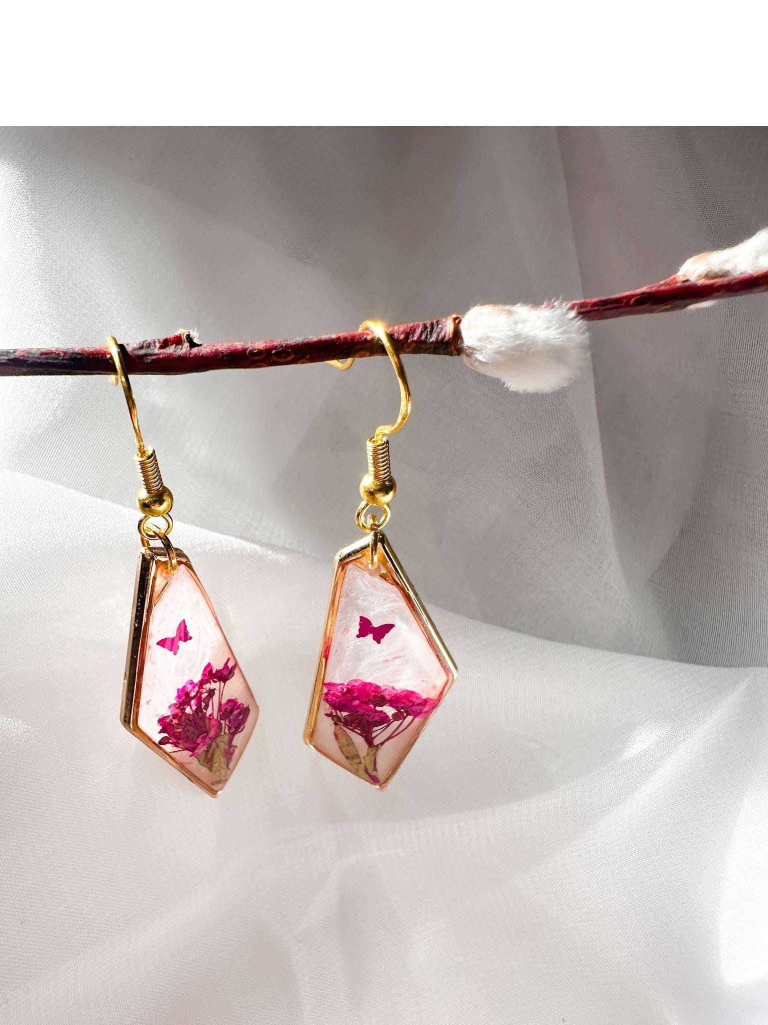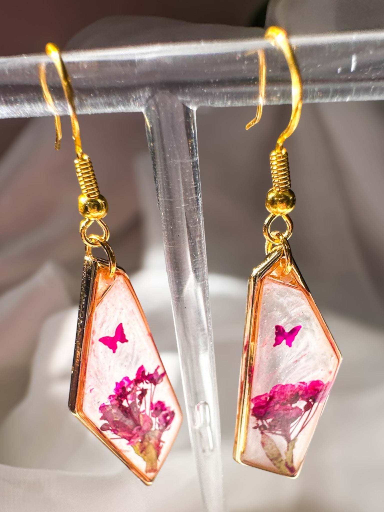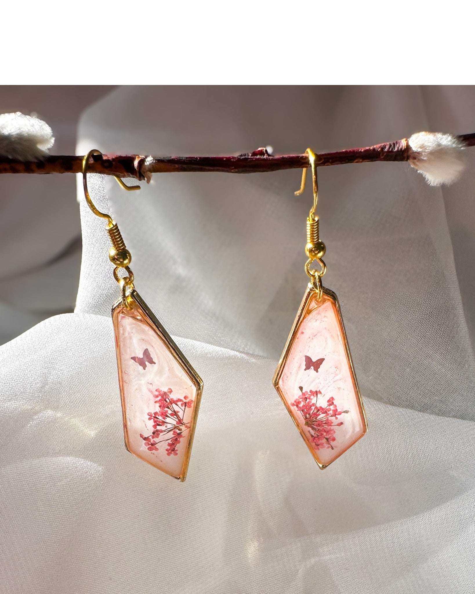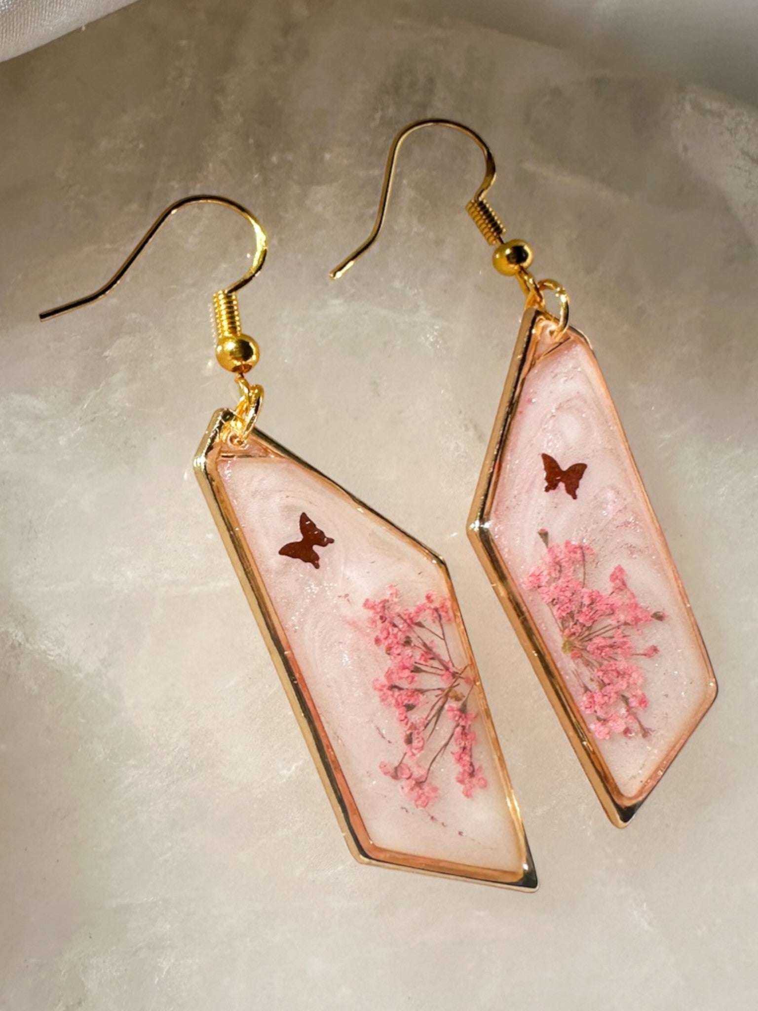 Blushing Wings - Pink Butterfly Resin Earrings