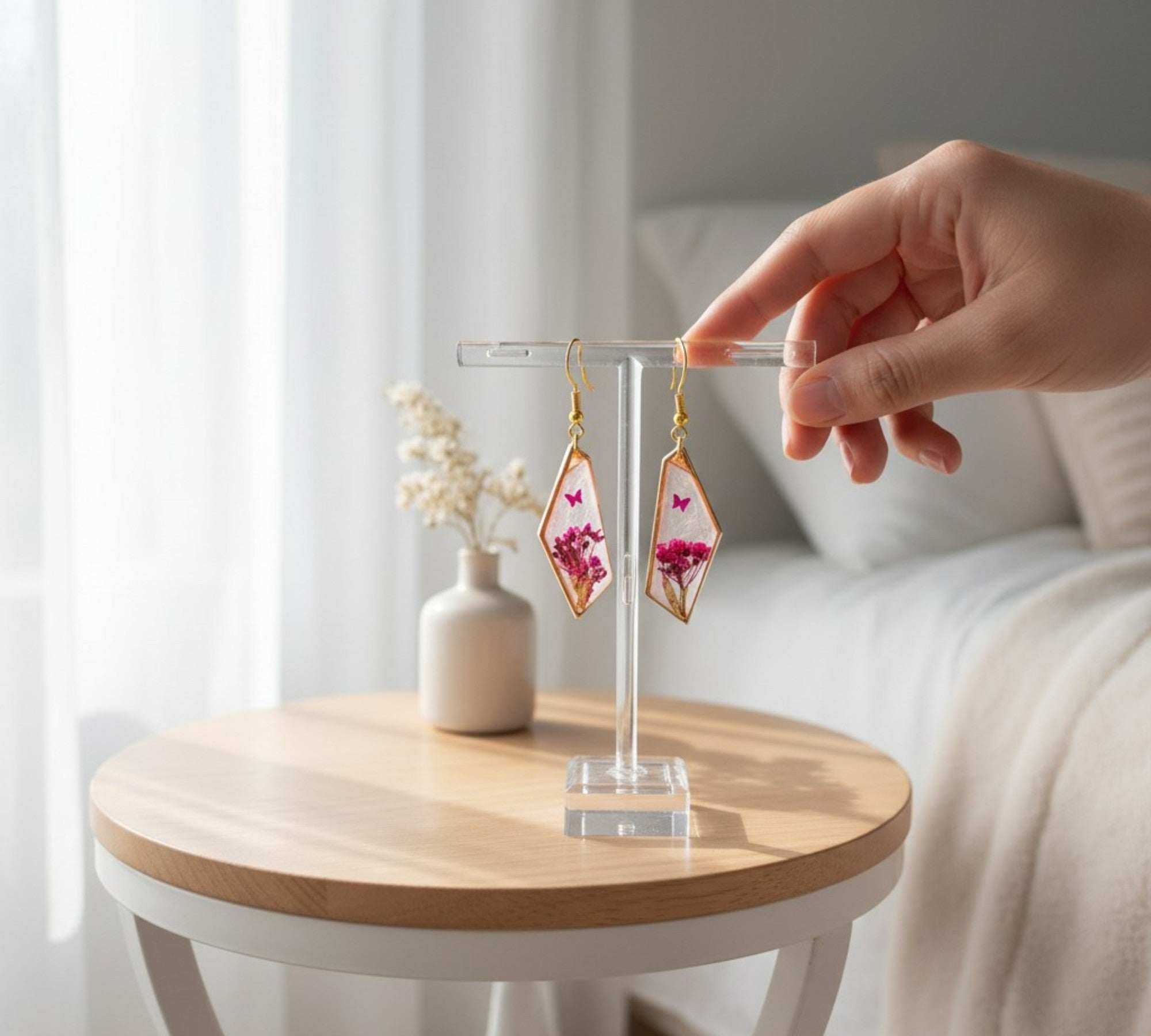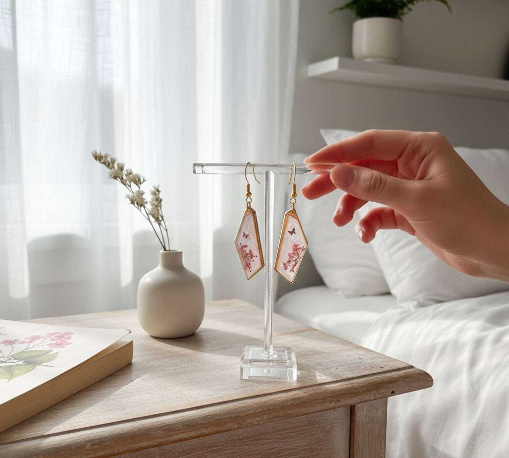 Nature never repeats its patterns, and neither do we. While each earring set is designed for perfect harmony, the organic variation of our hand-picked botanicals ensures your pair is truly unrepeatable—a personal statement of elegance and a living connection to the wild.