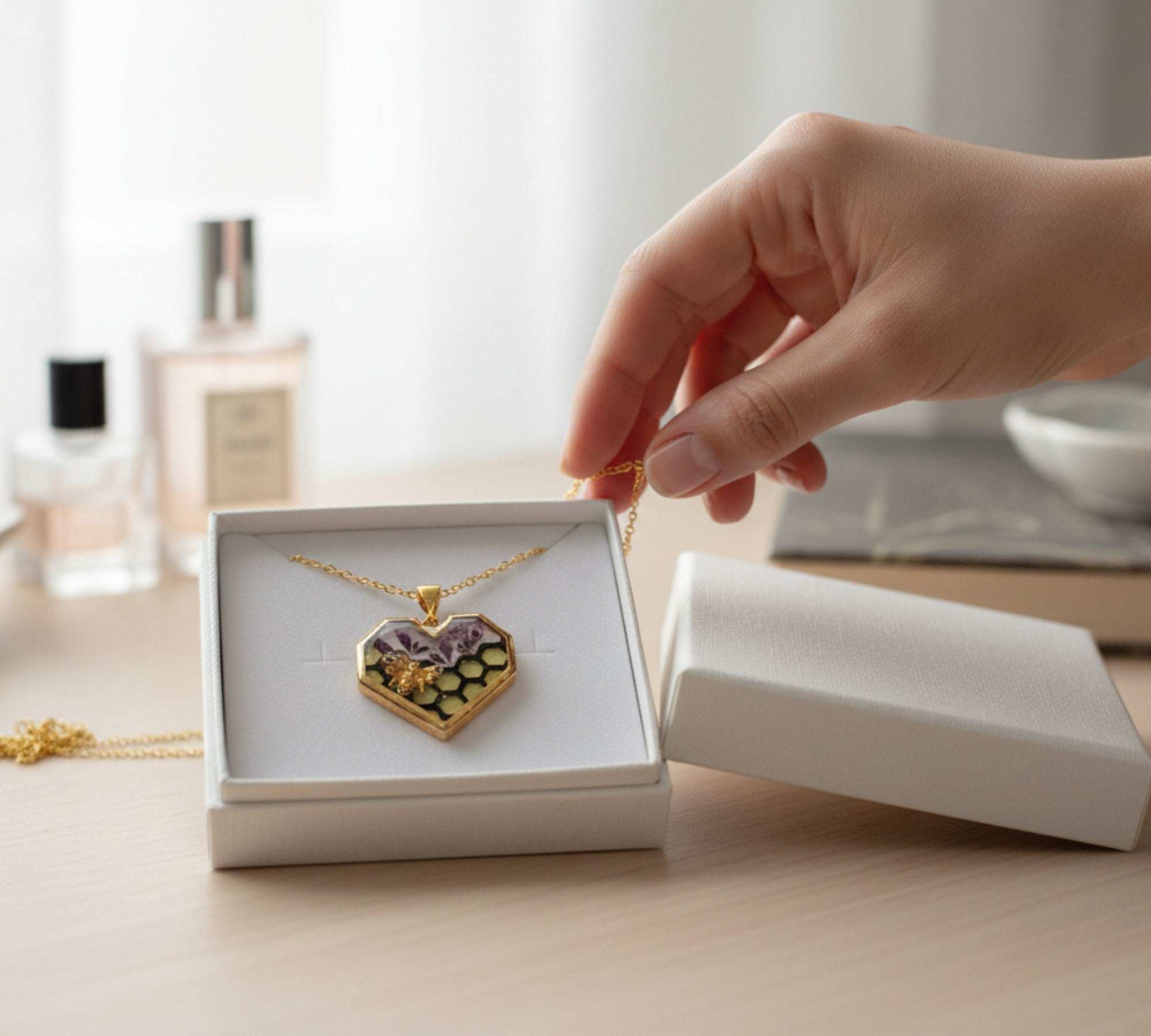 We use premium, UV-resistant resin specifically formulated to protect the botanicals and prevent yellowing. With proper care, your pendant will remain vibrant and crystal clear for years to come.