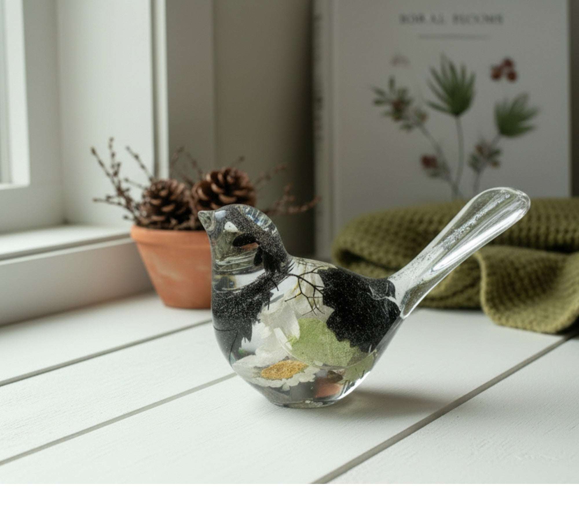 Every bird contains real, hand-picked botanicals—never plastic or silk—ensuring your art is as authentic as the forest itself.