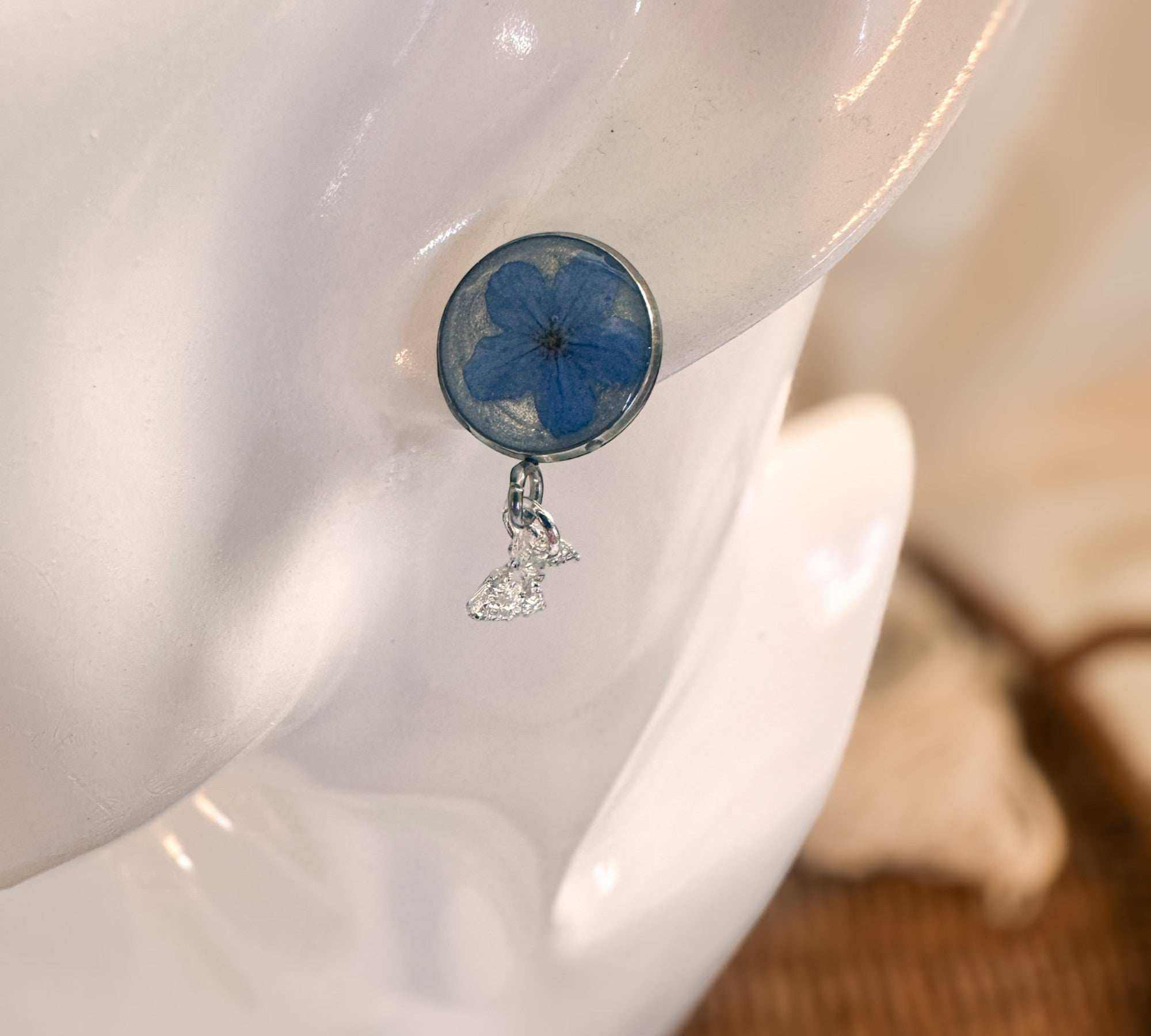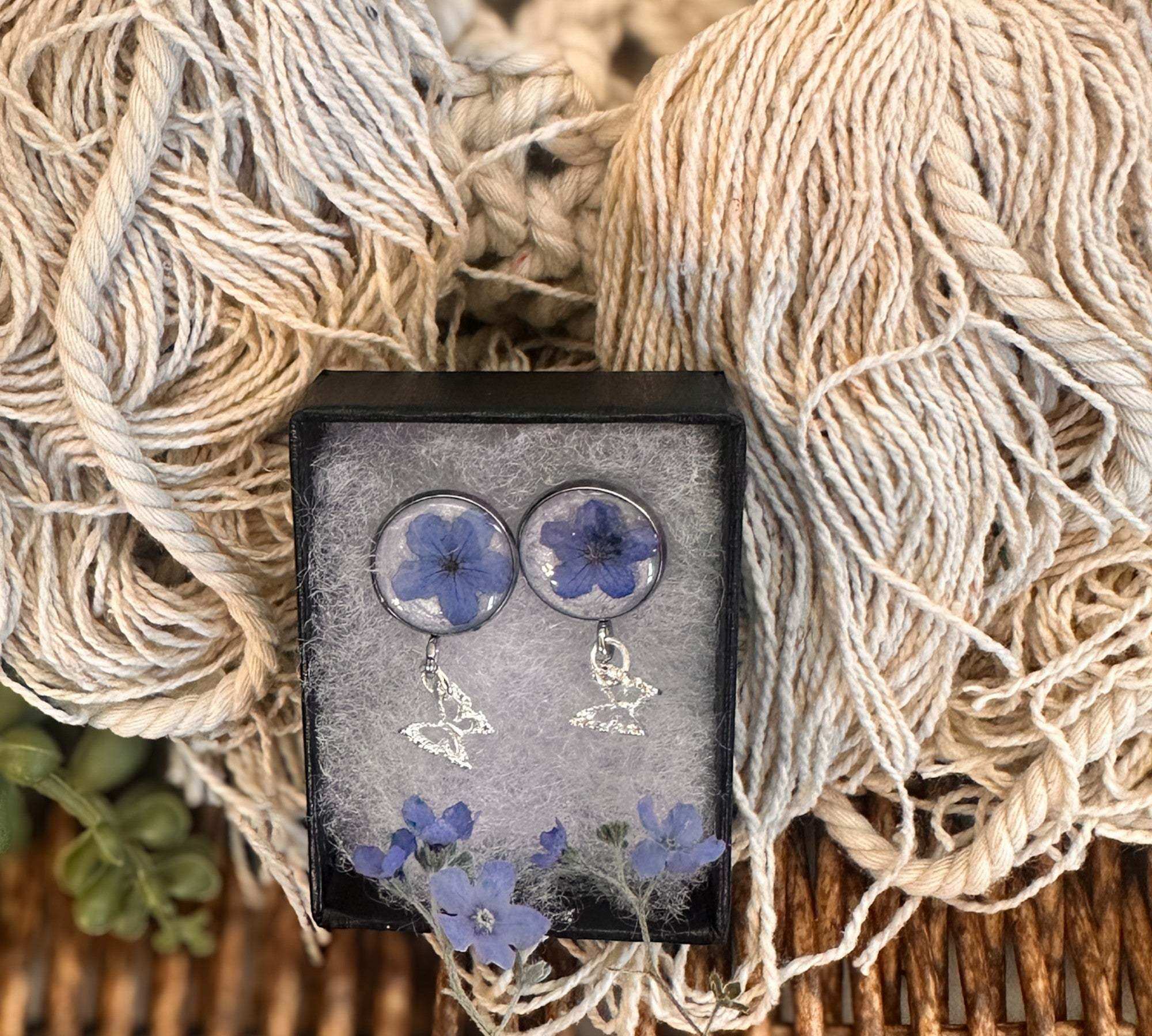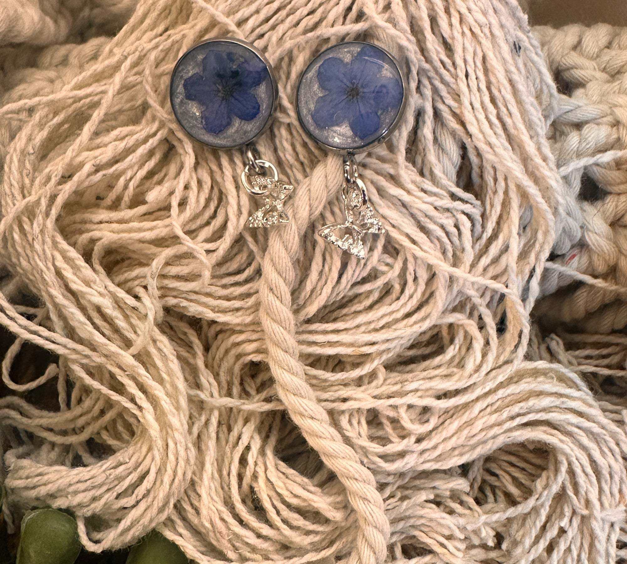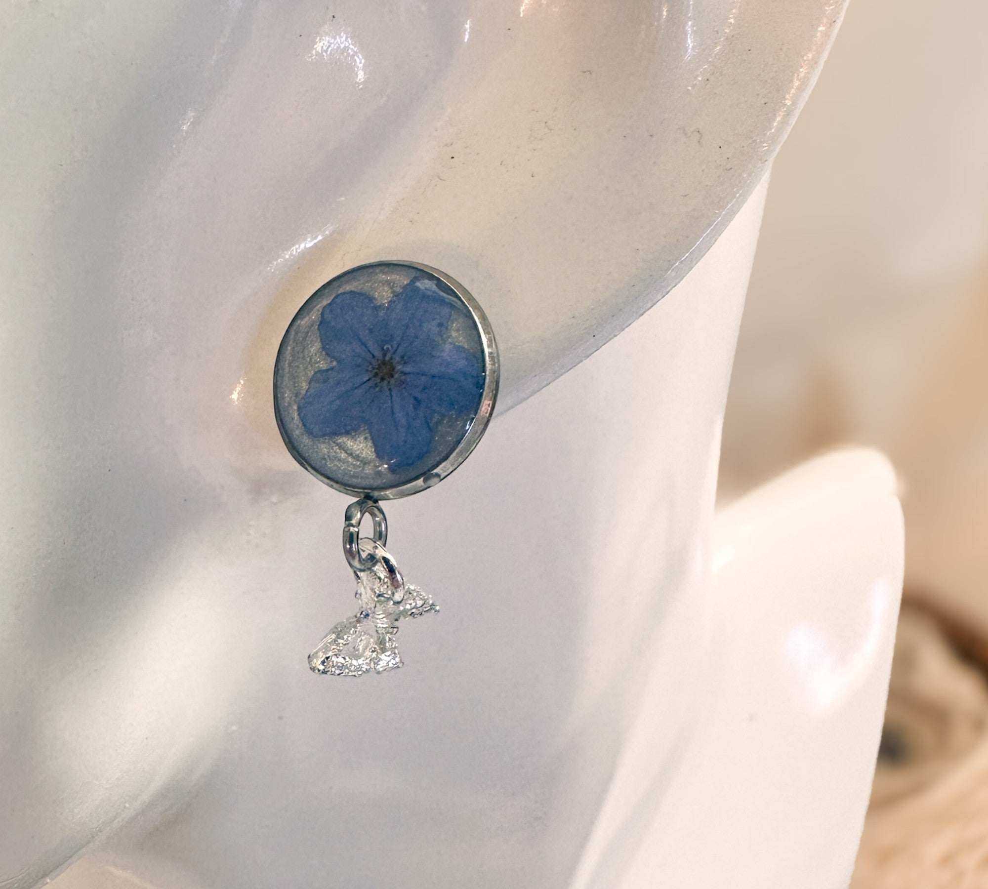 Forget-Me-Not Butterfly Resin Stud Earrings–Handmade with Real Flowers