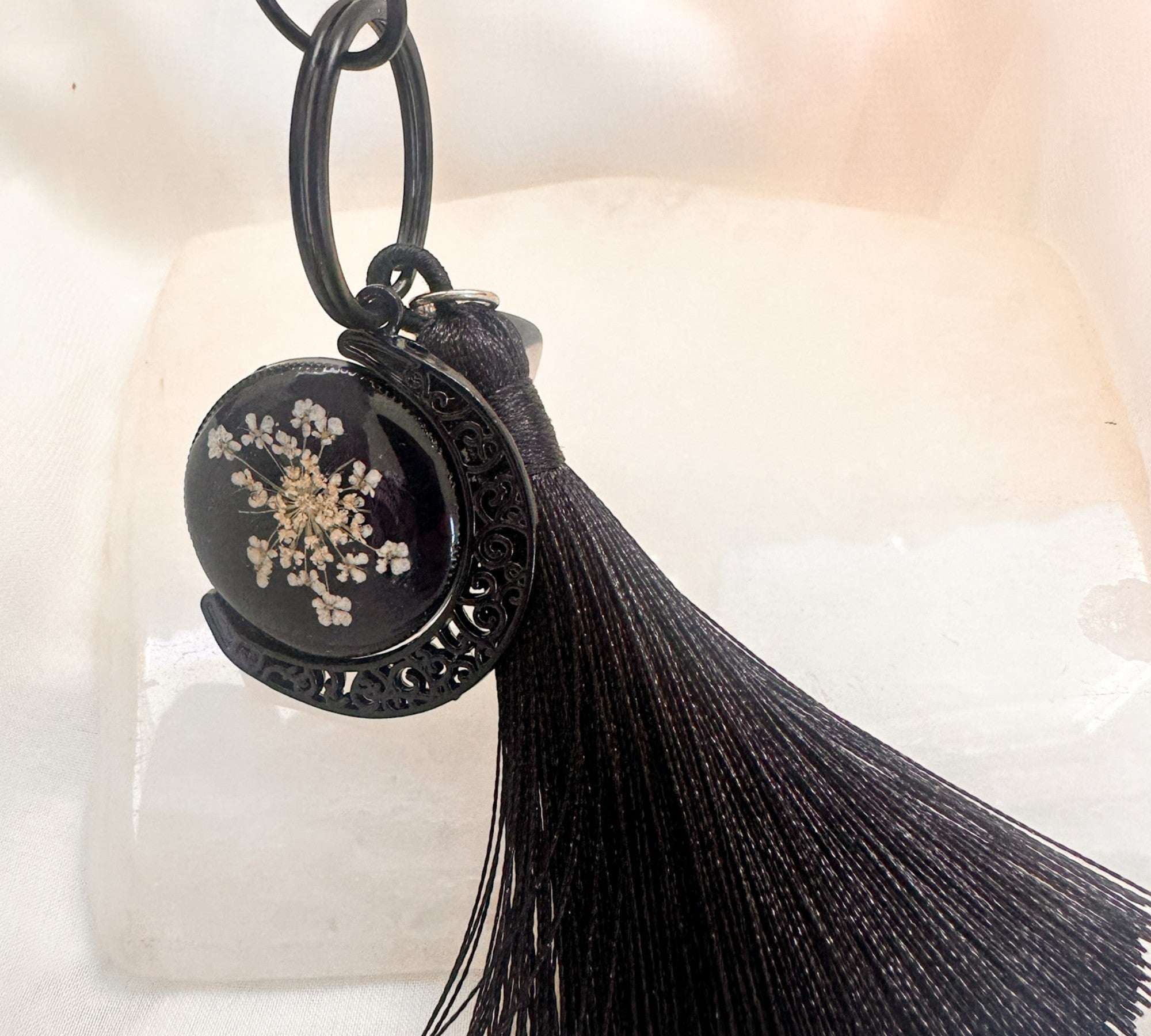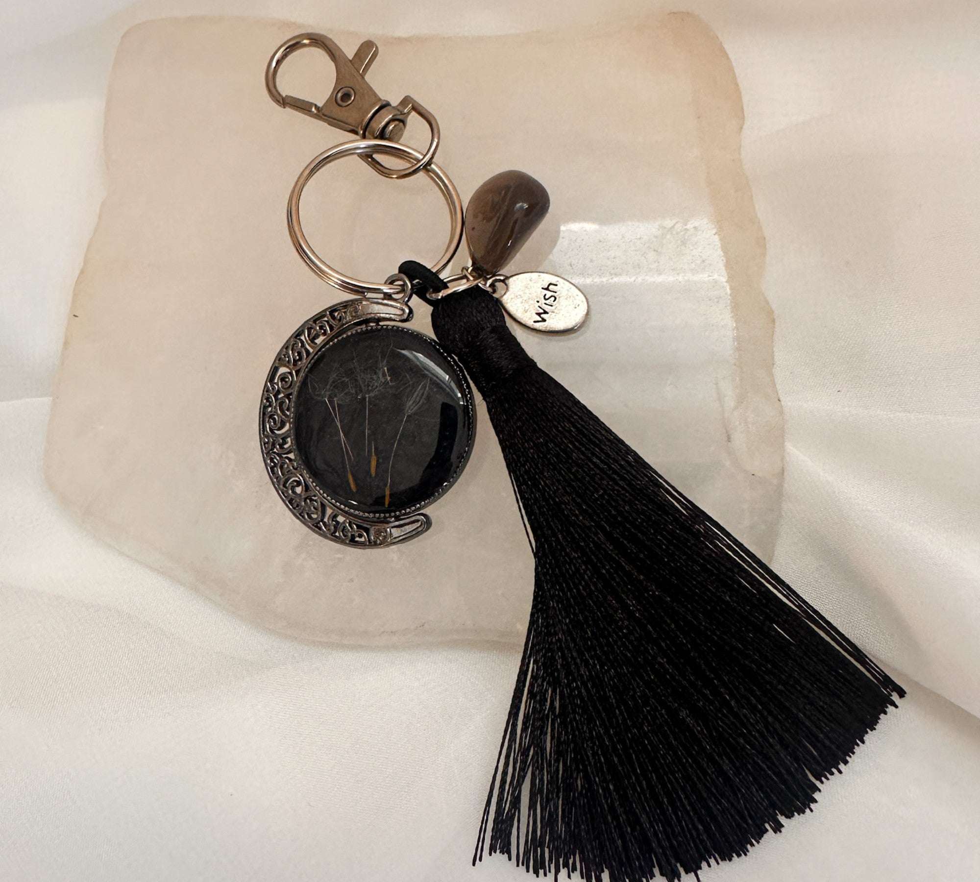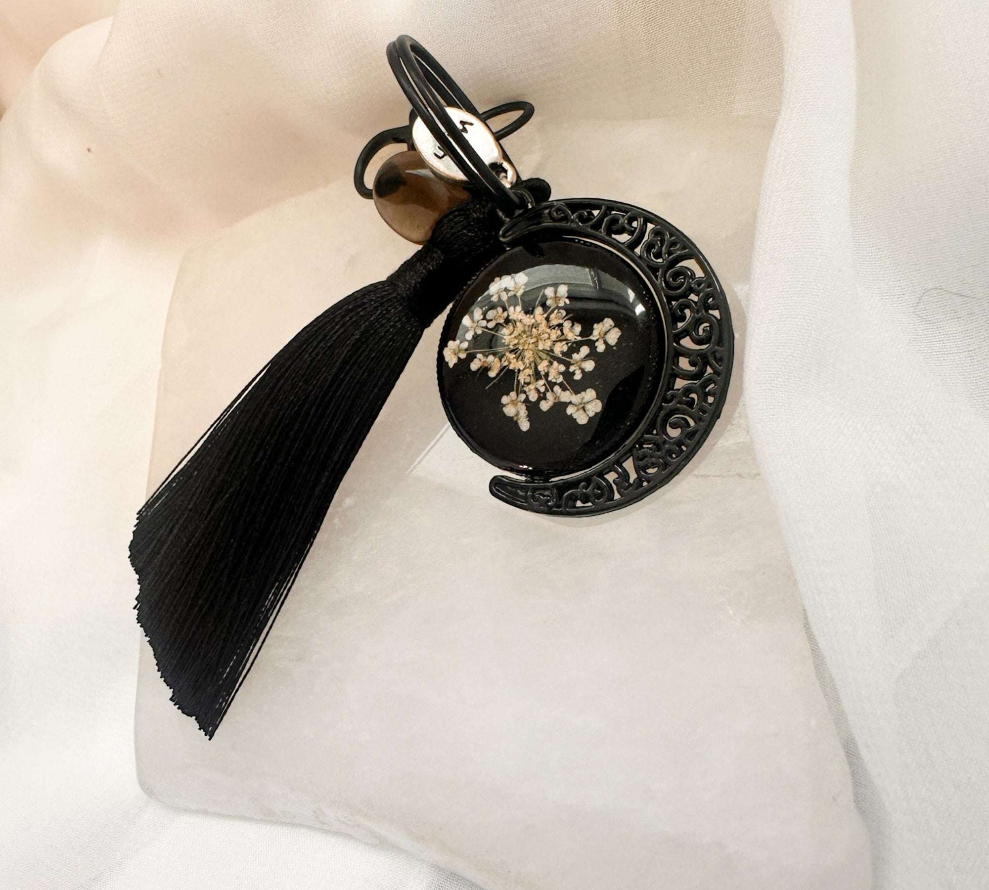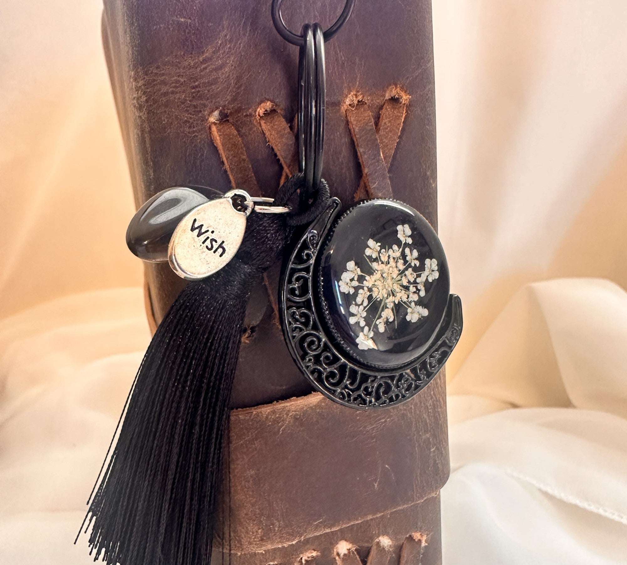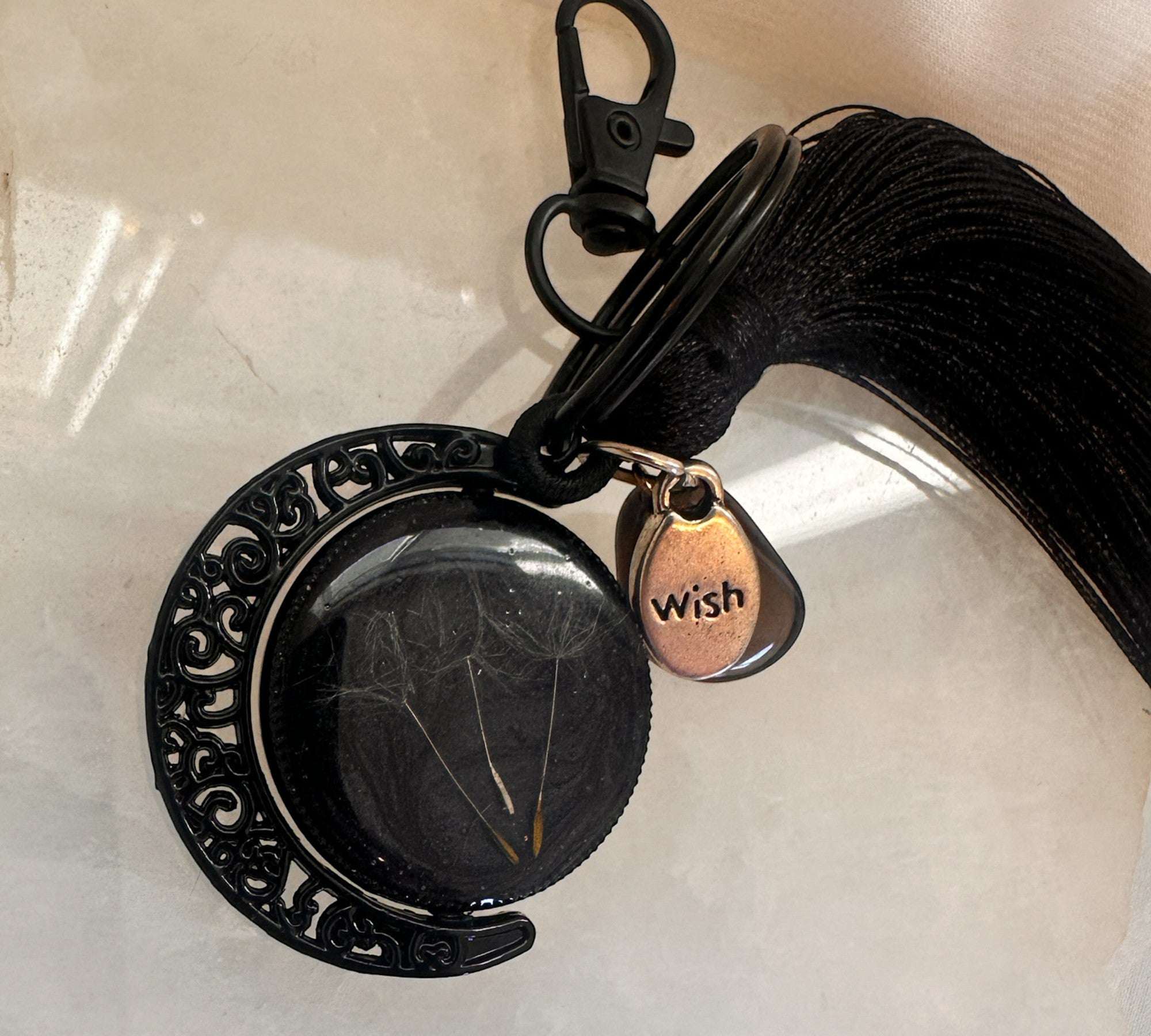 Moon Wish Bagcharm/Keychain - Handmade Rotating Moon Wish & Flowers