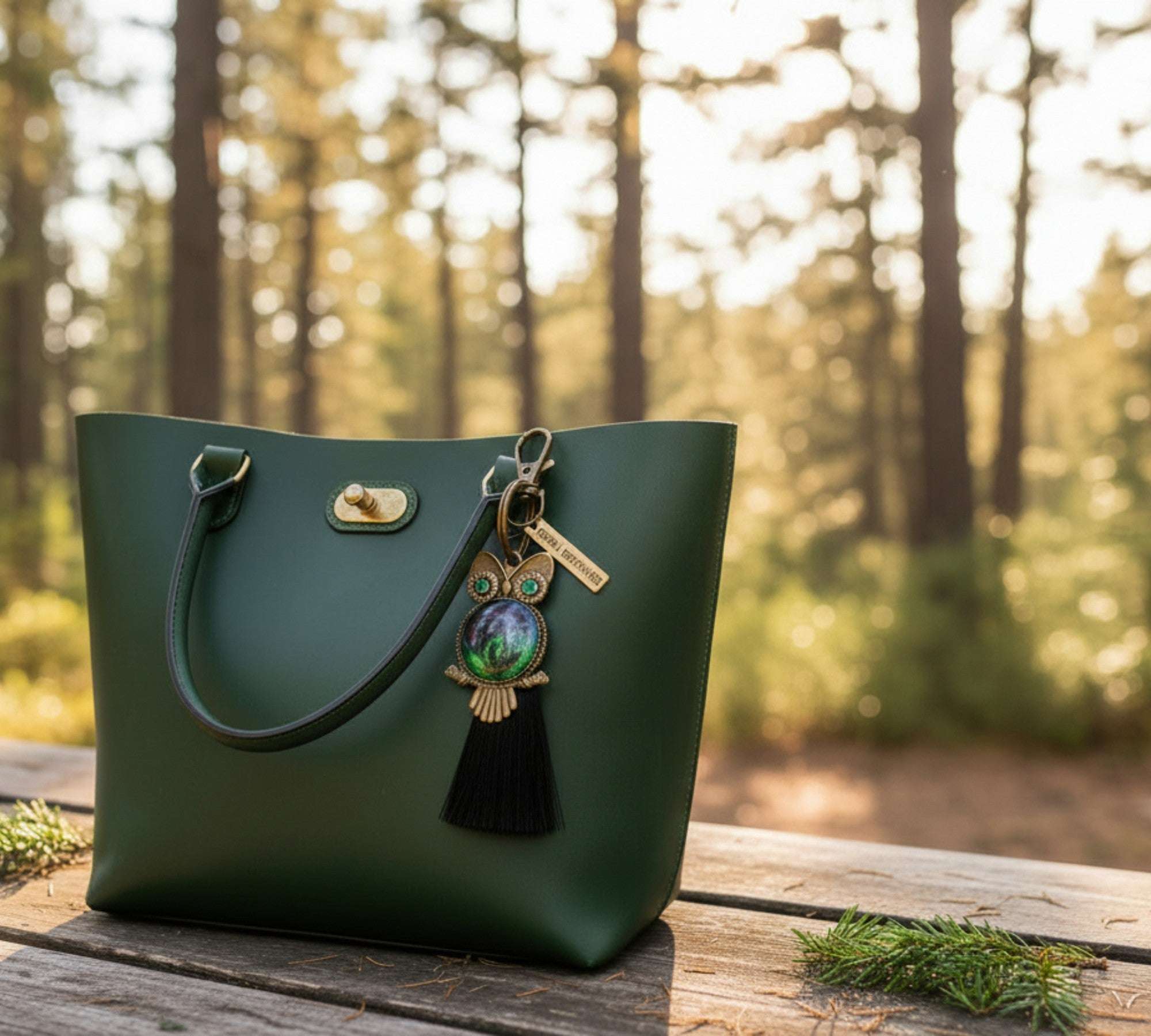 • Handcrafted resin owl charm with aurora-inspired greens and purples