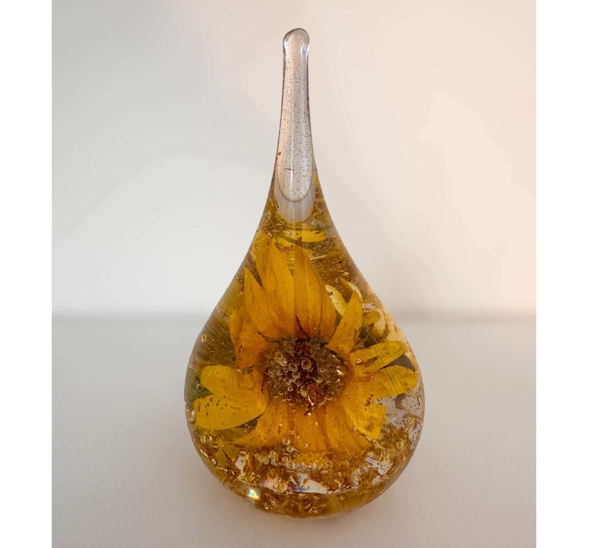 Resin Pyramid with a sunflower inside and a dragonfly