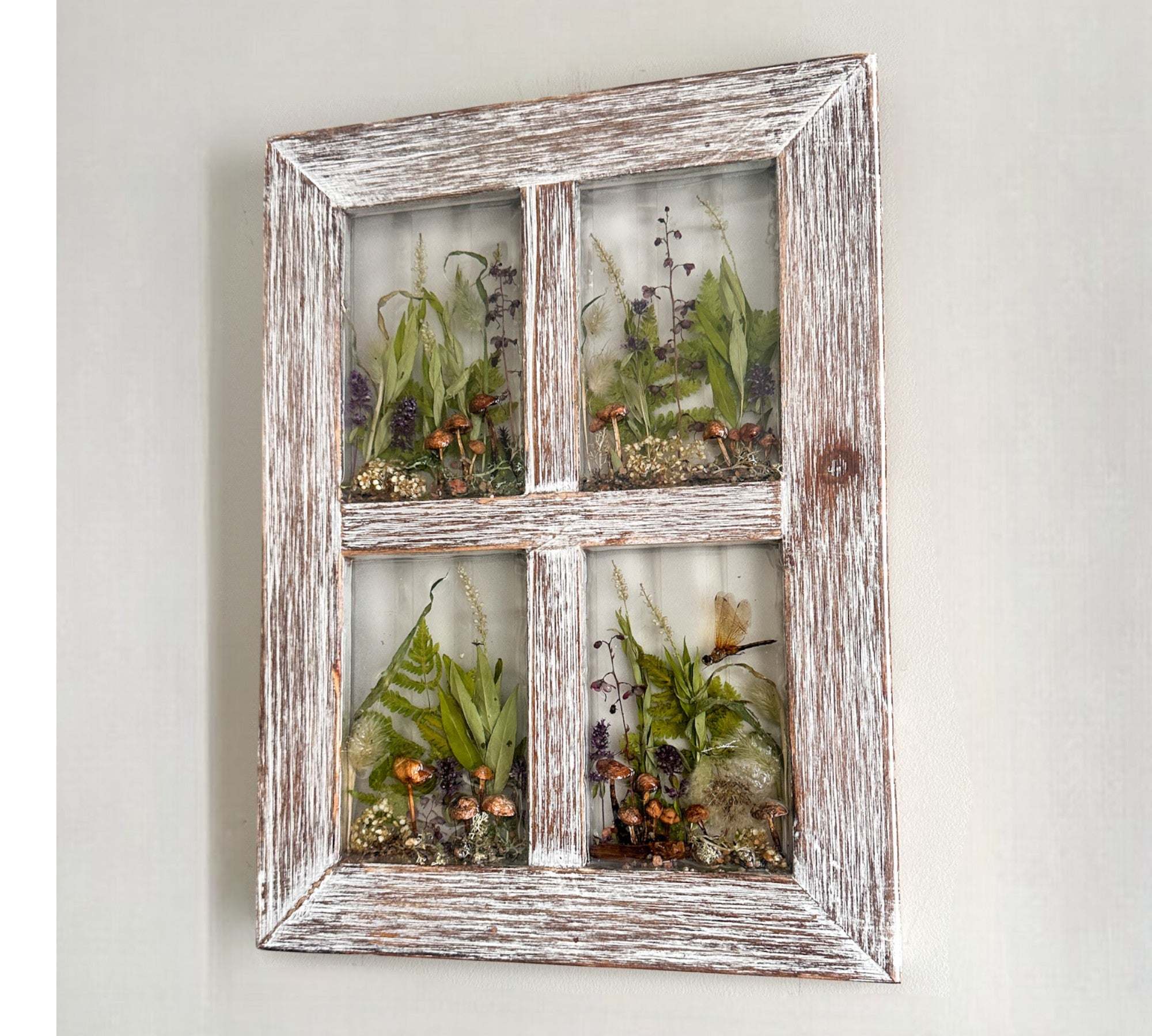 Woodland Whispers - Handmade Rustic Wood Botanical Resin Window