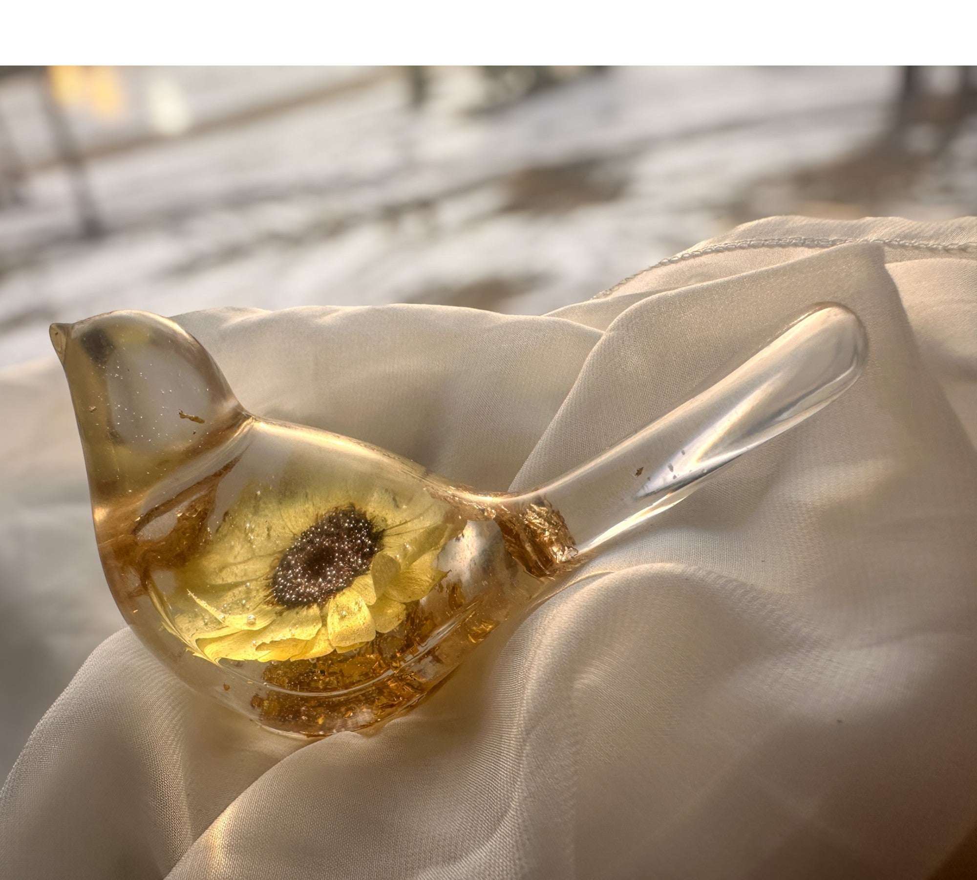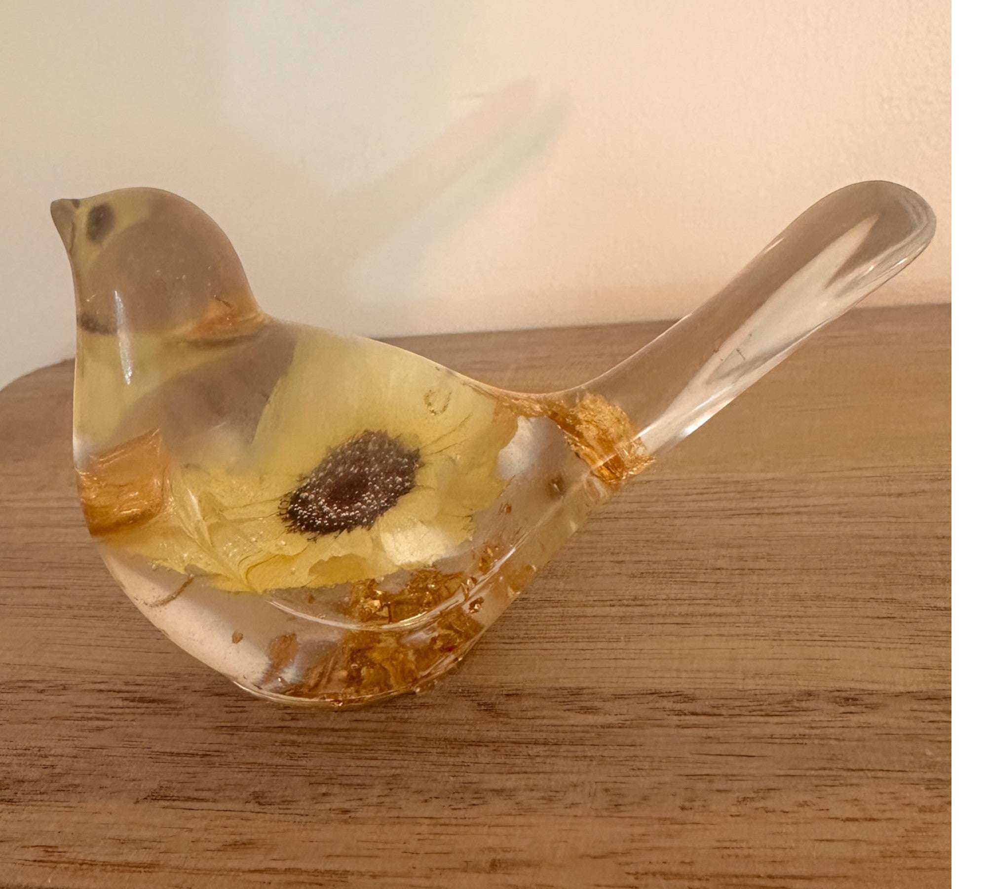 Sunflower Sunny Songbird - Handmade Pressed Flower Resin Bird Decor