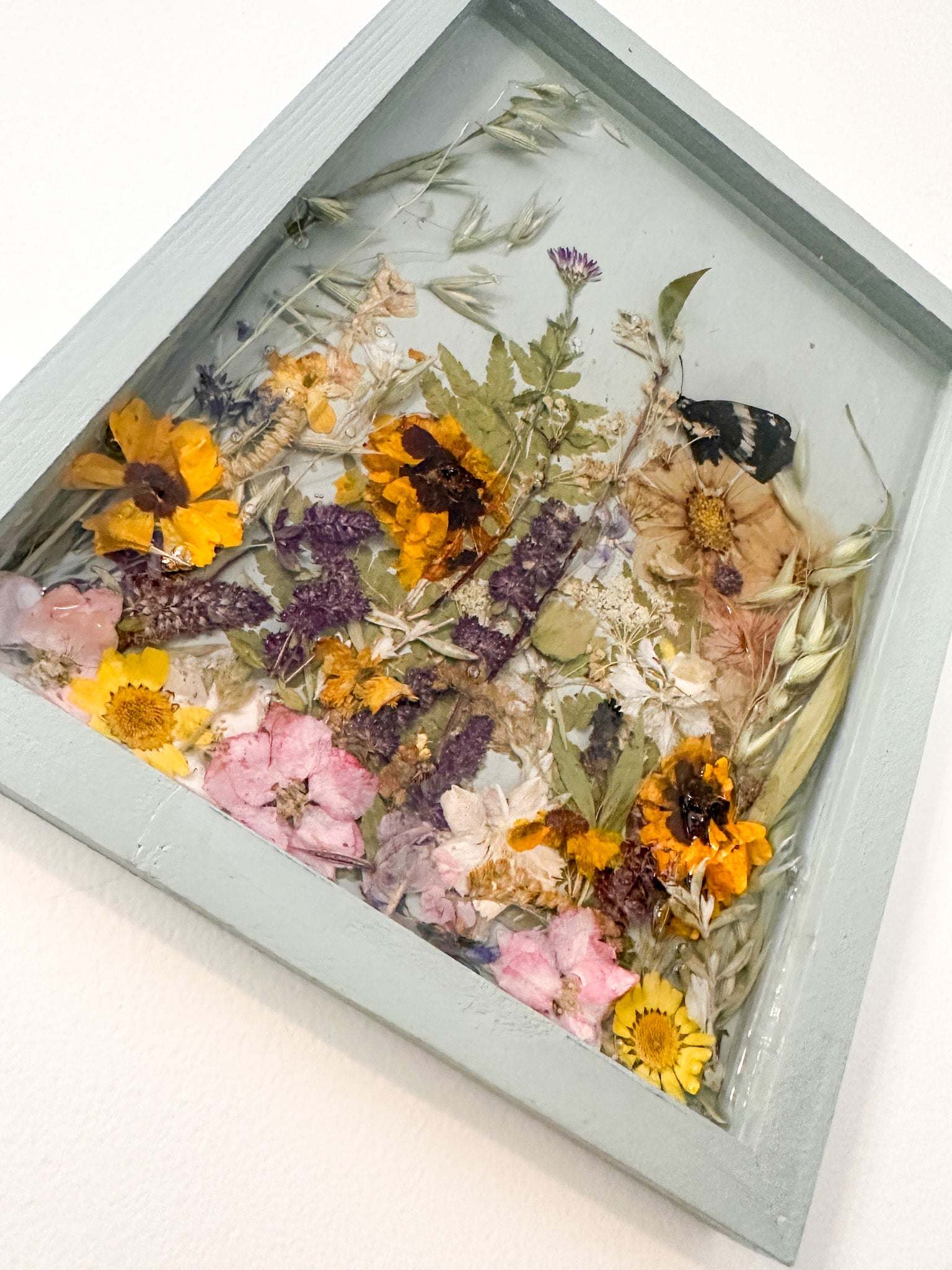 We use high-performance Nerpa resin, proudly made in Calgary, Alberta. This premium, UV-resistant material cures to a natural, high-gloss finish that mimics the look of solid glass. It ensures your botanicals remain vibrant and crystal clear without the need for artificial polishes.
