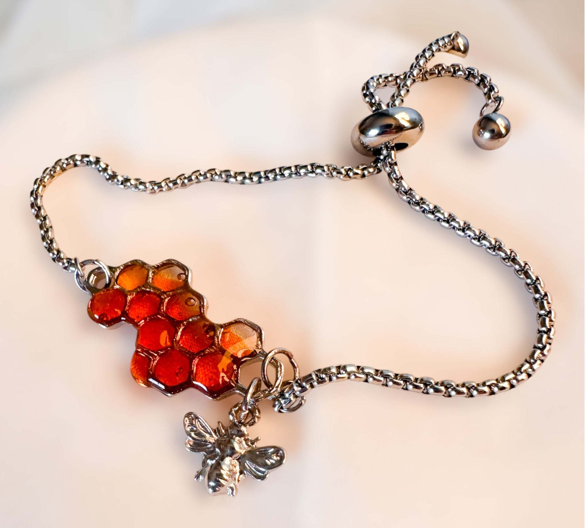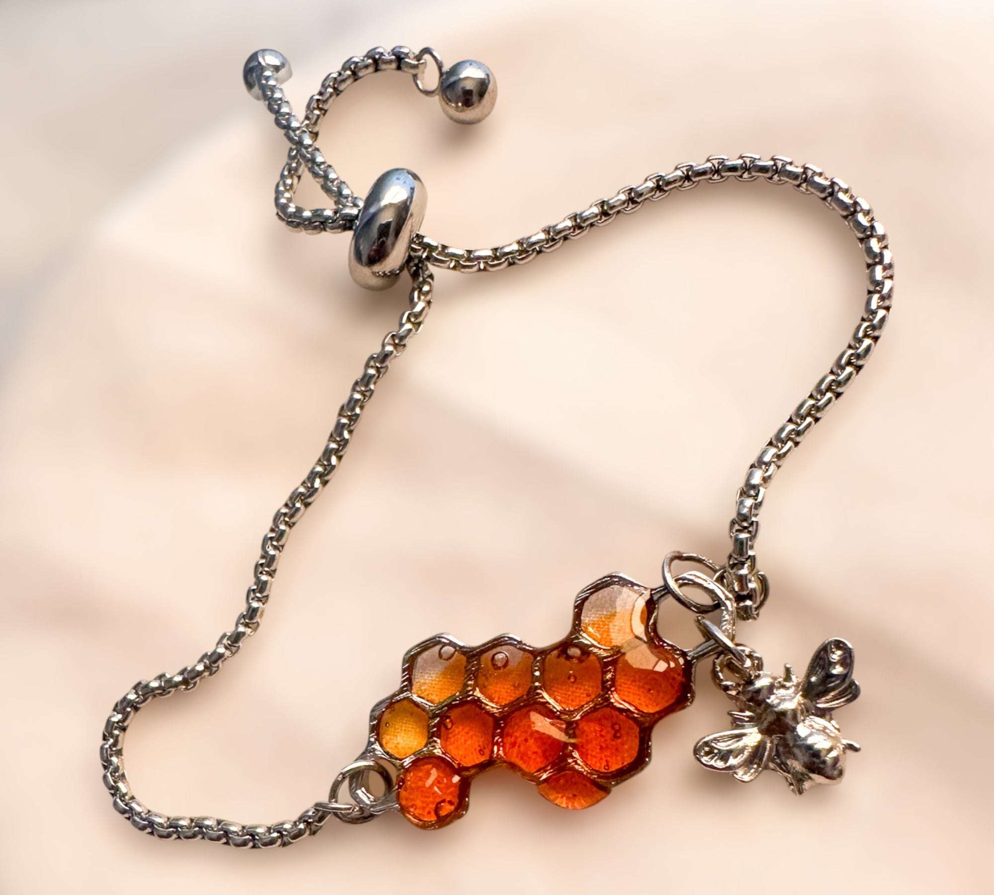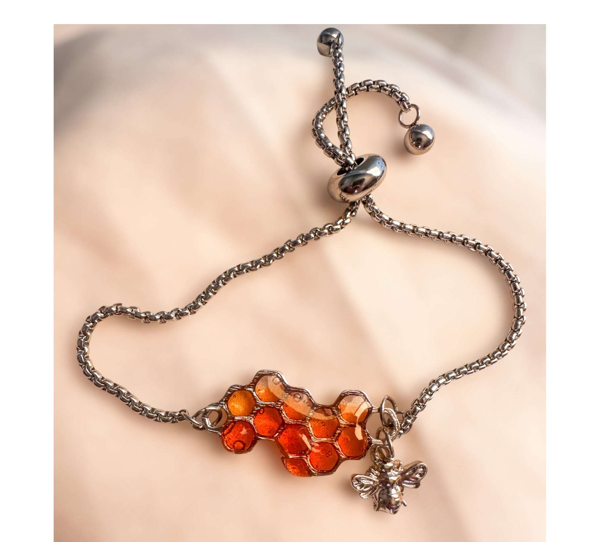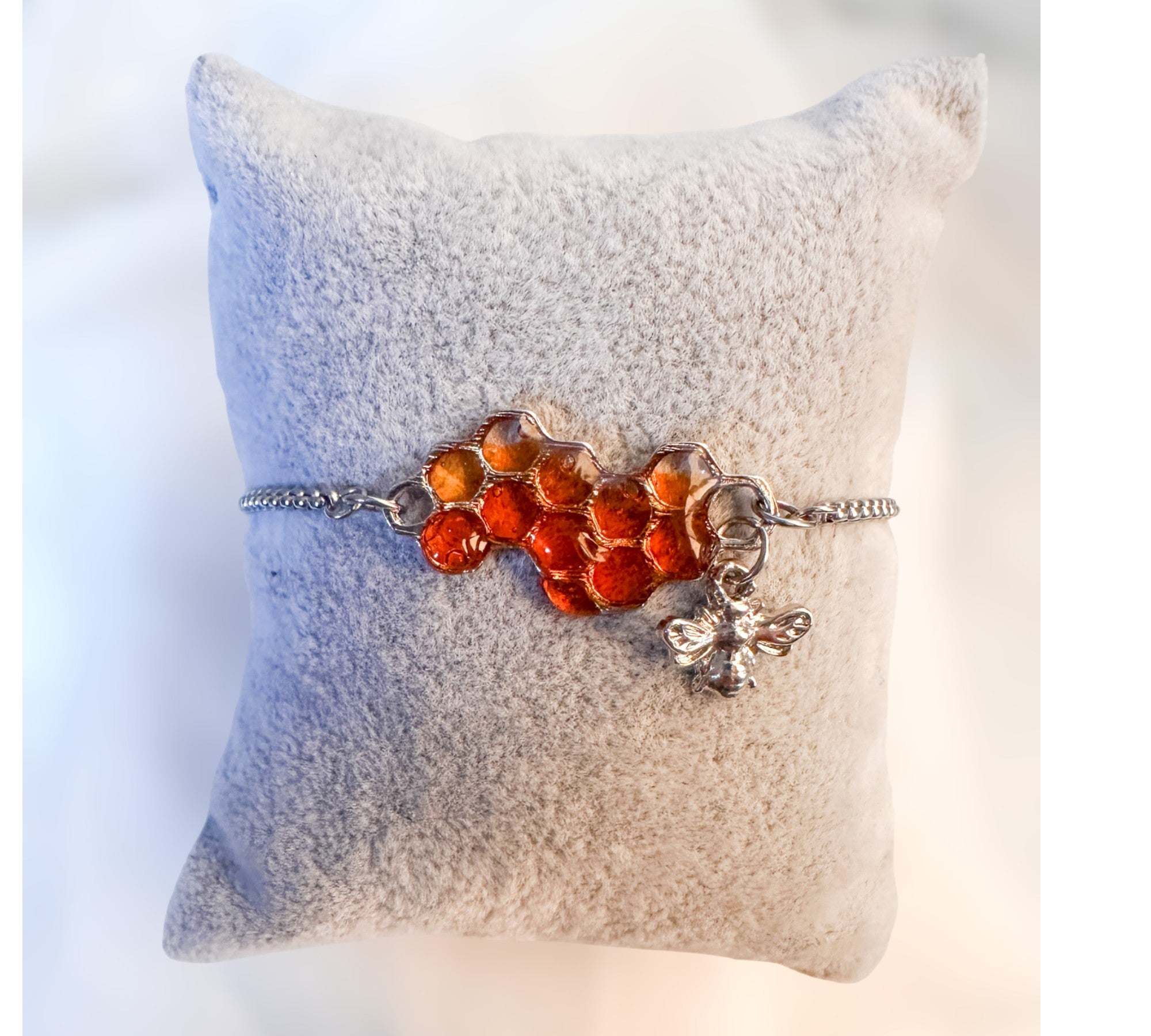 Dripping Honey Bee Bracelet - Handmade Silver Honeycomb & Bee Charm
