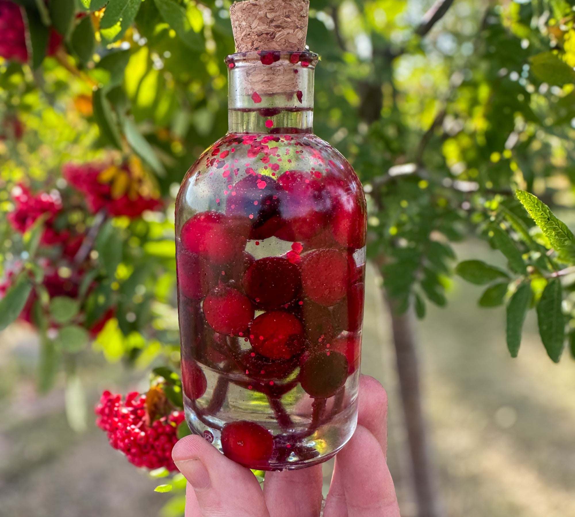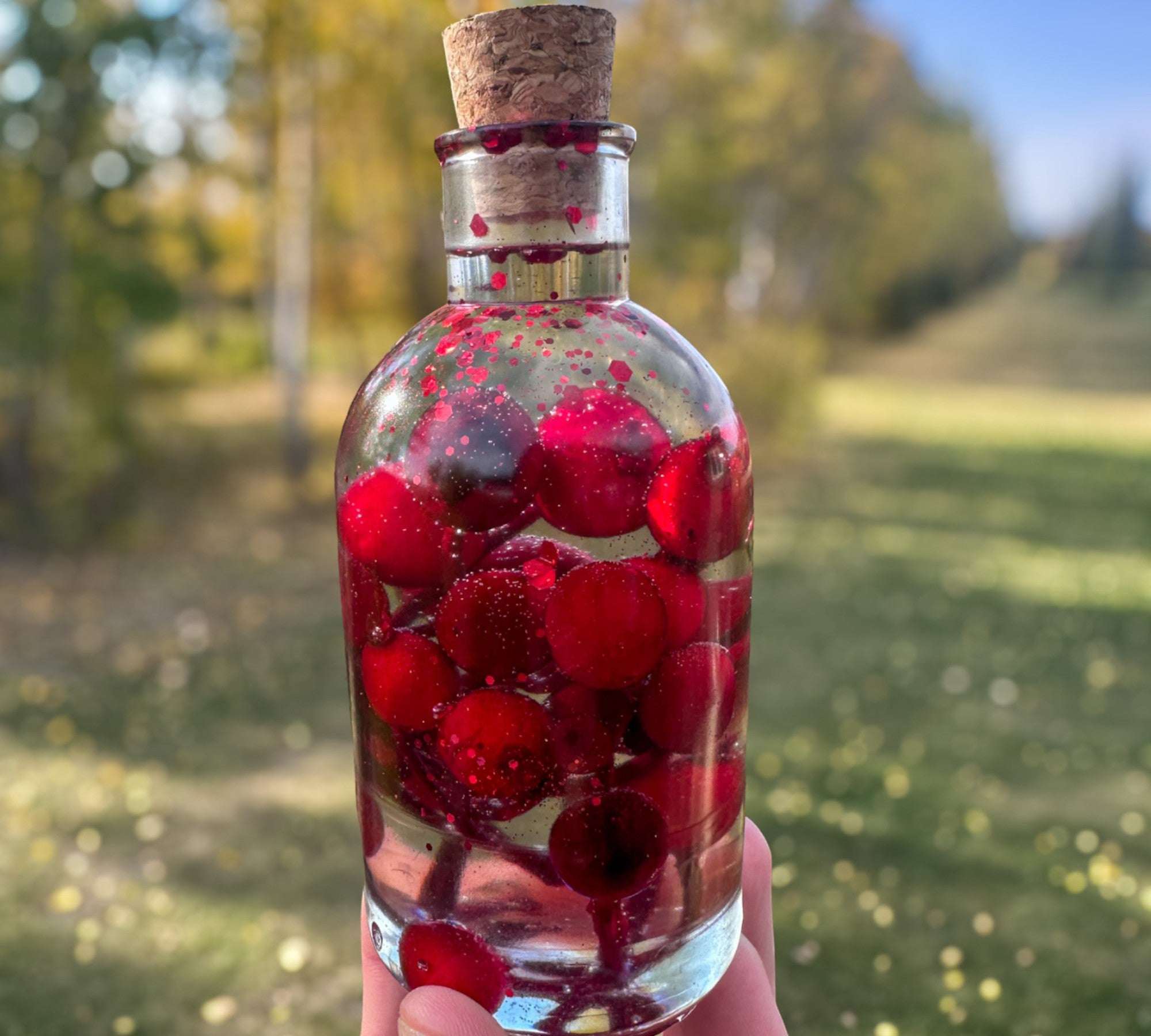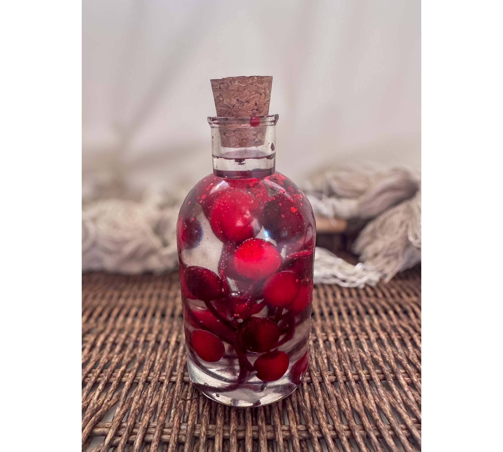 Berry Magic in a Bottle -Sparkling Red Berry Handmade Decor with Light