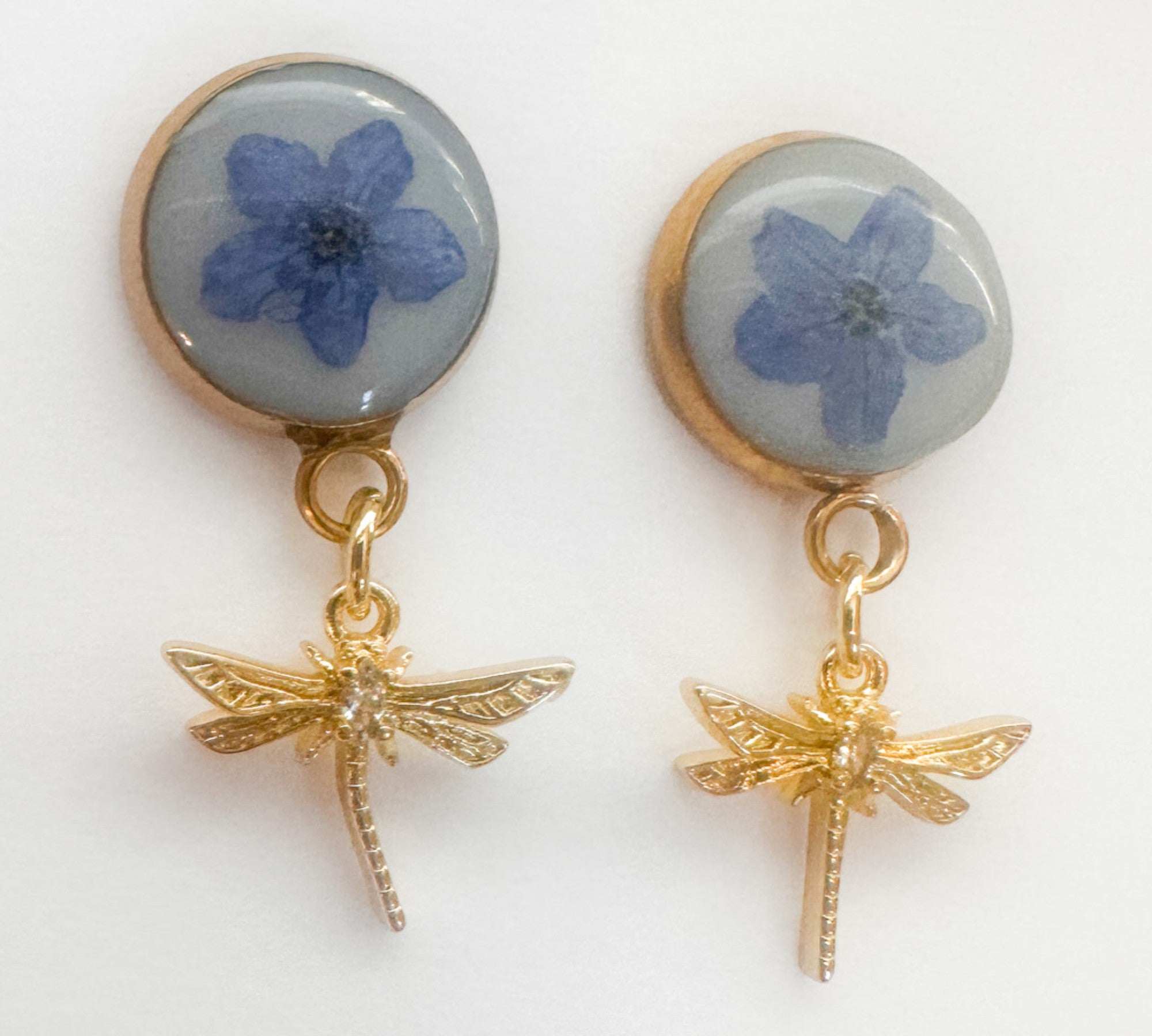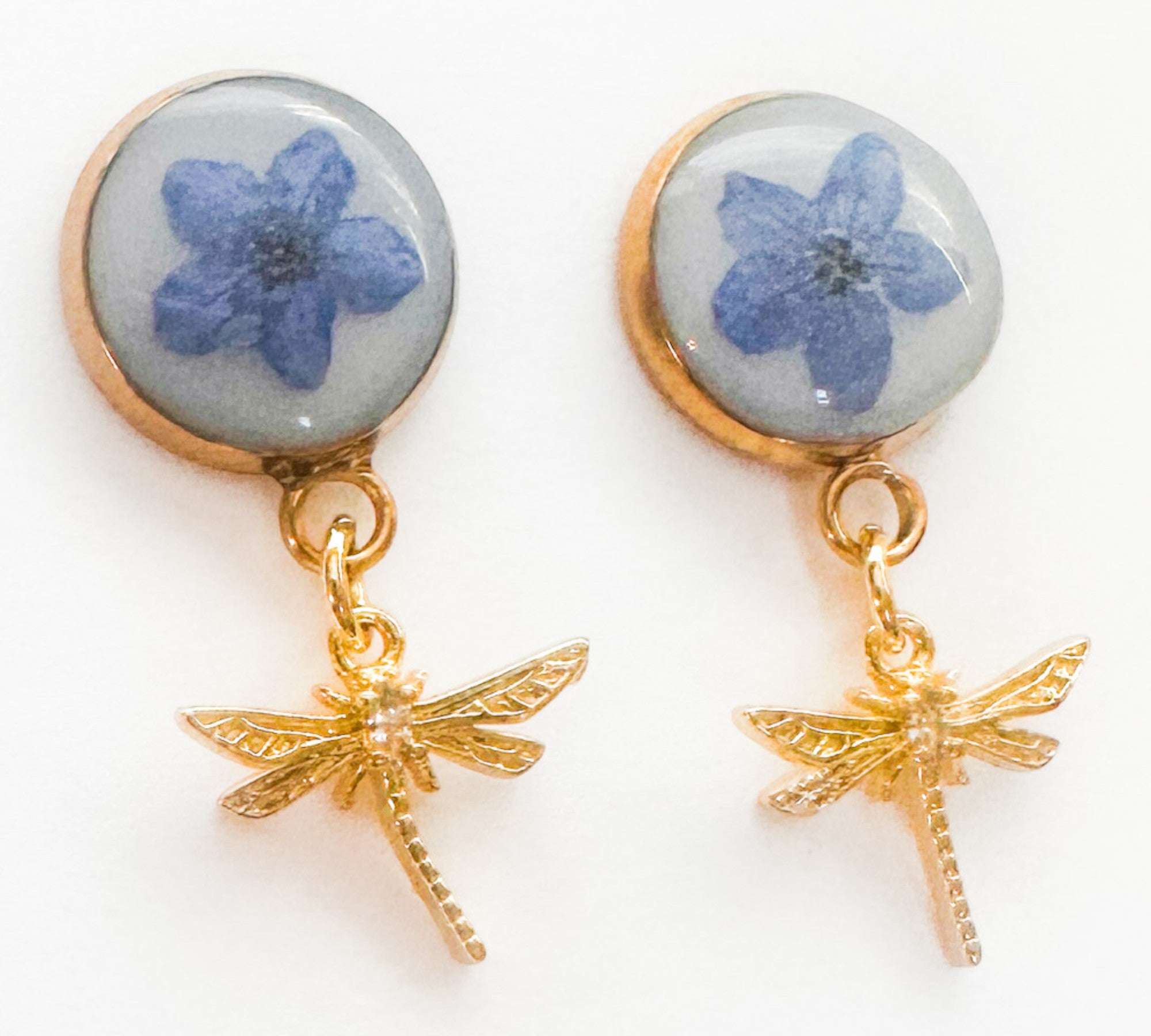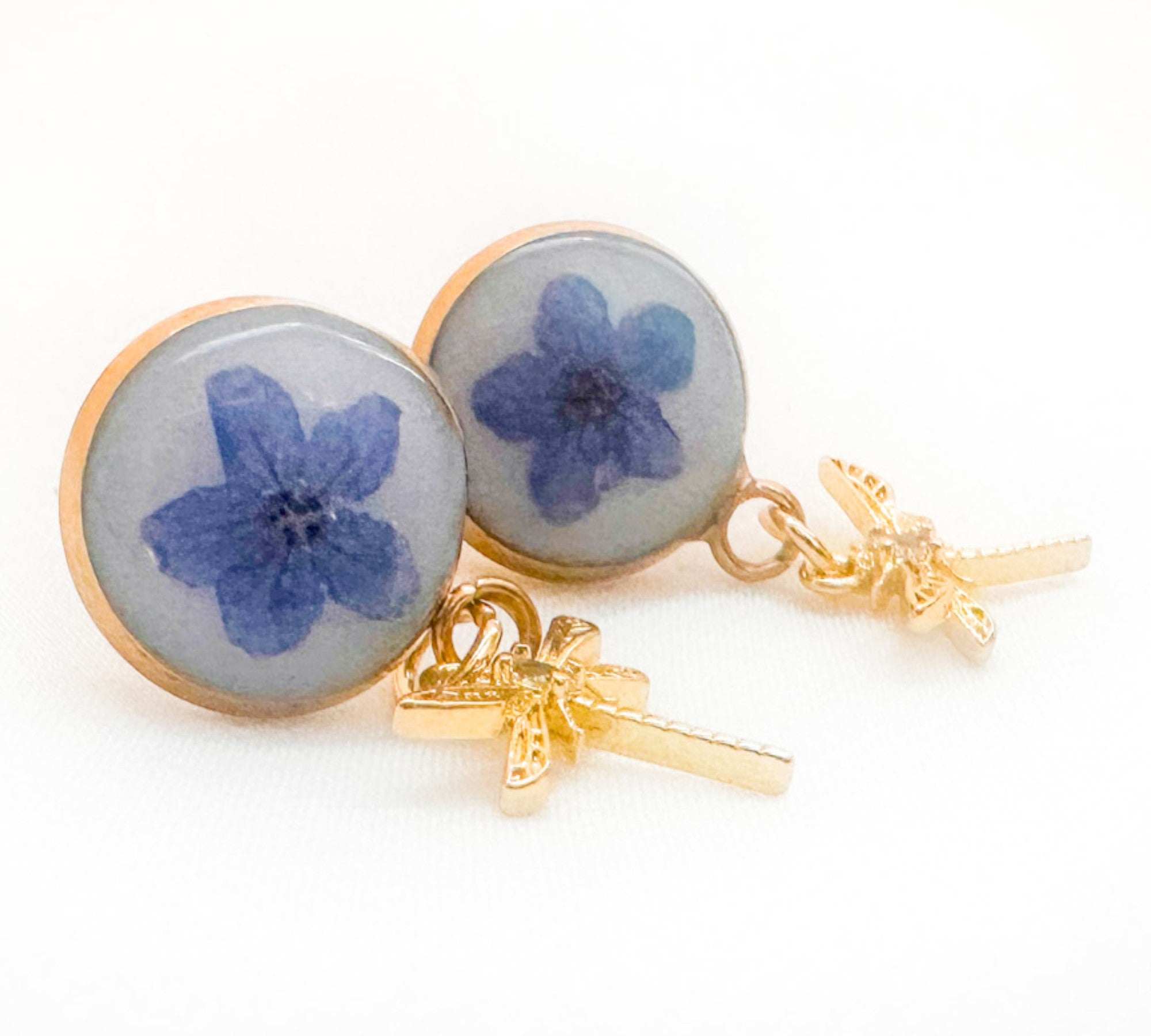 Forget-Me-Not Boreal Blue Handmade Dragonfly Gold Stud Earrings