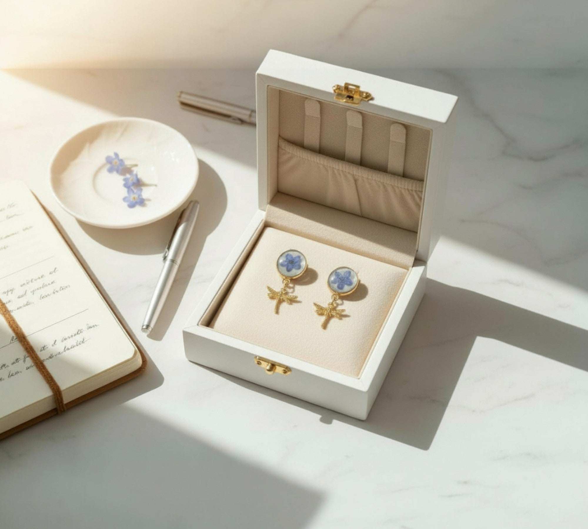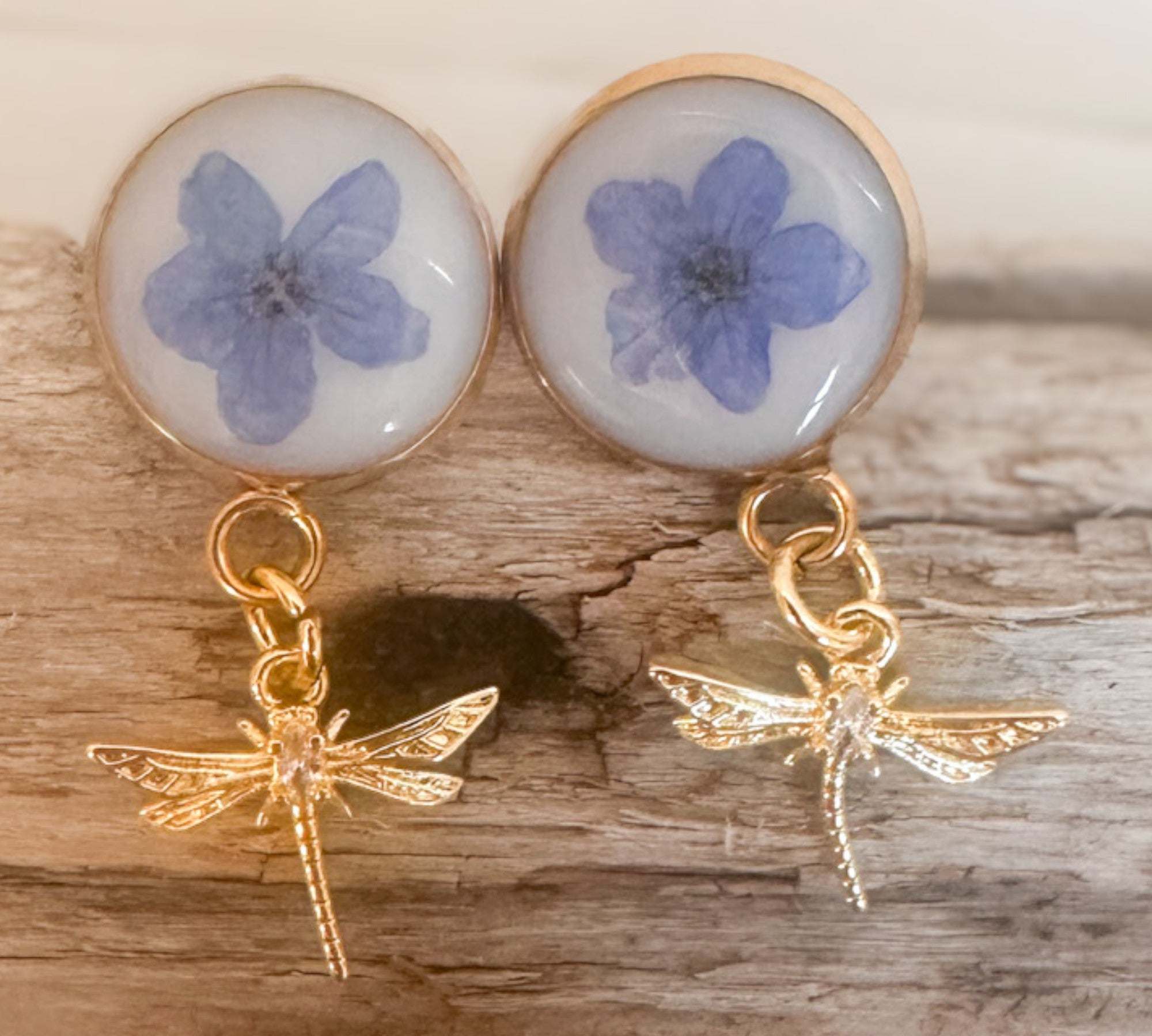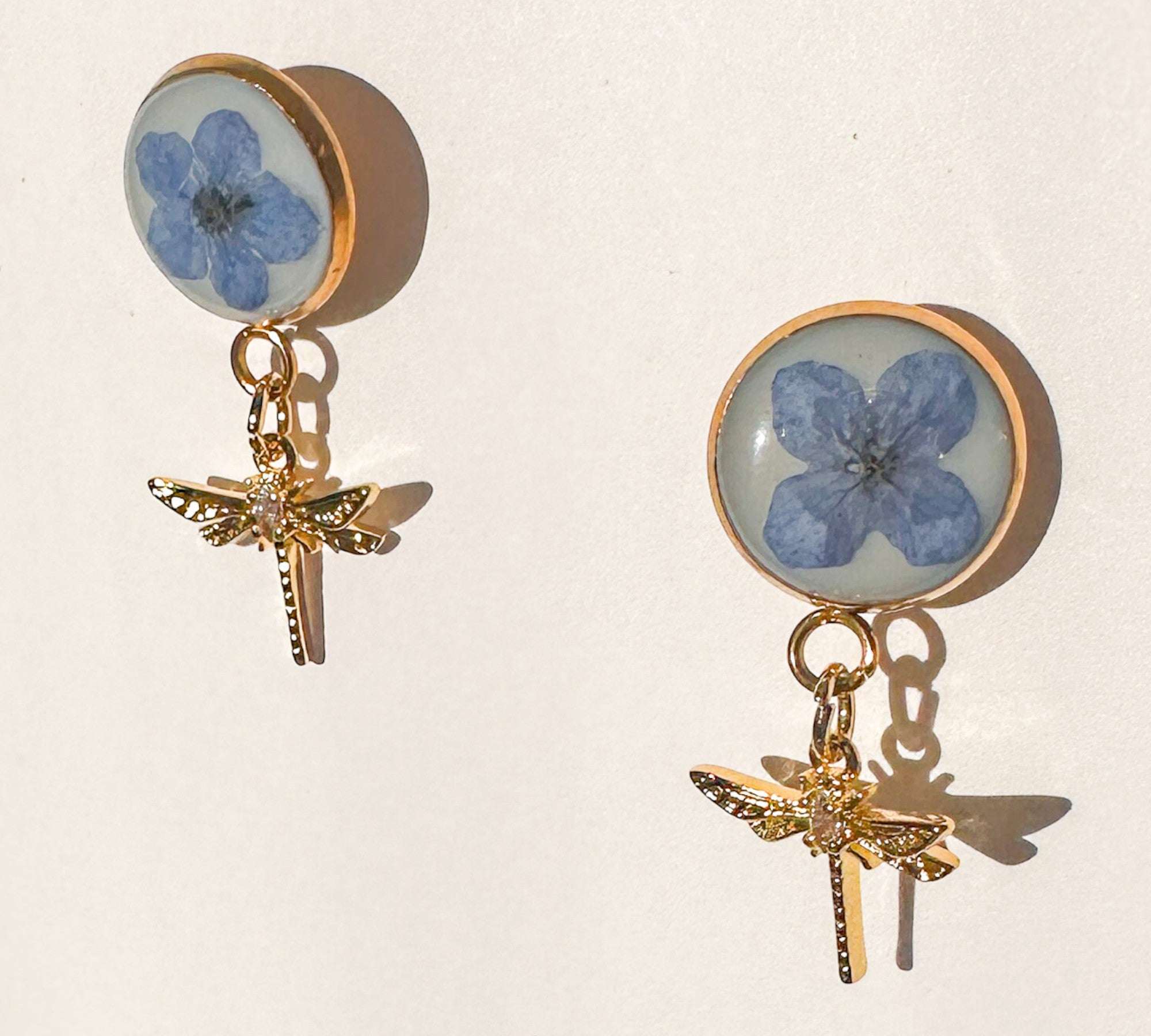 Forget-Me-Not Boreal Blue Handmade Dragonfly Gold Stud Earrings