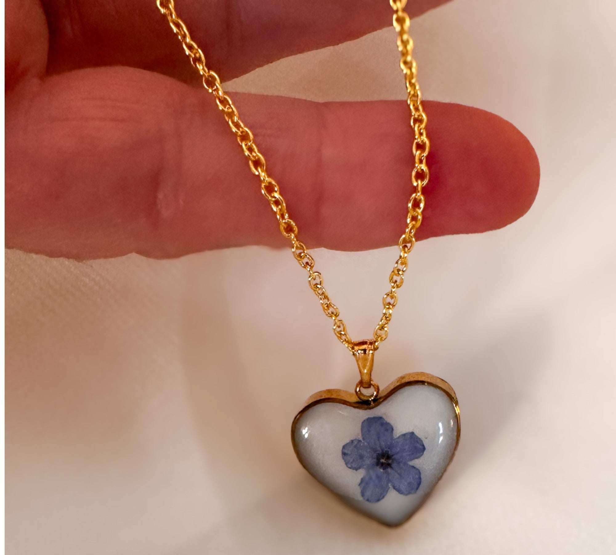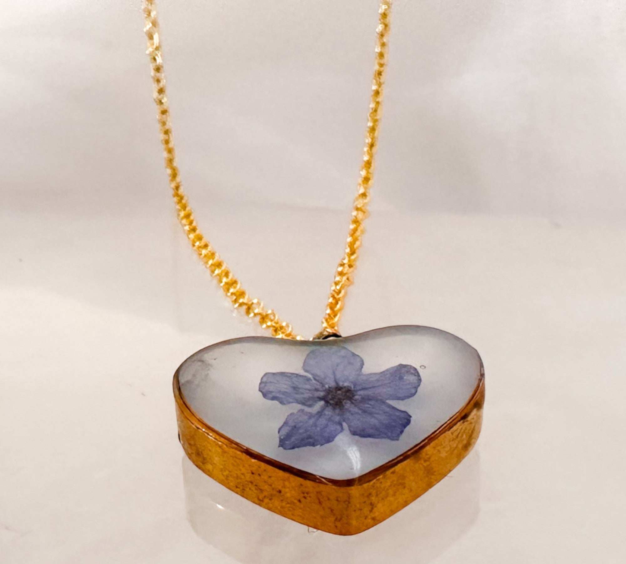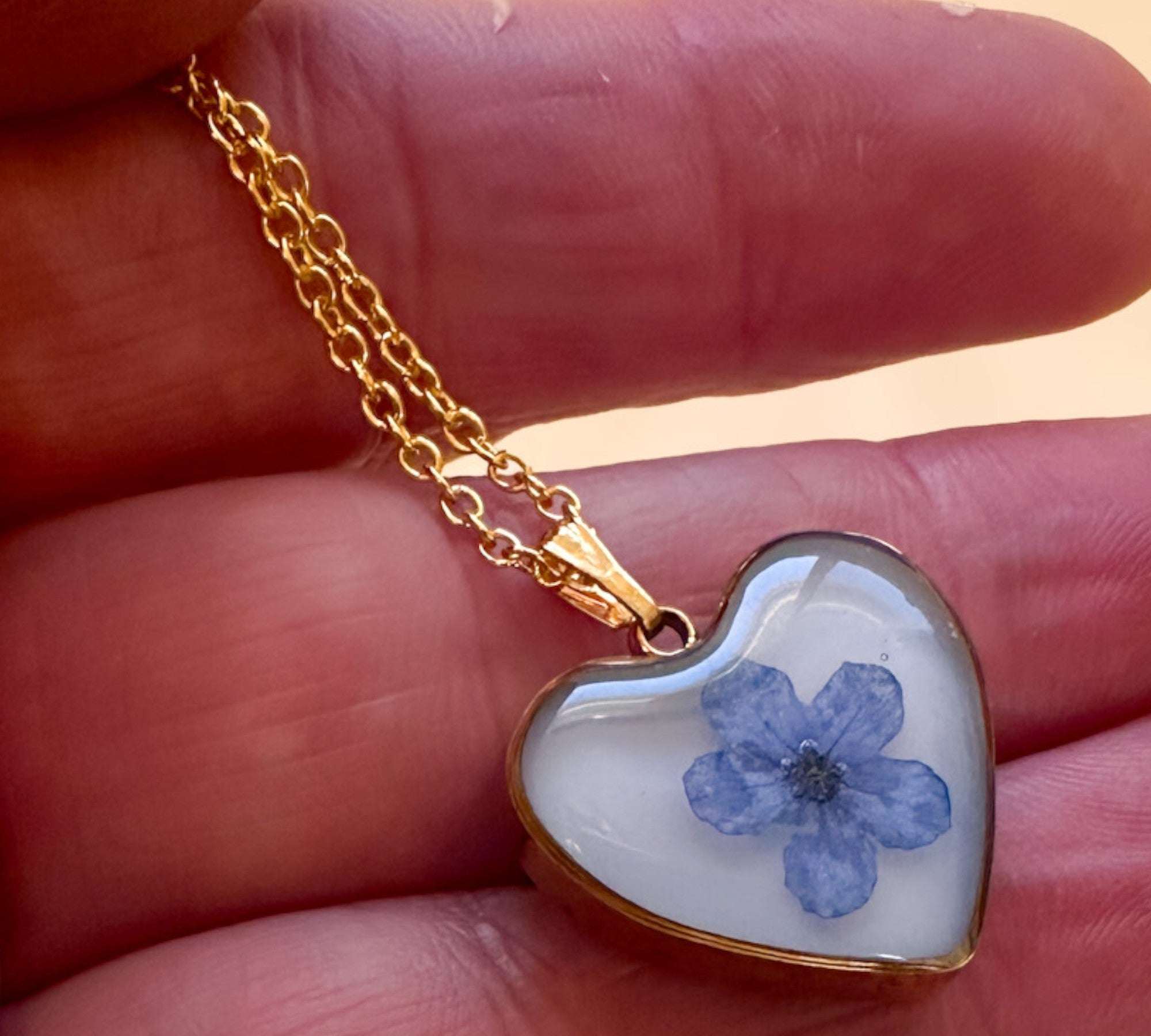 Forget-Me-Not Heart Pendant | Handmade Pendant with Real Flowers
