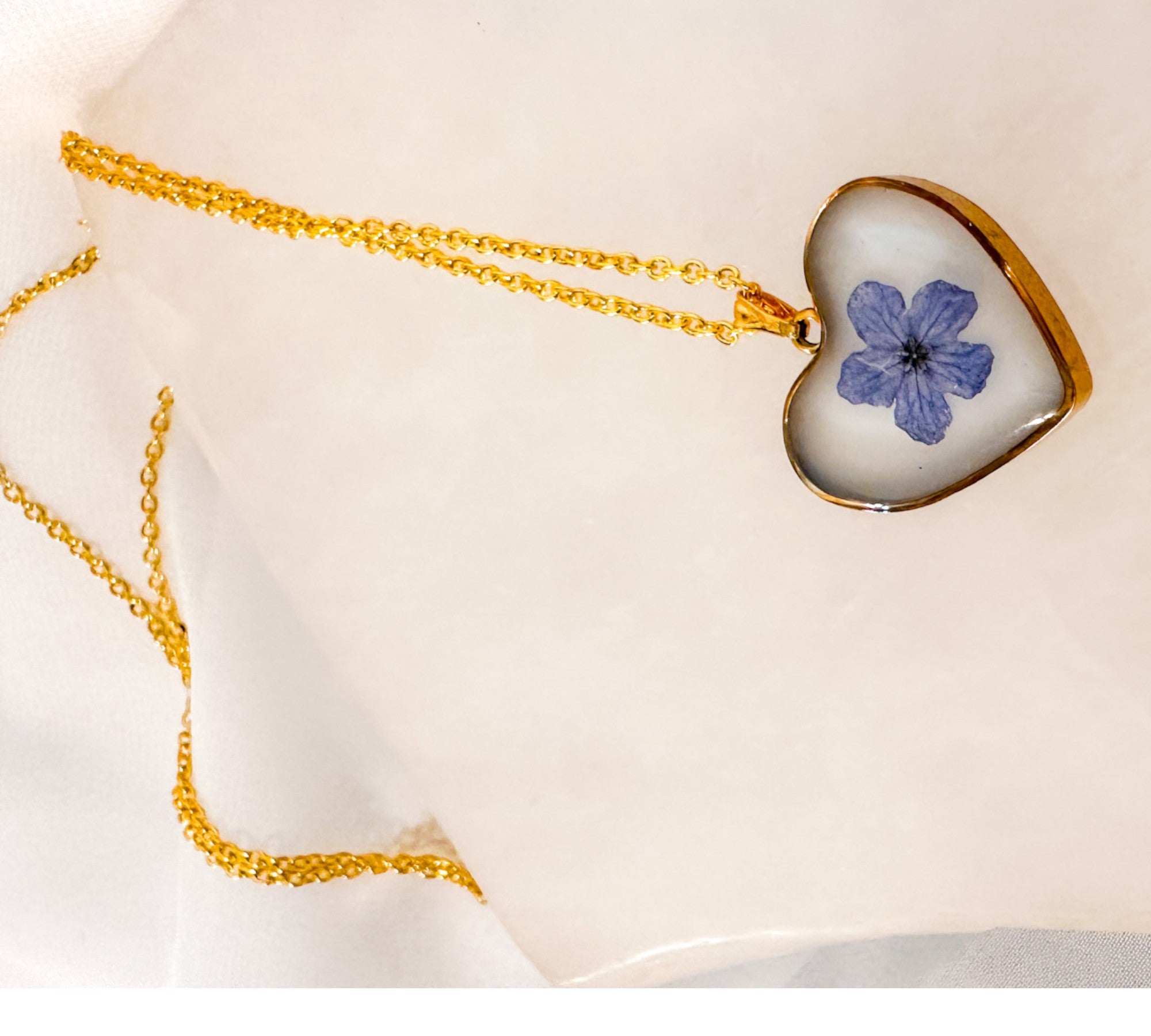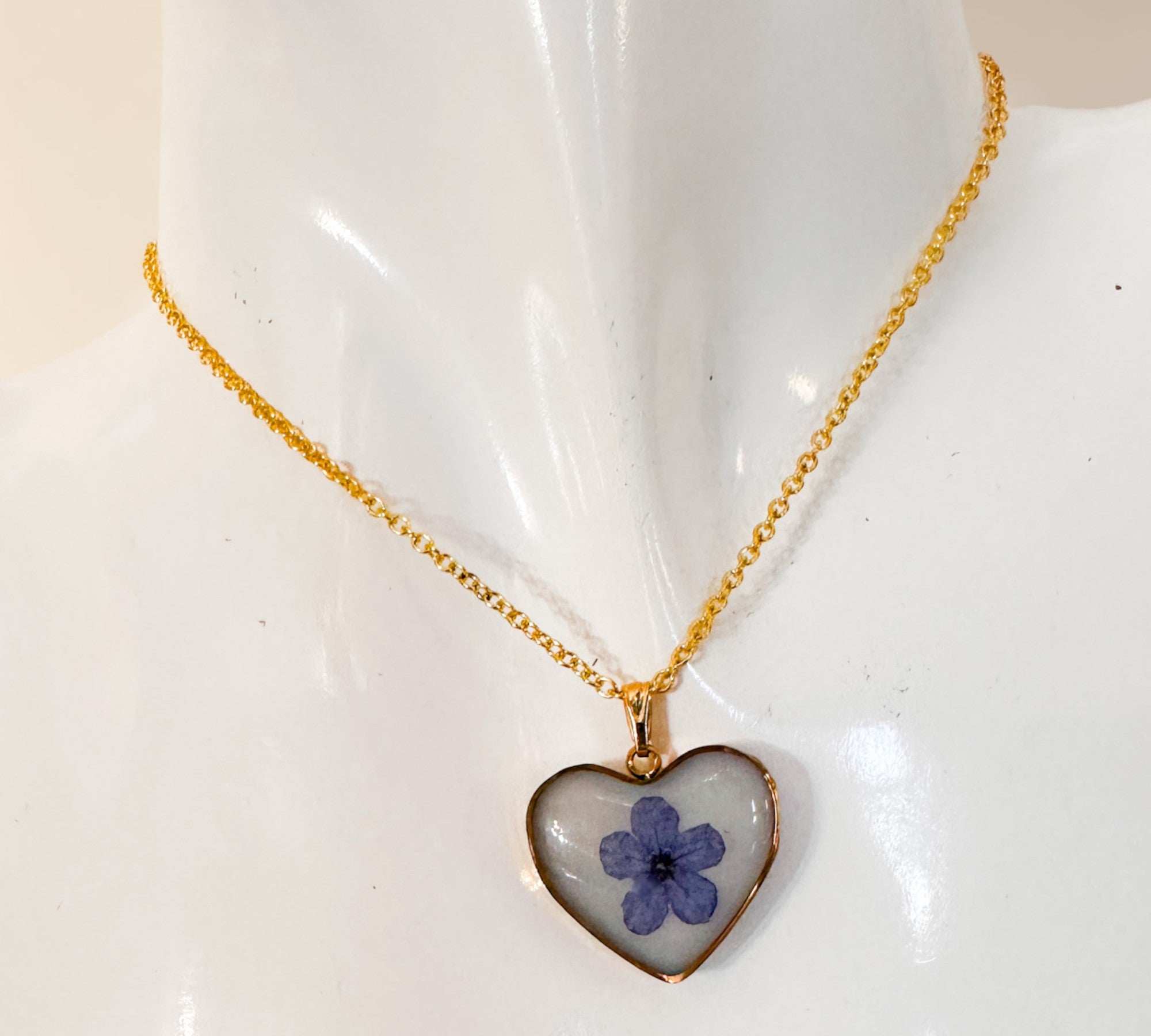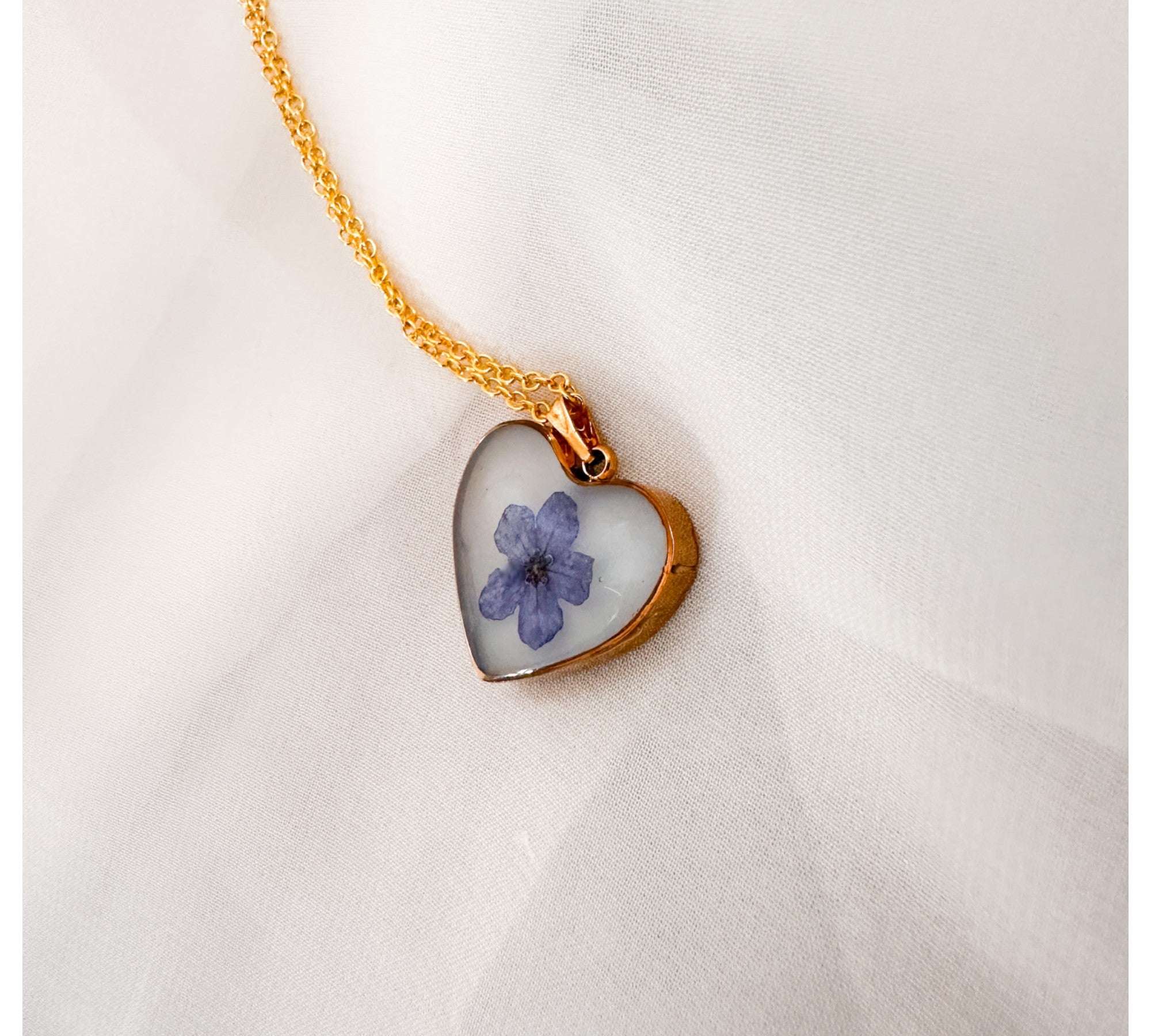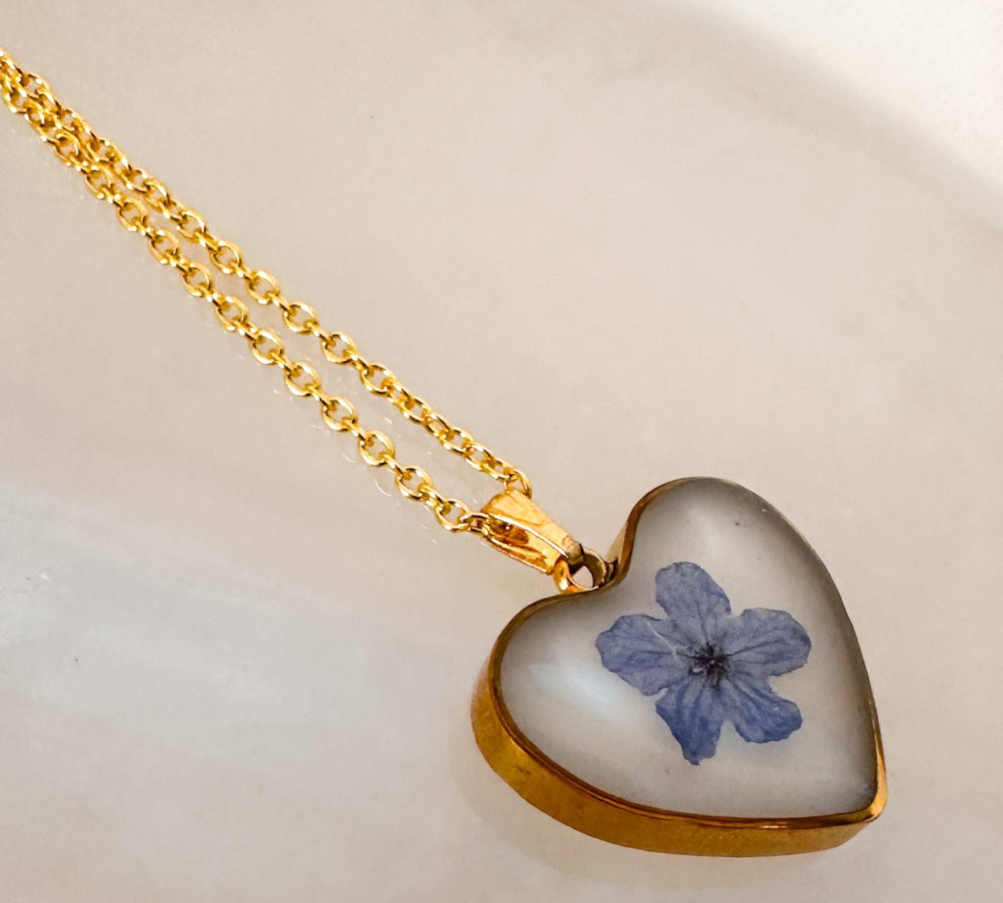 Forget-Me-Not Heart Pendant | Handmade Pendant with Real Flowers