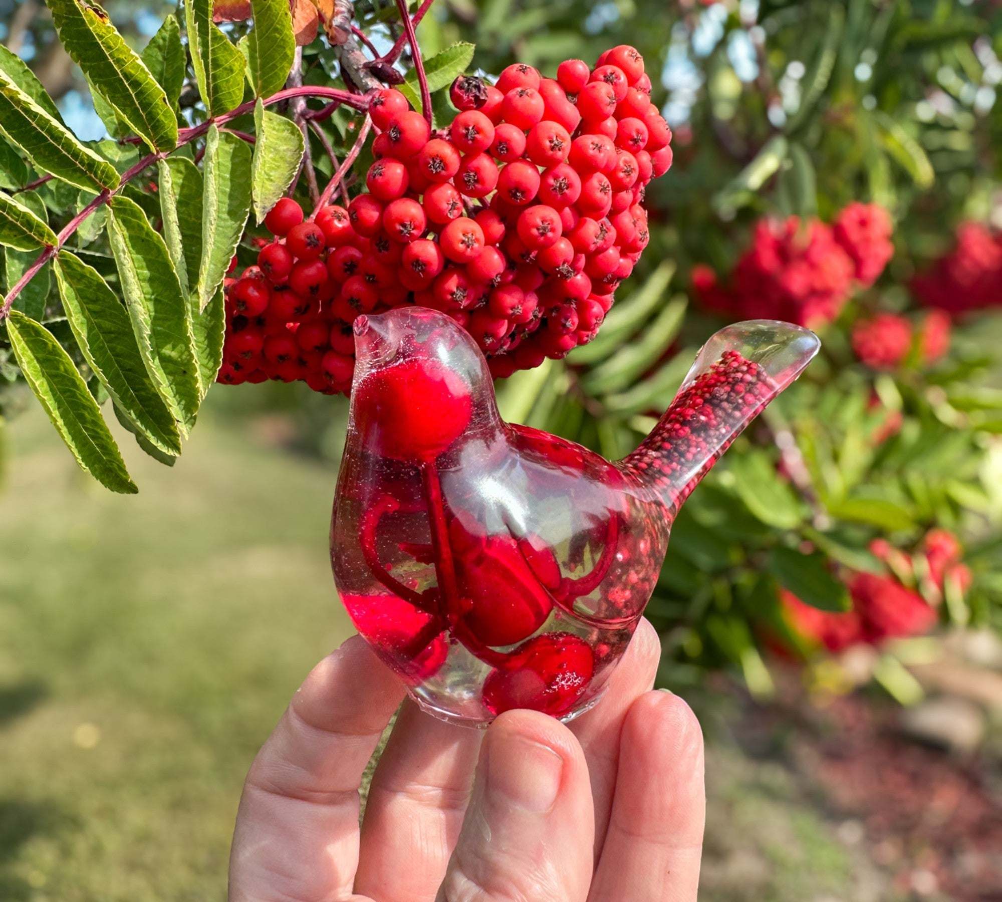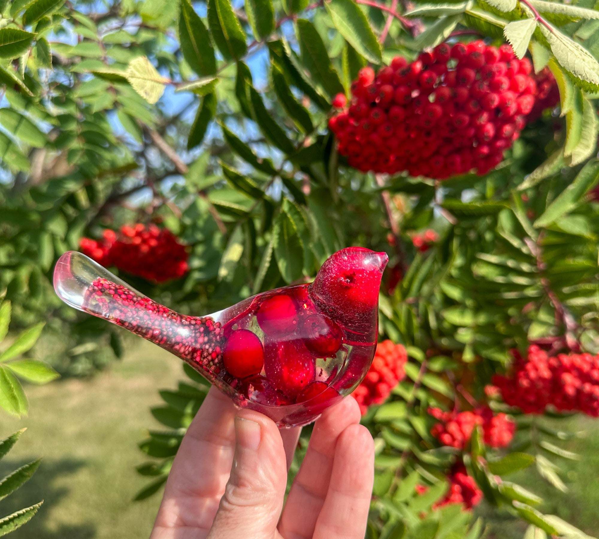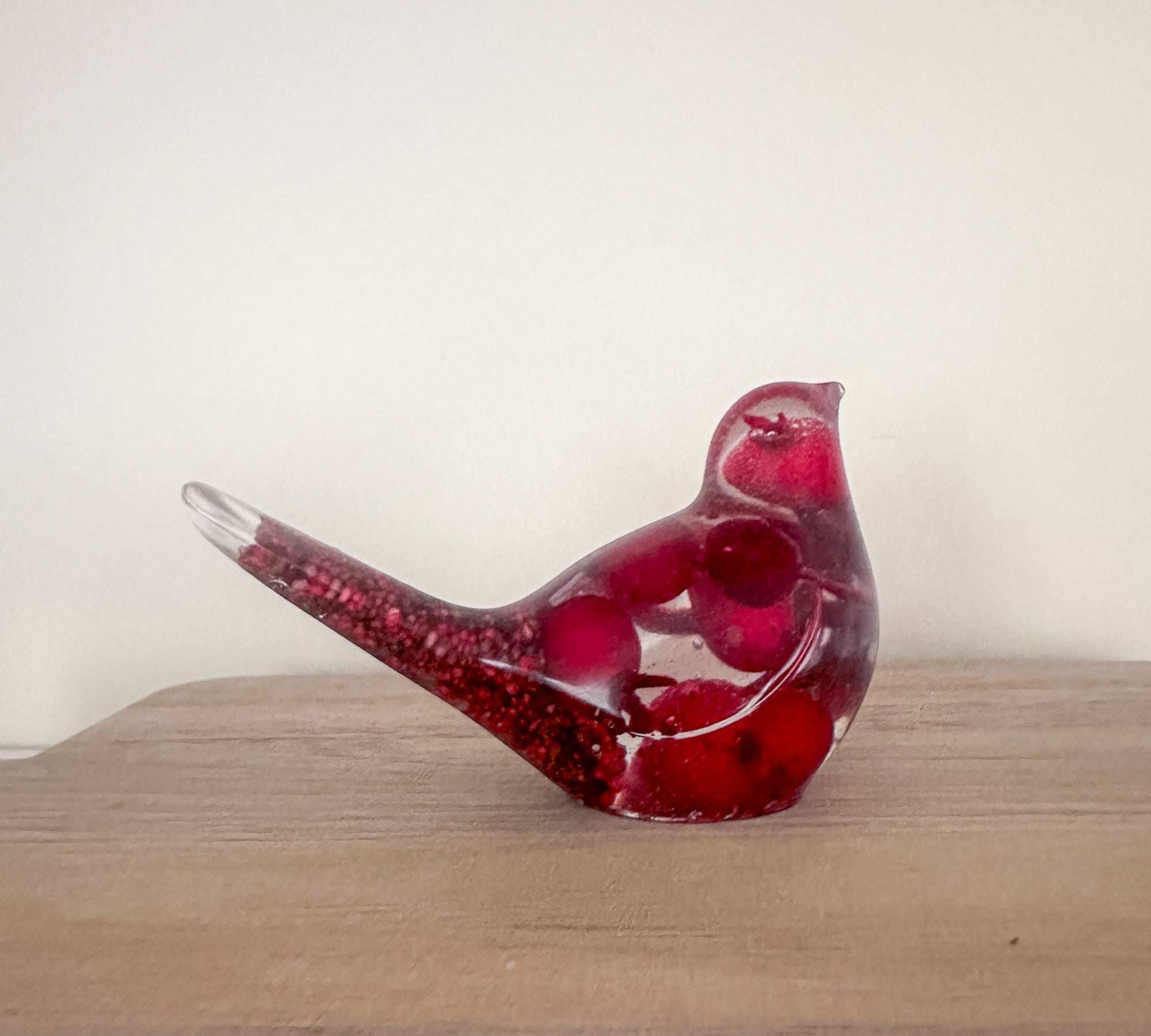 Berry Songbird - Handmade Unique Red Berry Resin Bird Decor