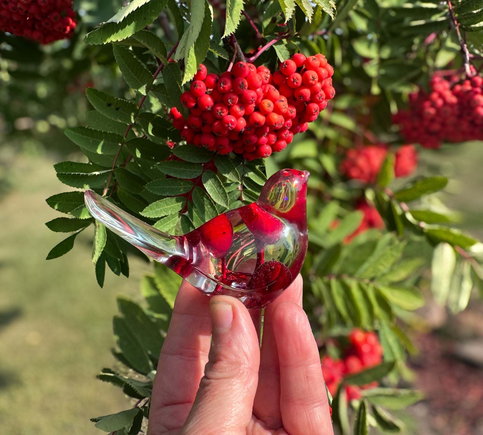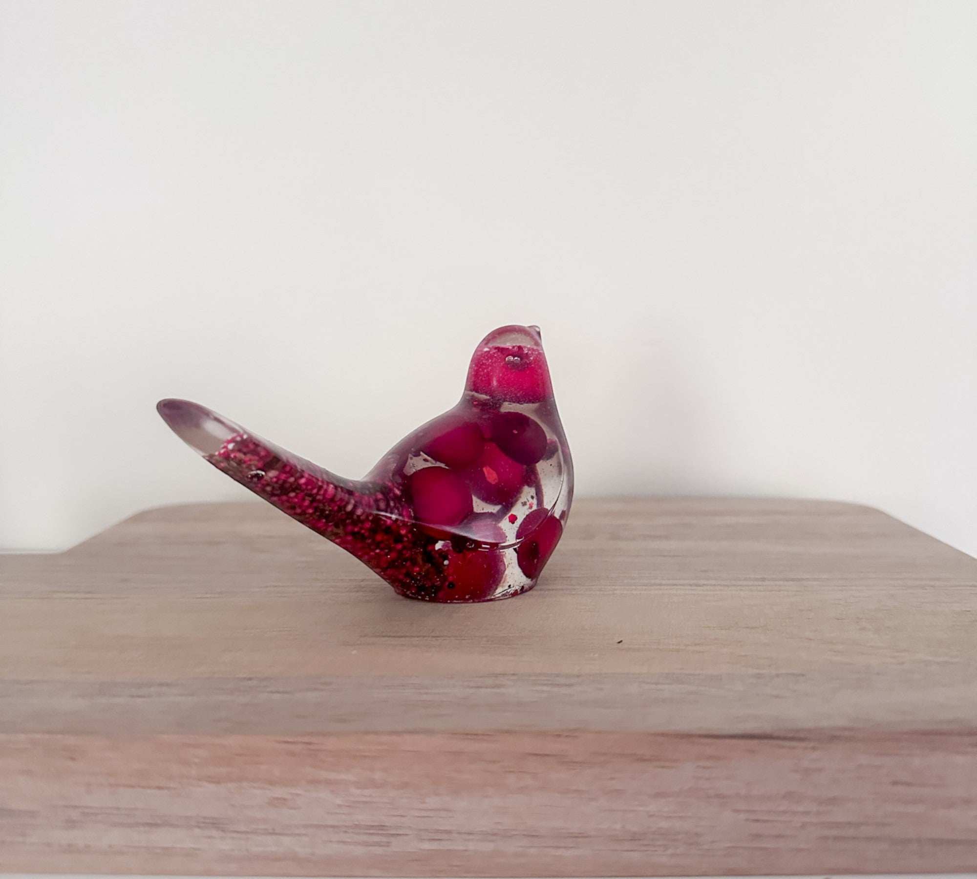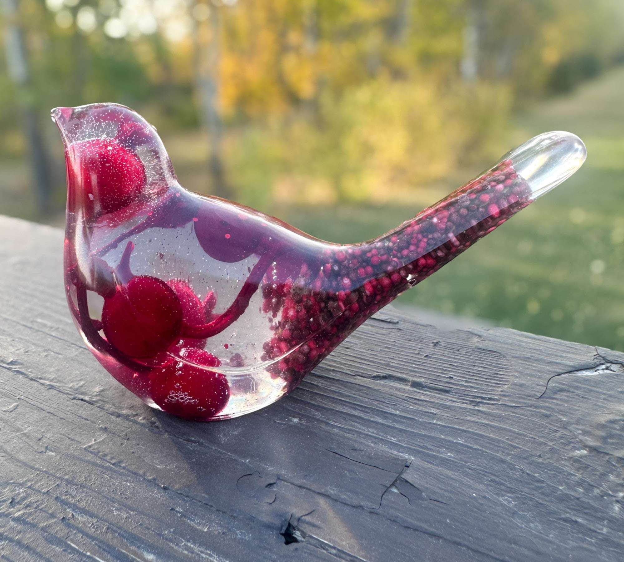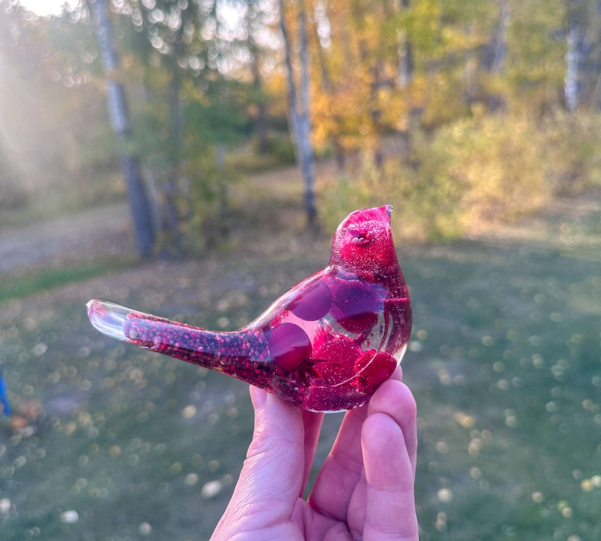 Berry Songbird - Handmade Unique Red Berry Resin Bird Decor