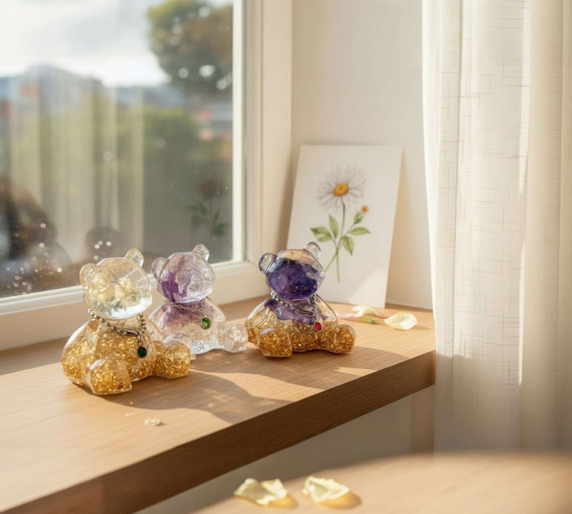 These pieces look most magical when they catch the light! A windowsill, mantel, or bookshelf is perfect. While our resin is high-quality and UV-resistant, we recommend avoiding 24/7 direct, intense sunlight to keep the natural botanical colors vibrant for as long as possible.