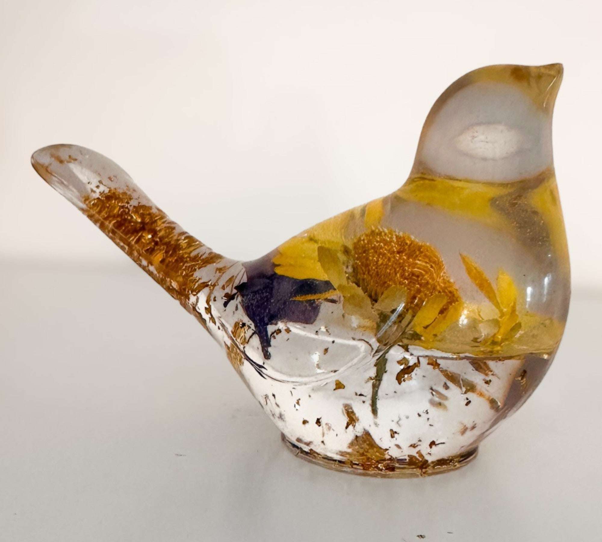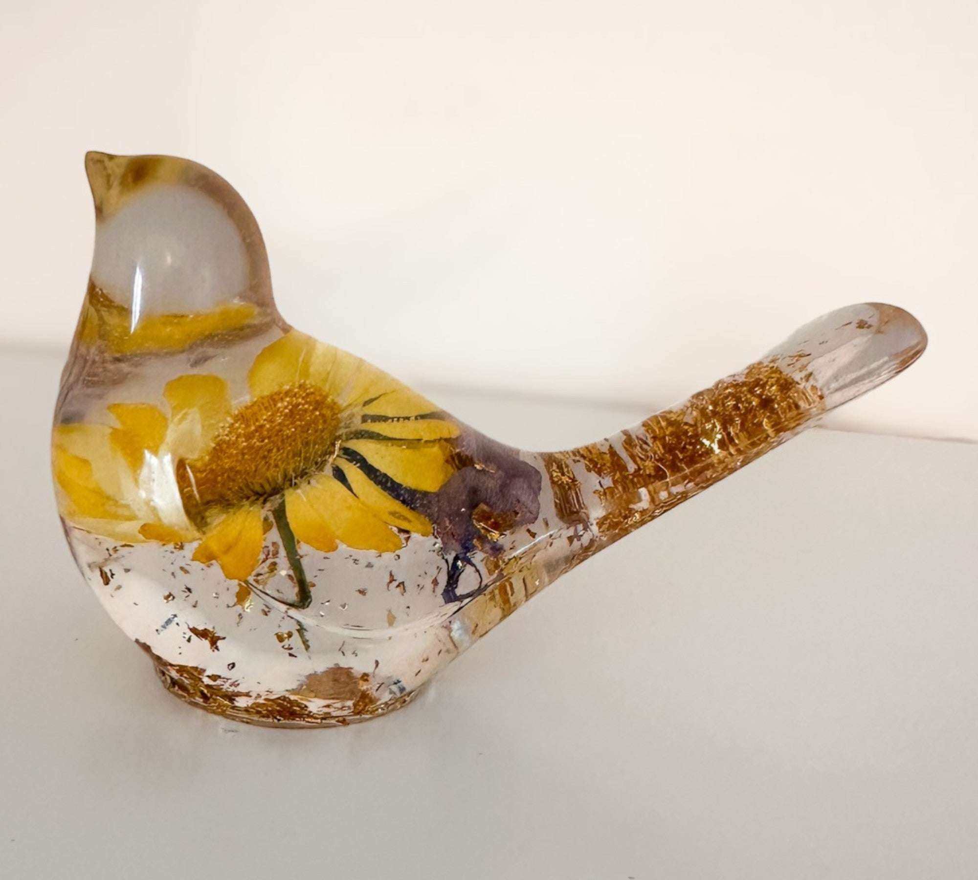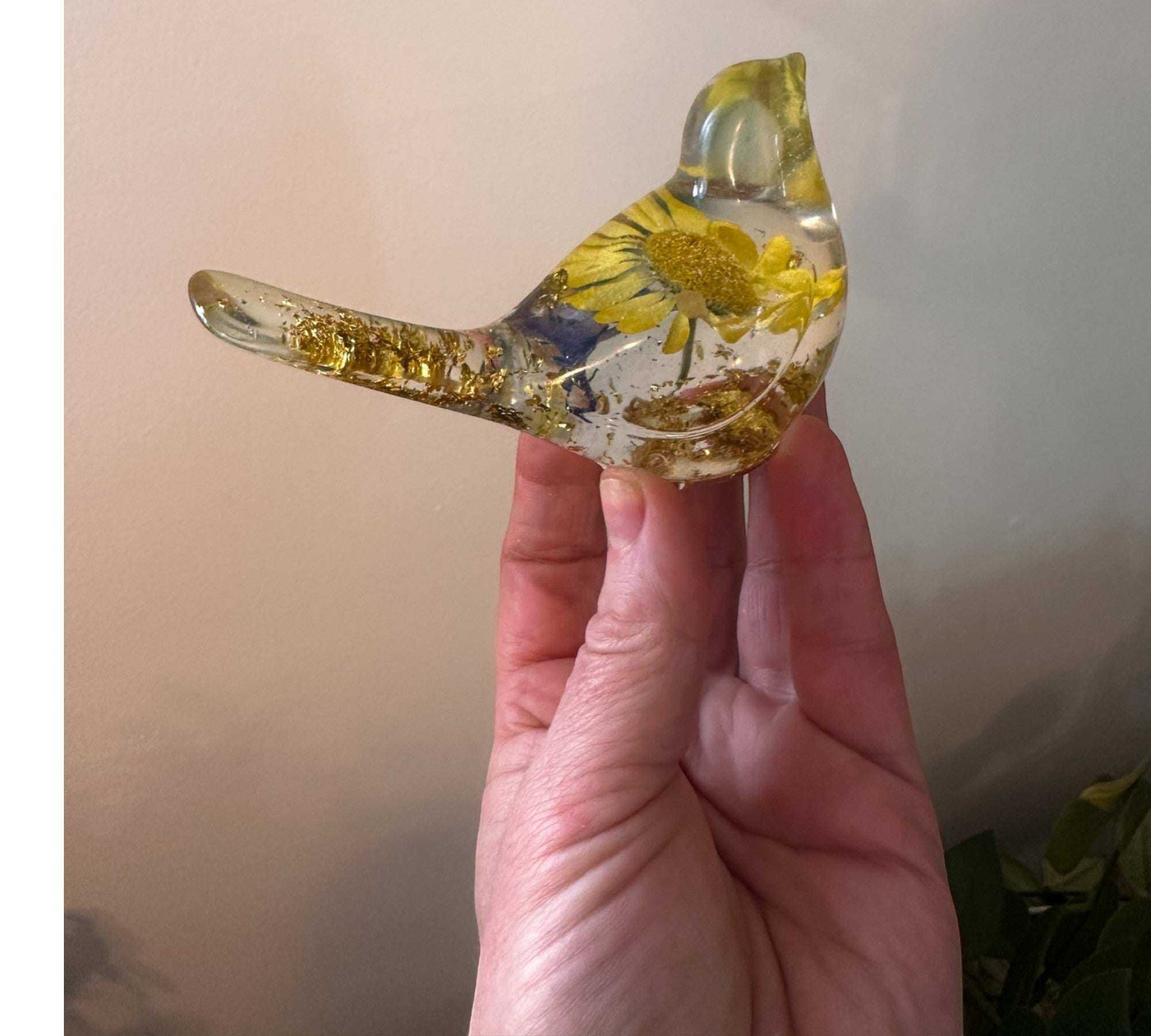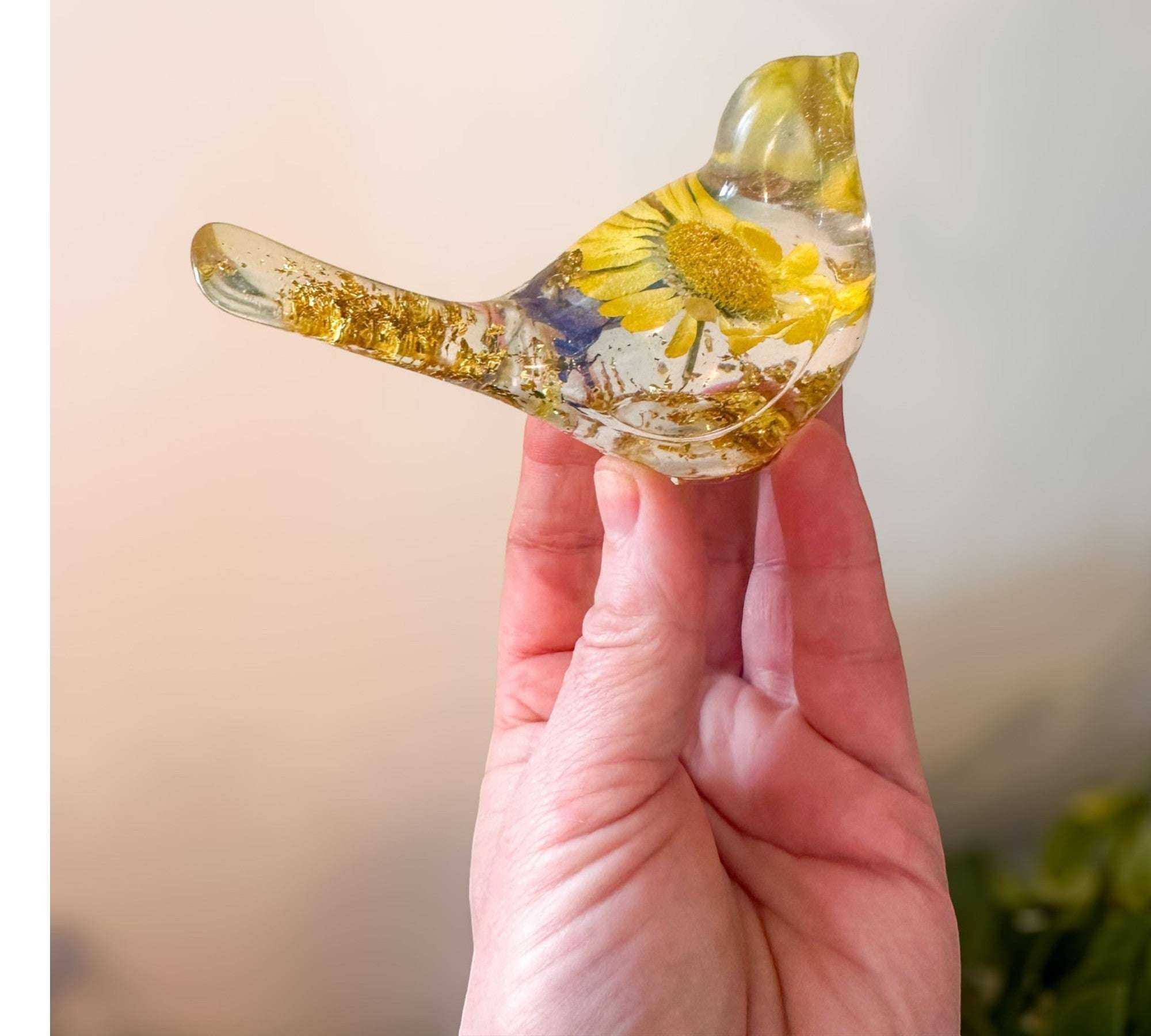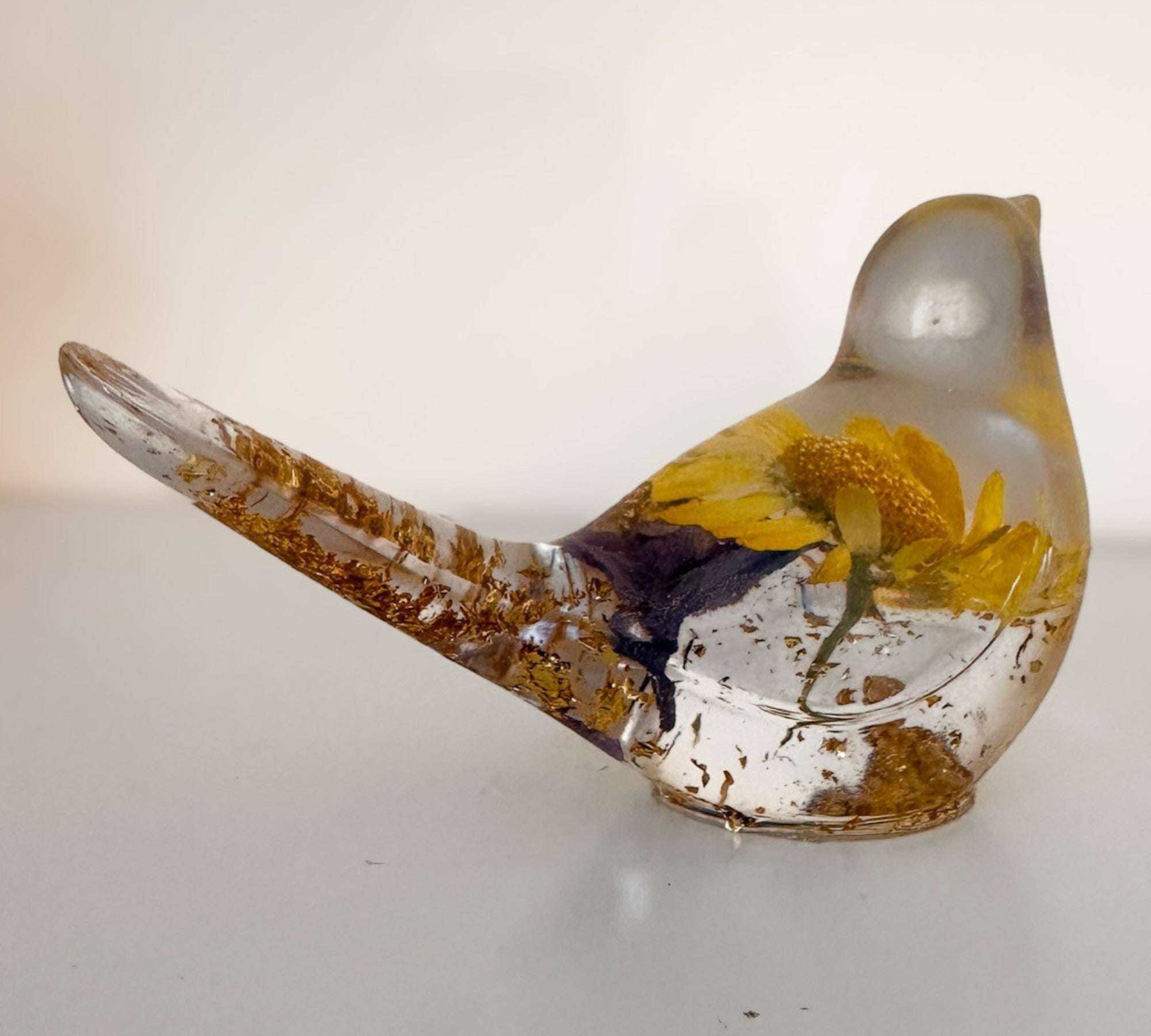 Golden Meadow - Yellow Floral Daisy Resin Bird