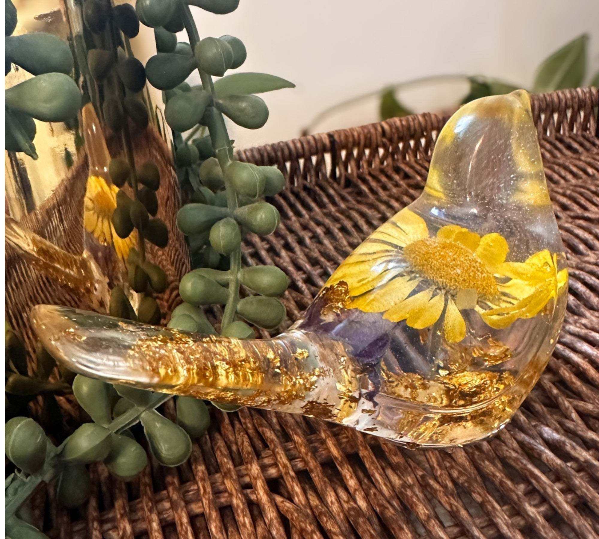 We use high-performance Nerpa resin, proudly made in Calgary, Alberta. This premium, UV-resistant material cures to a natural, high-gloss finish that mimics the look of solid glass. It ensures your botanicals remain vibrant and crystal clear without the need for artificial polishes.