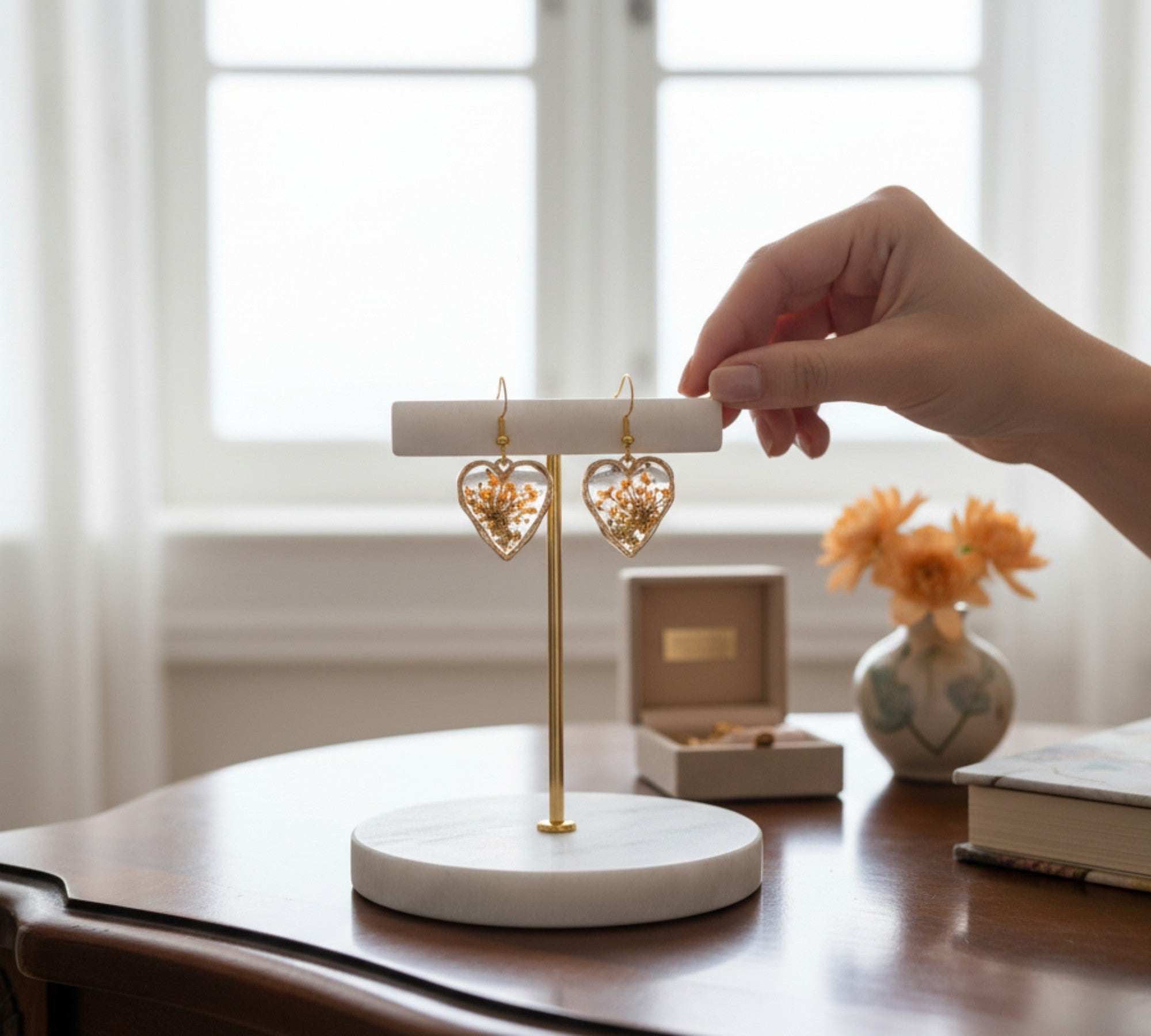 Nature never repeats its patterns, and neither do we. While each earring set is designed for perfect harmony, the organic variation of our hand-picked botanicals ensures your pair is truly unrepeatable—a personal statement of elegance and a living connection to the wild.