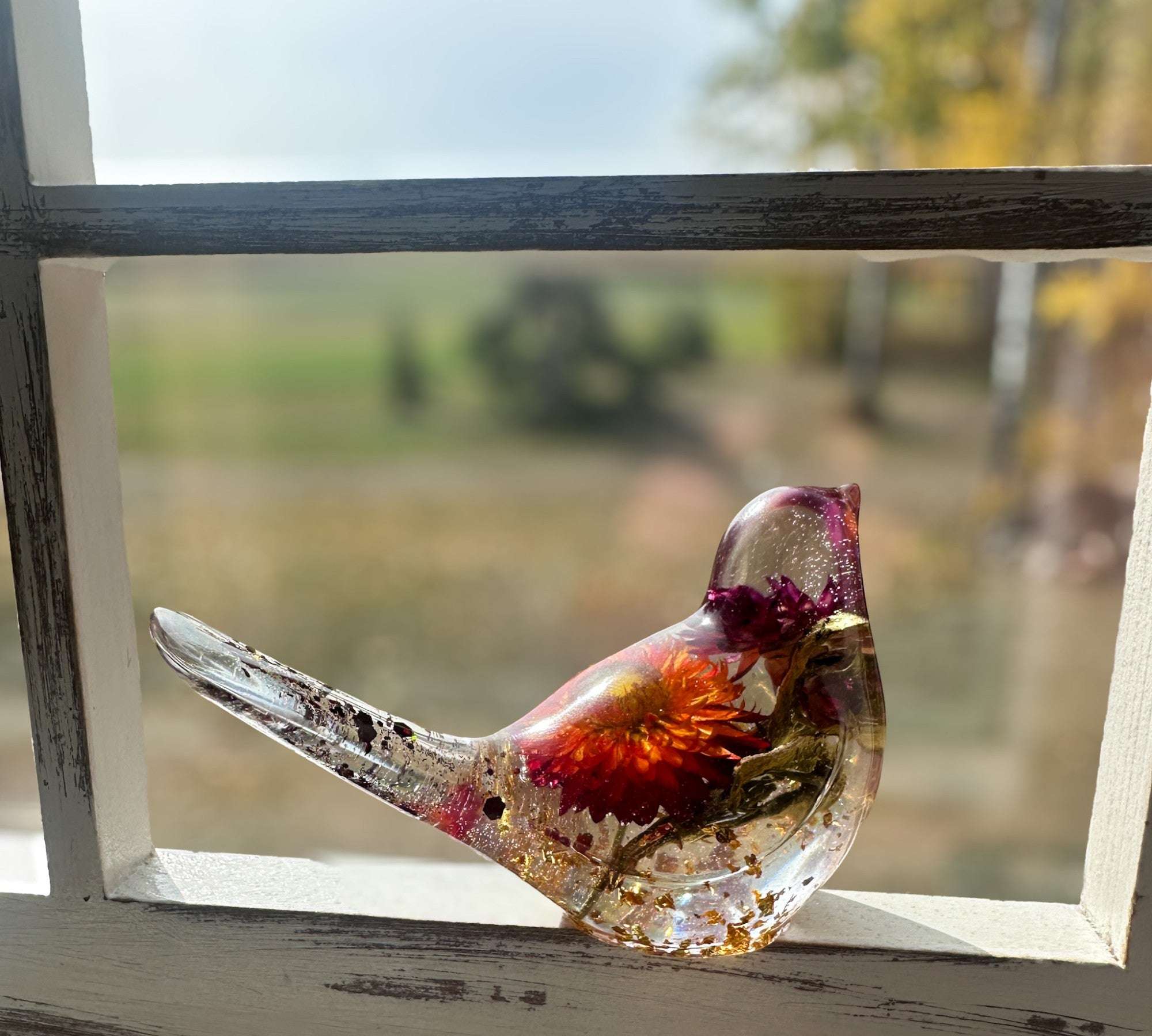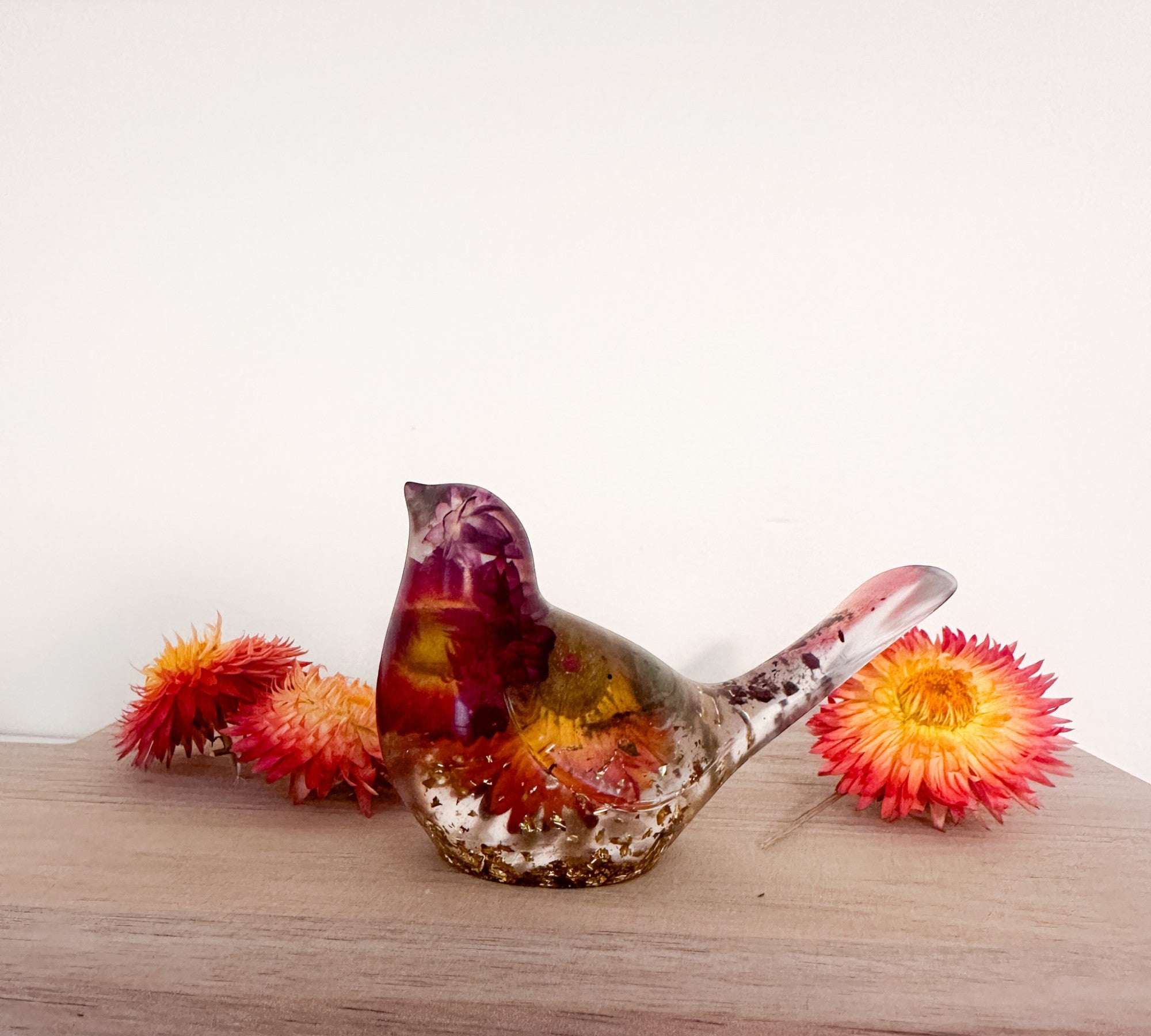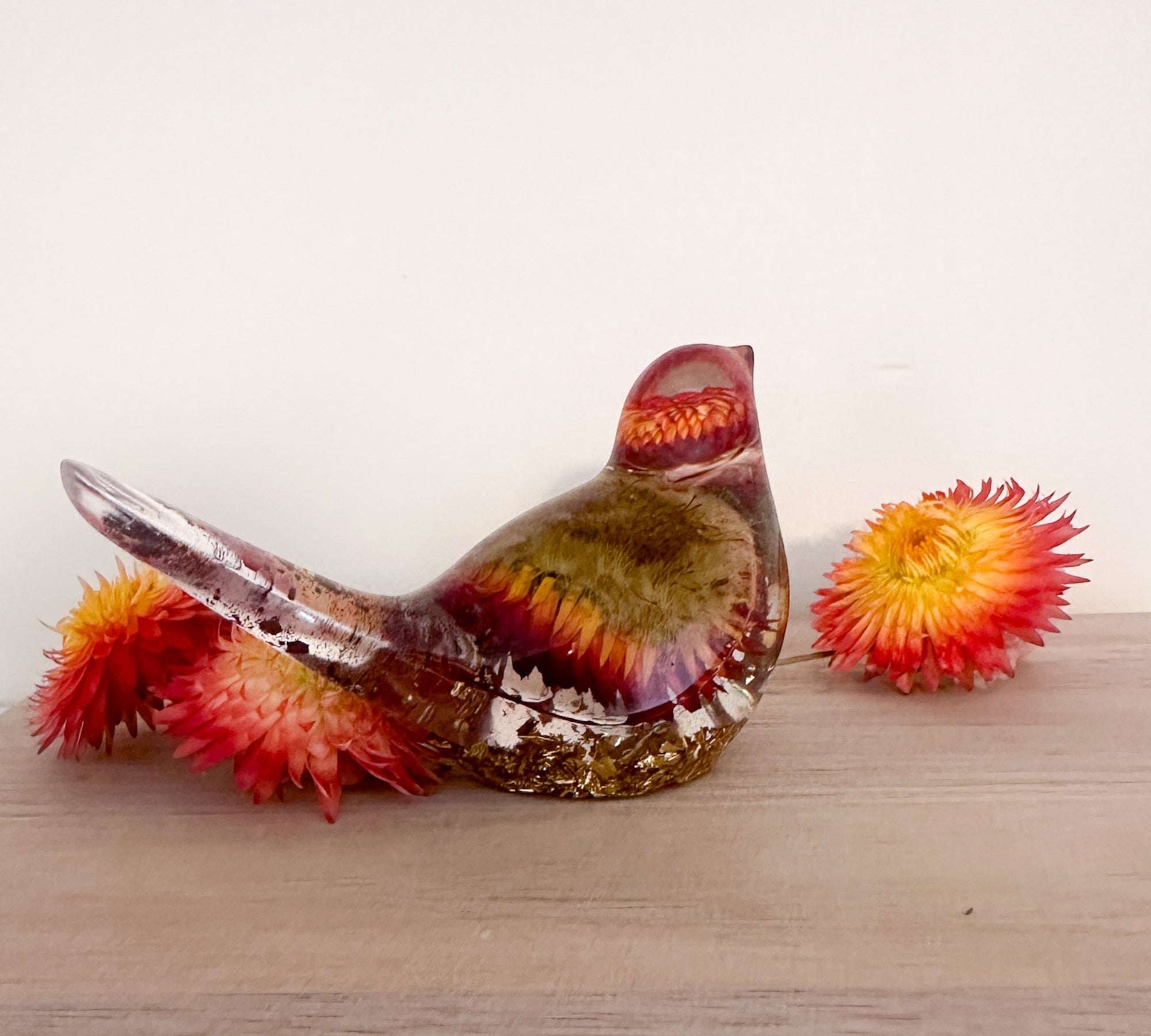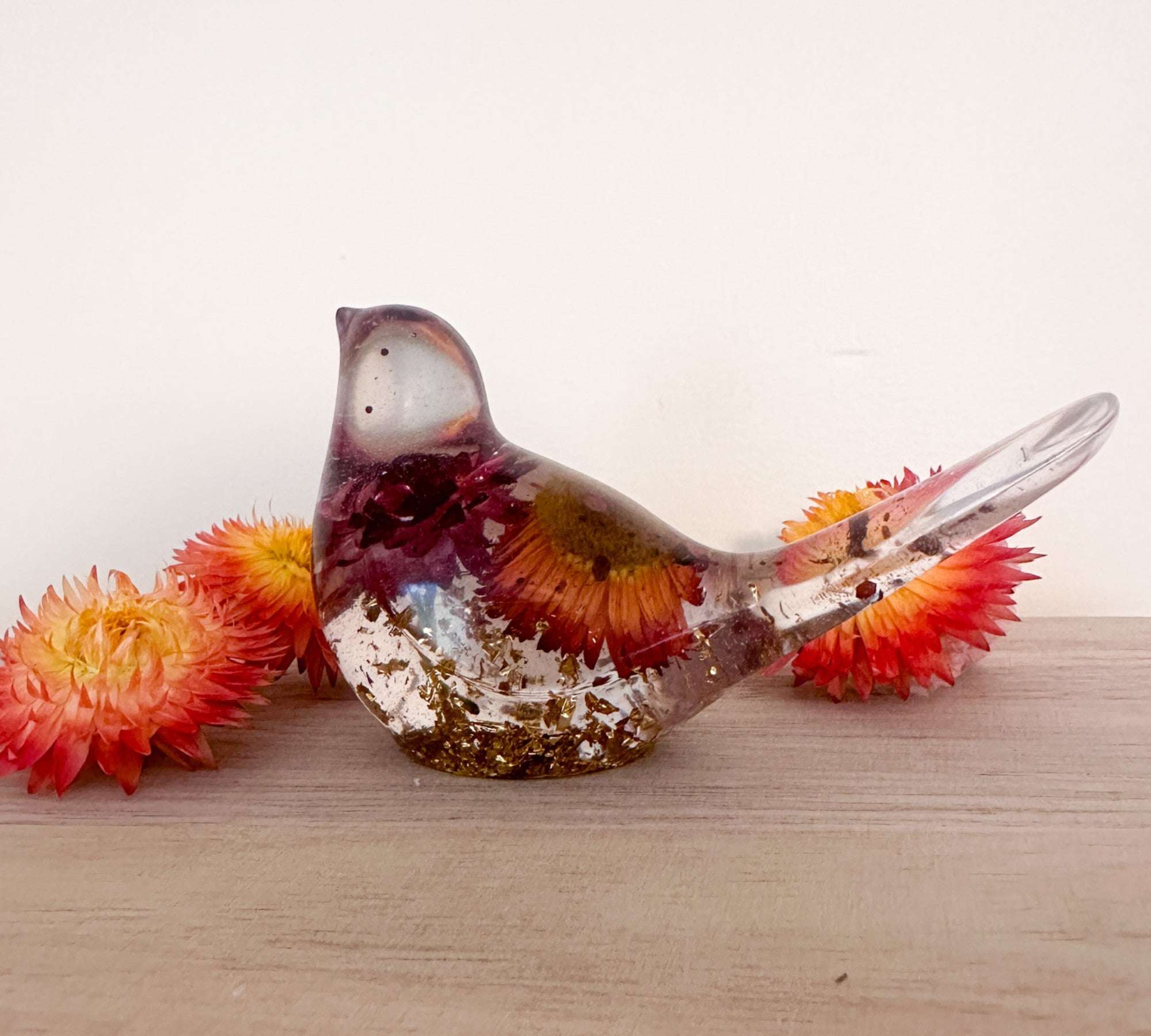 Harvest Songbirds - Handmade Resin Birds with Strawflowers & Glitter