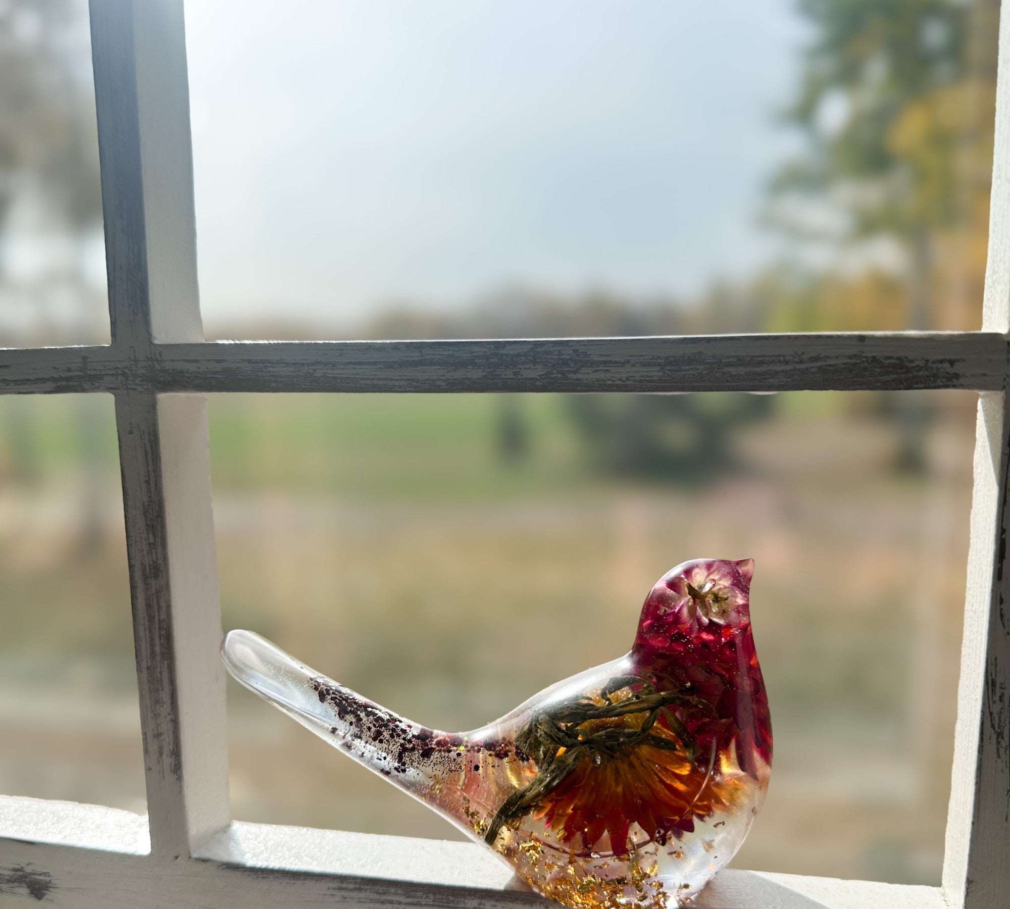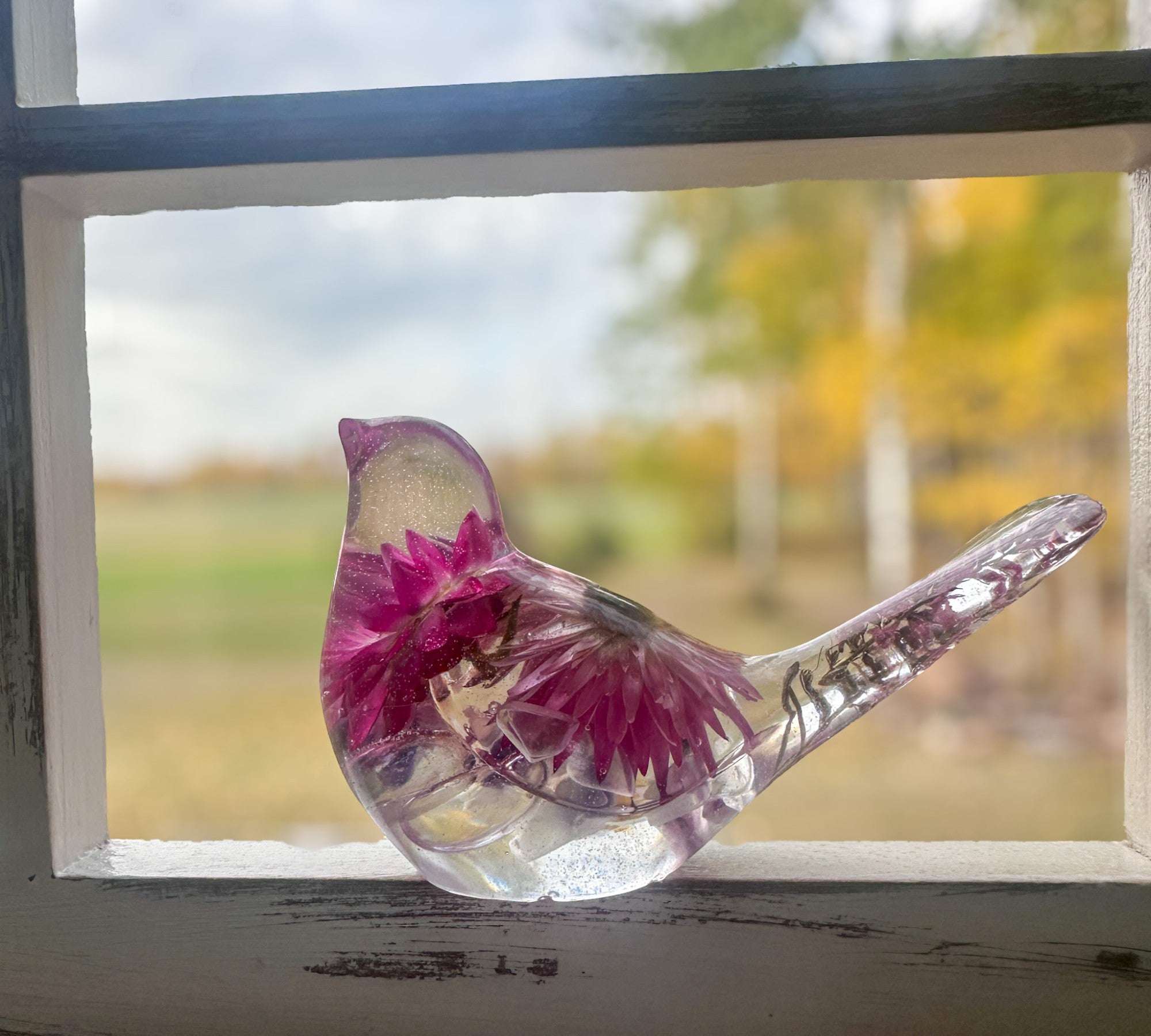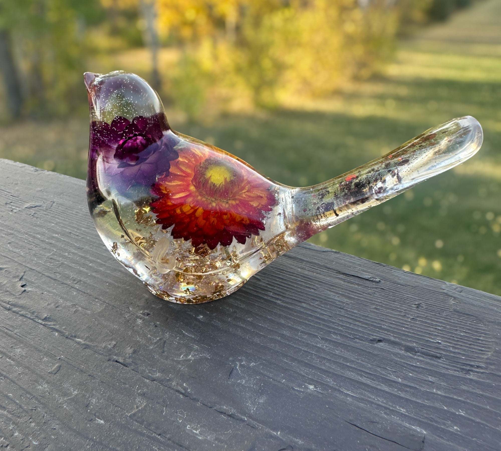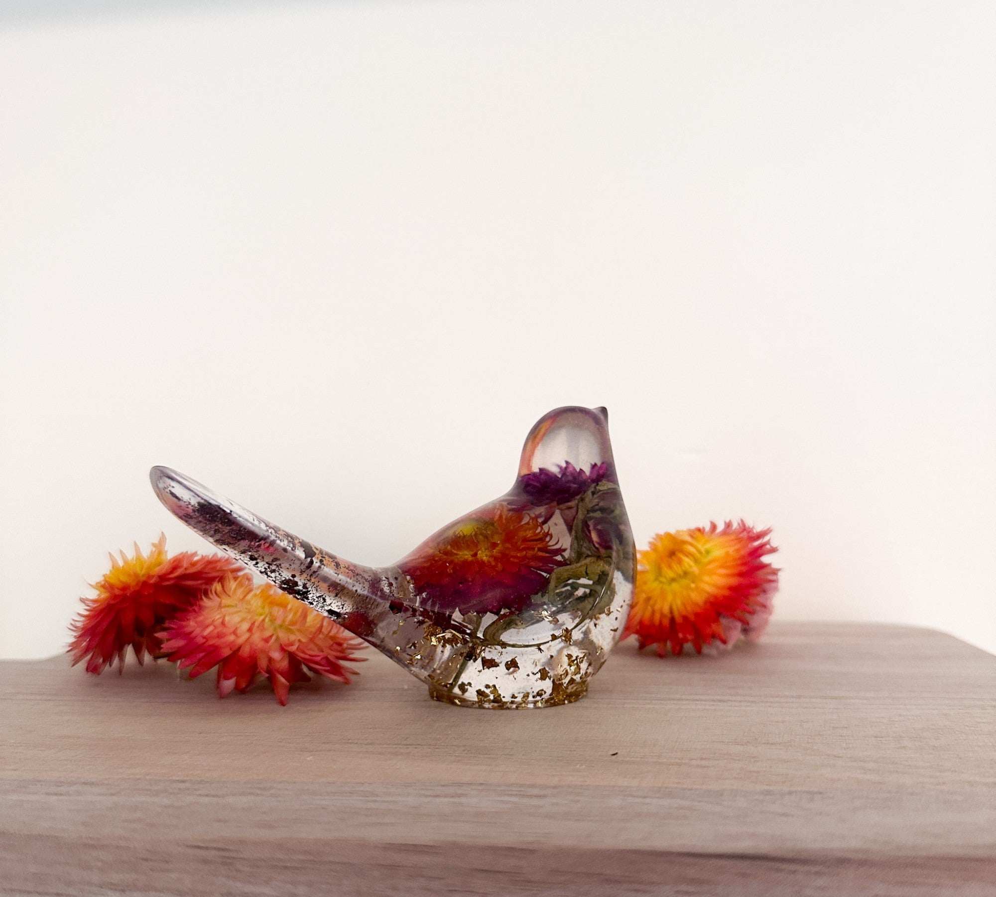Harvest Songbirds - Handmade Resin Birds with Strawflowers & Glitter