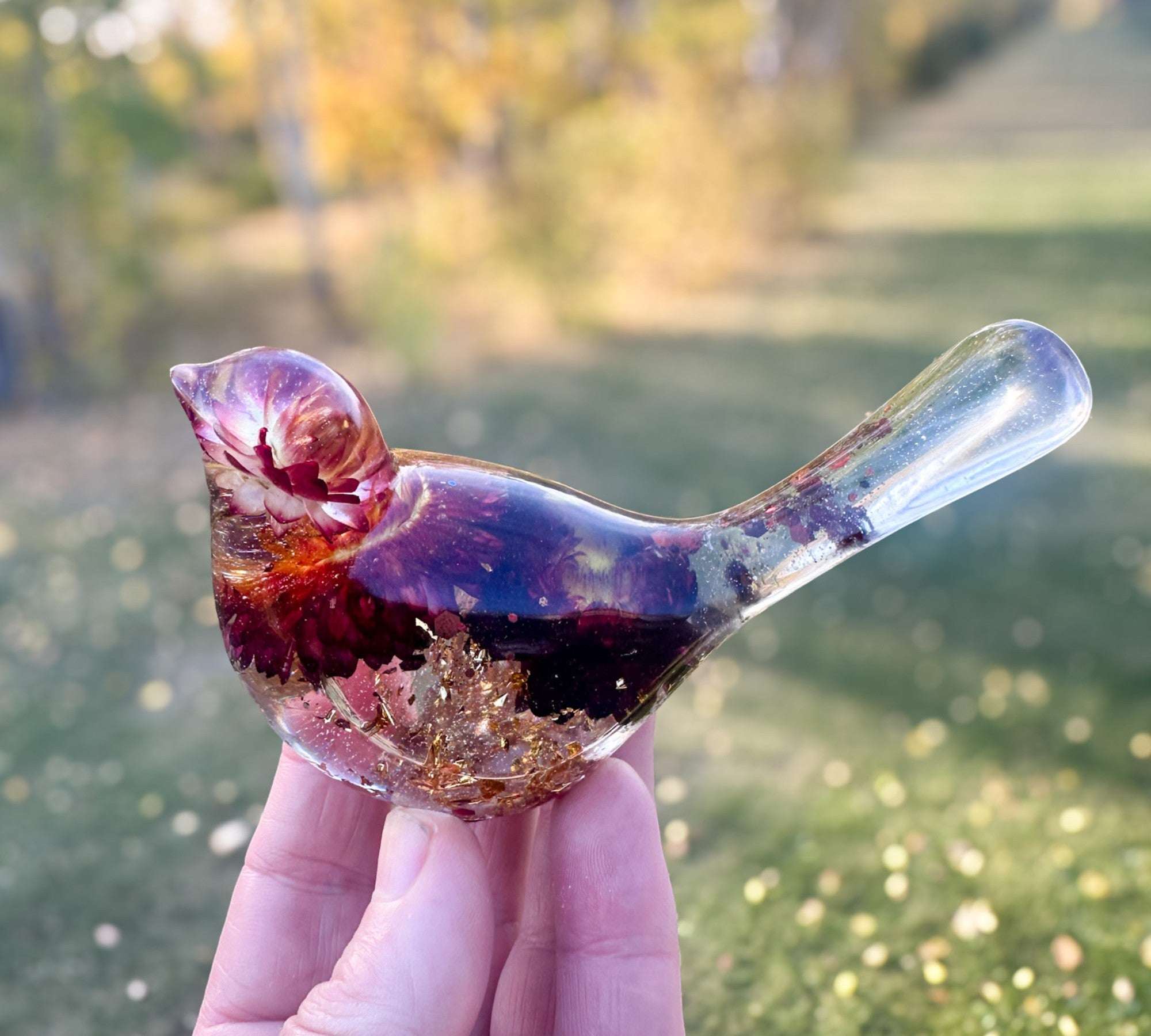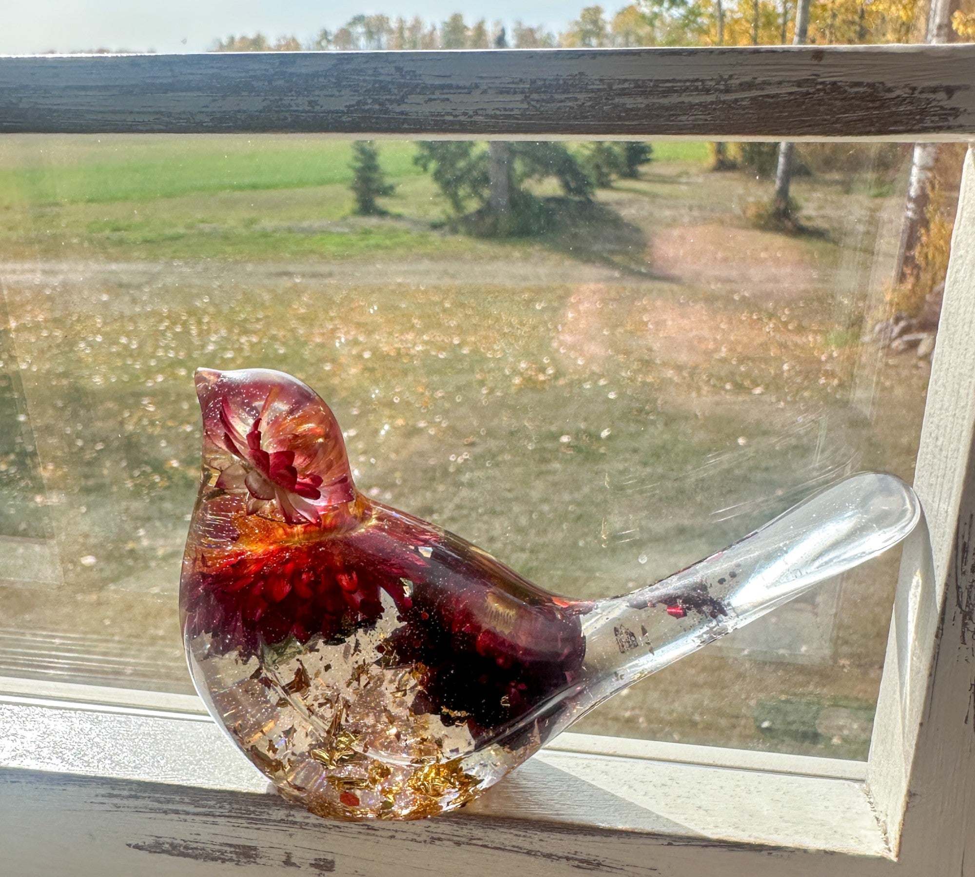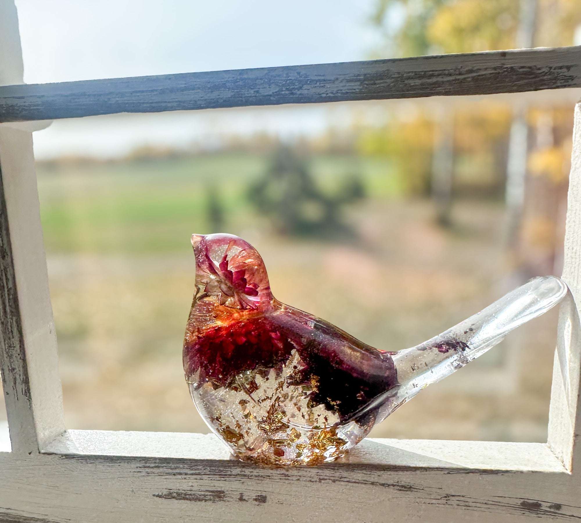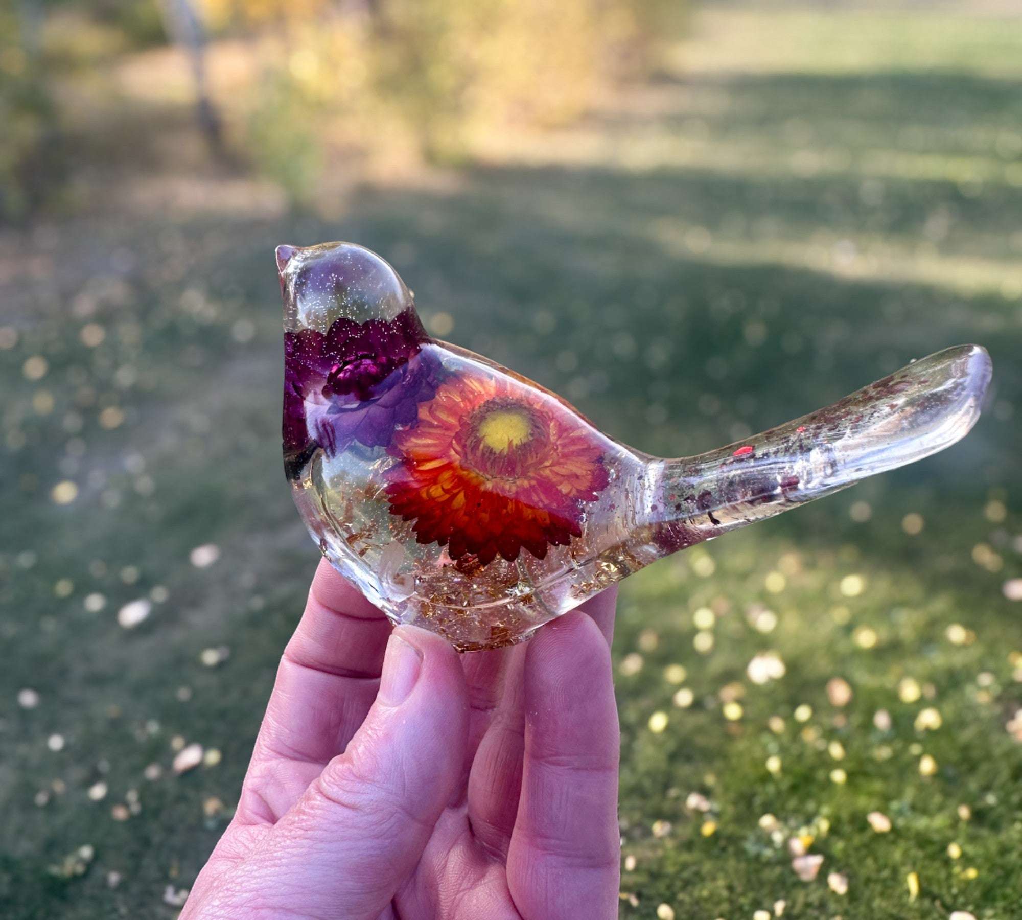 Harvest Songbirds - Handmade Resin Birds with Strawflowers & Glitter
