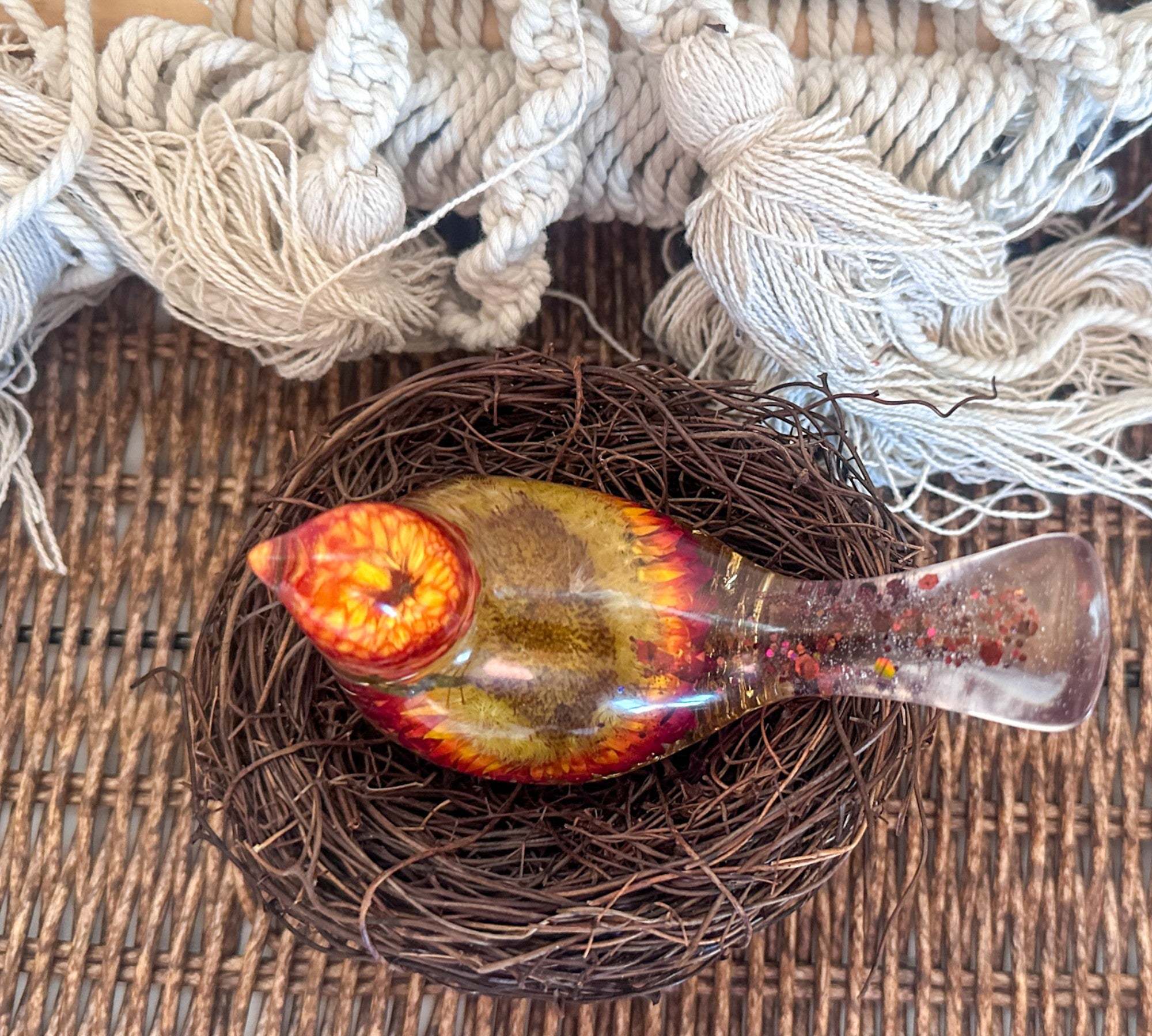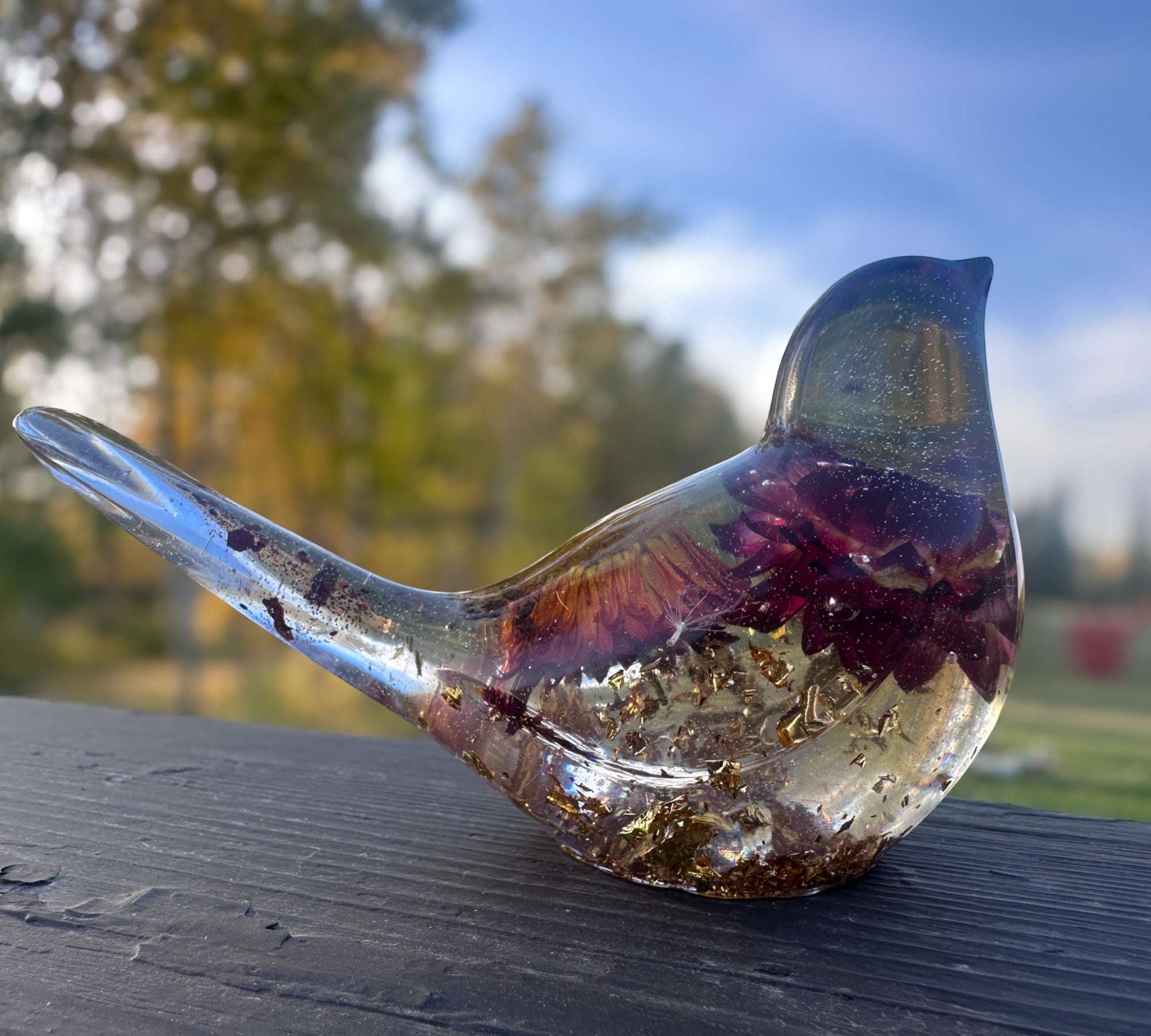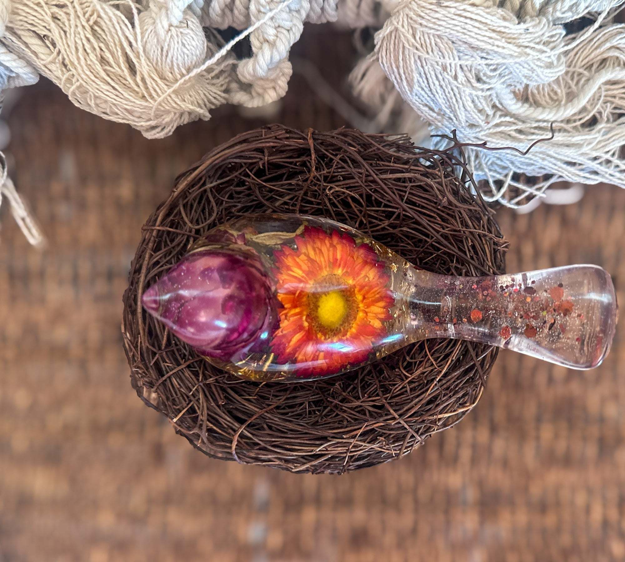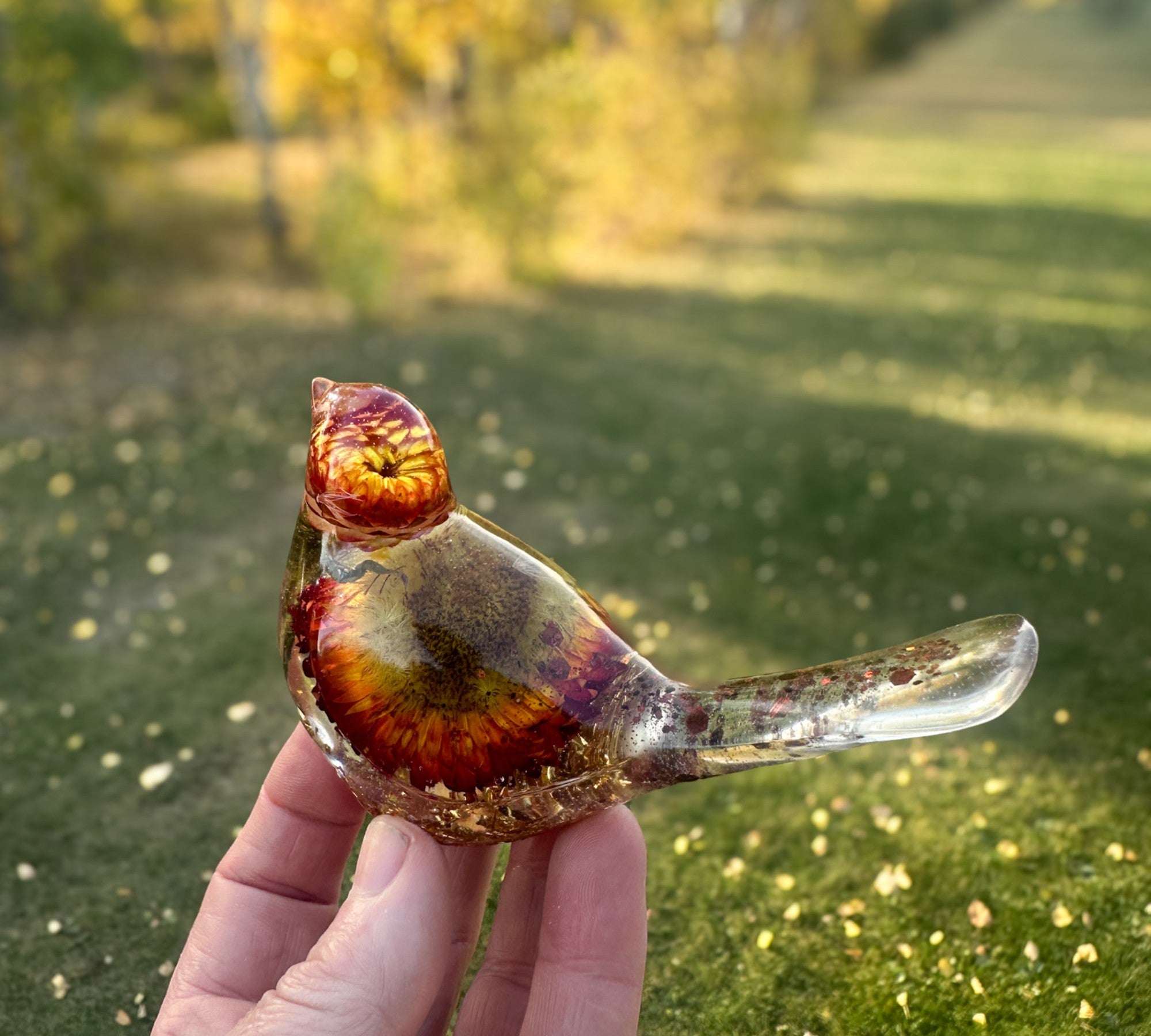Harvest Songbirds - Handmade Resin Birds with Strawflowers & Glitter