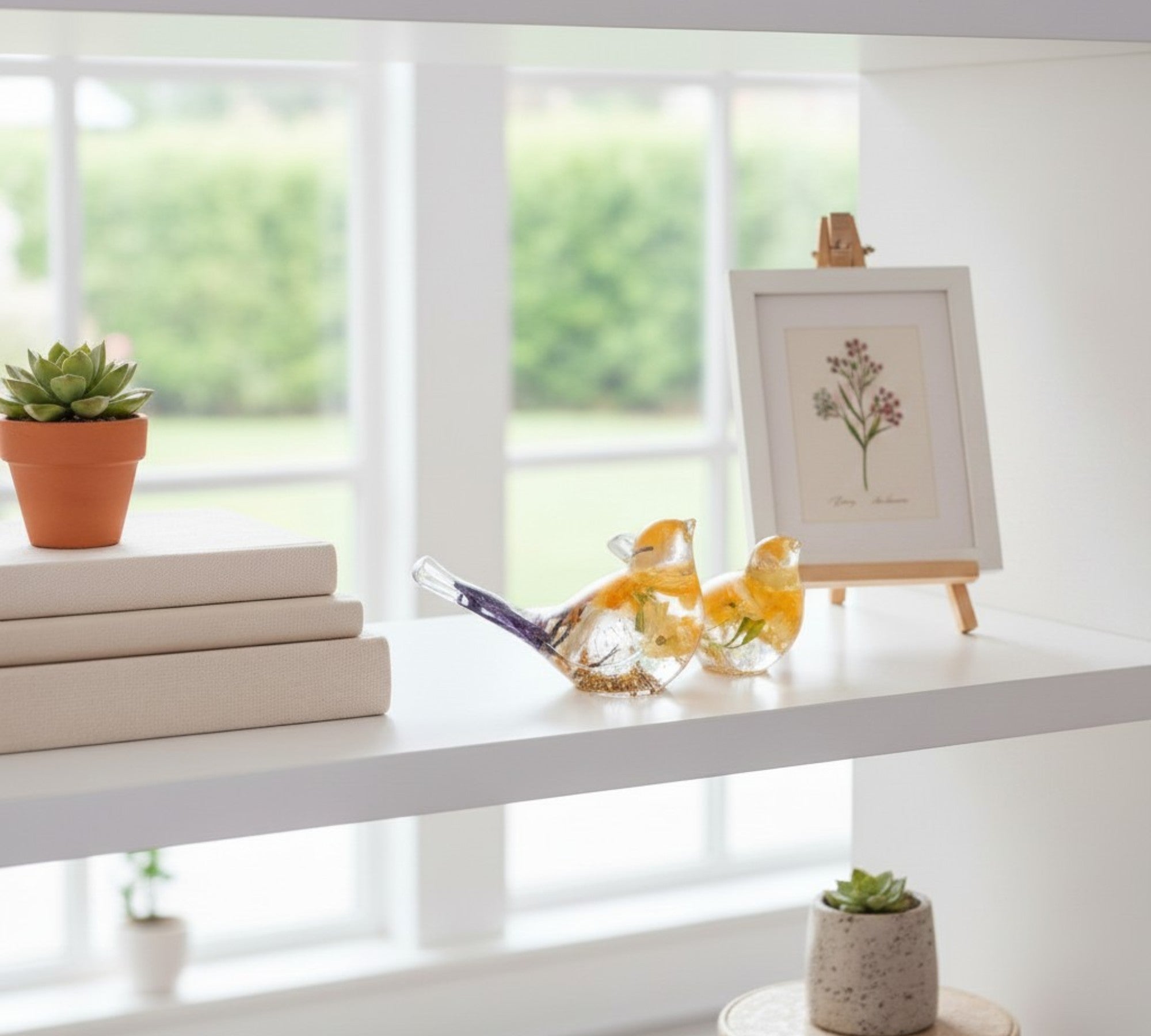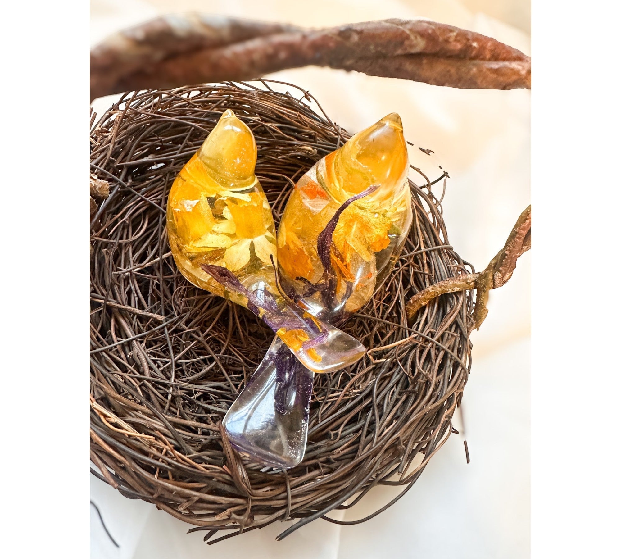 I purchased the songbird with Daffodil and Crocus flowers inside and it is so beautiful! It is truly special to find art made by hand, made with care and made by a Canadian artist. I highly recommend the items made by artist Heidi at Dragonfly Treasures, a great gift for yourself or your loved ones.