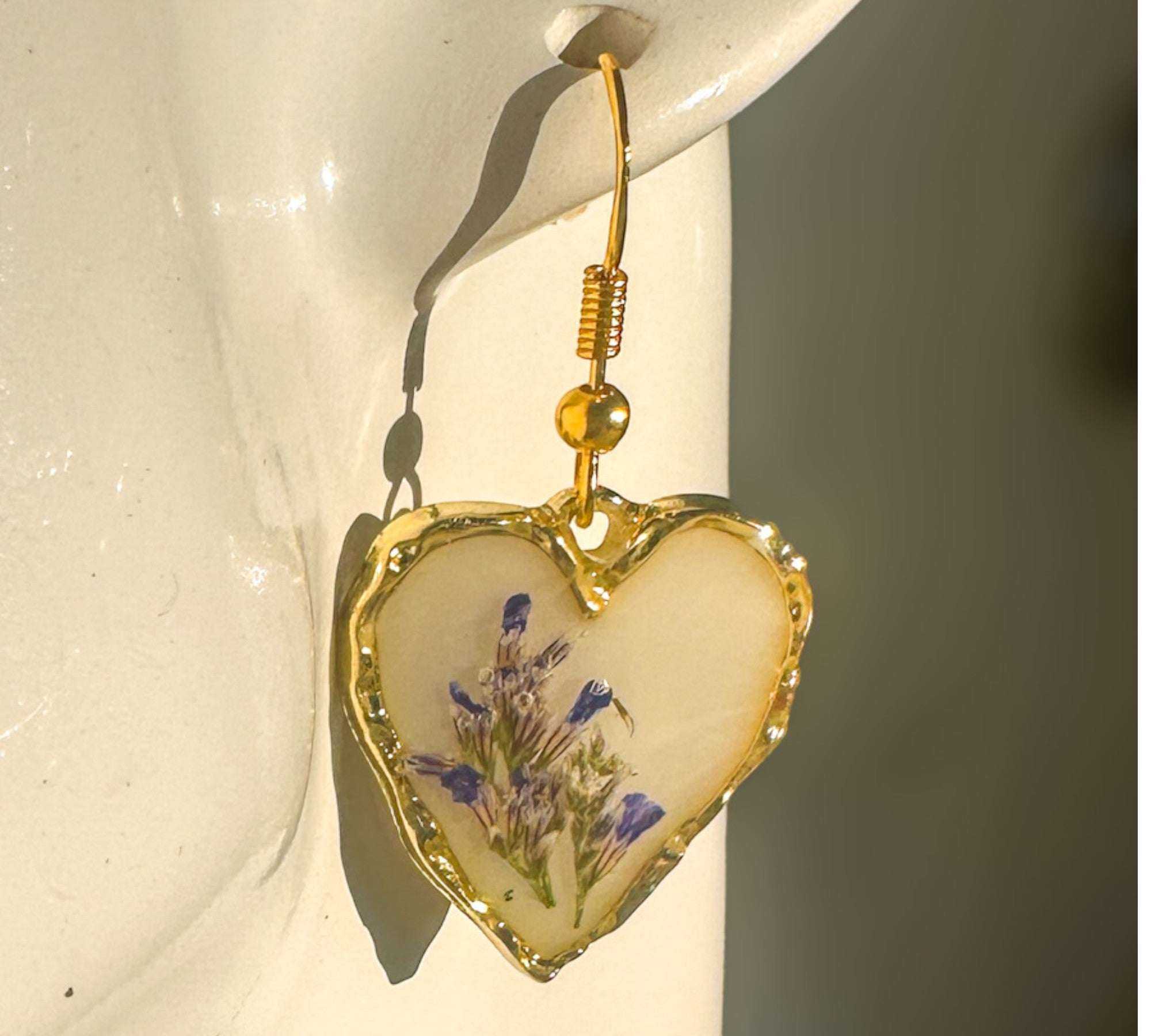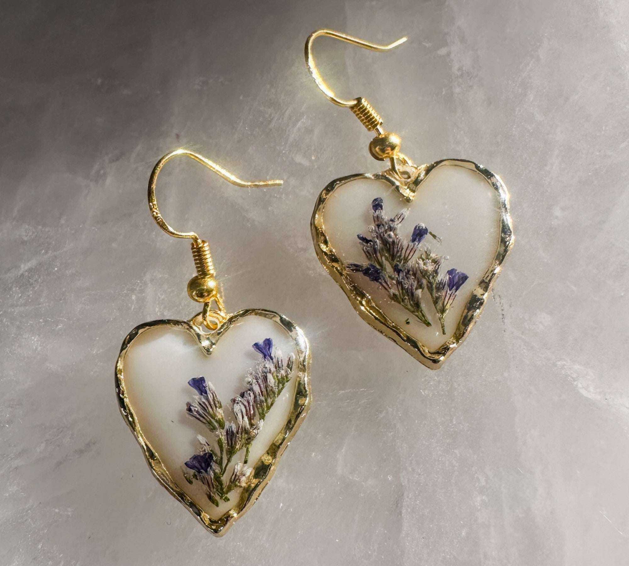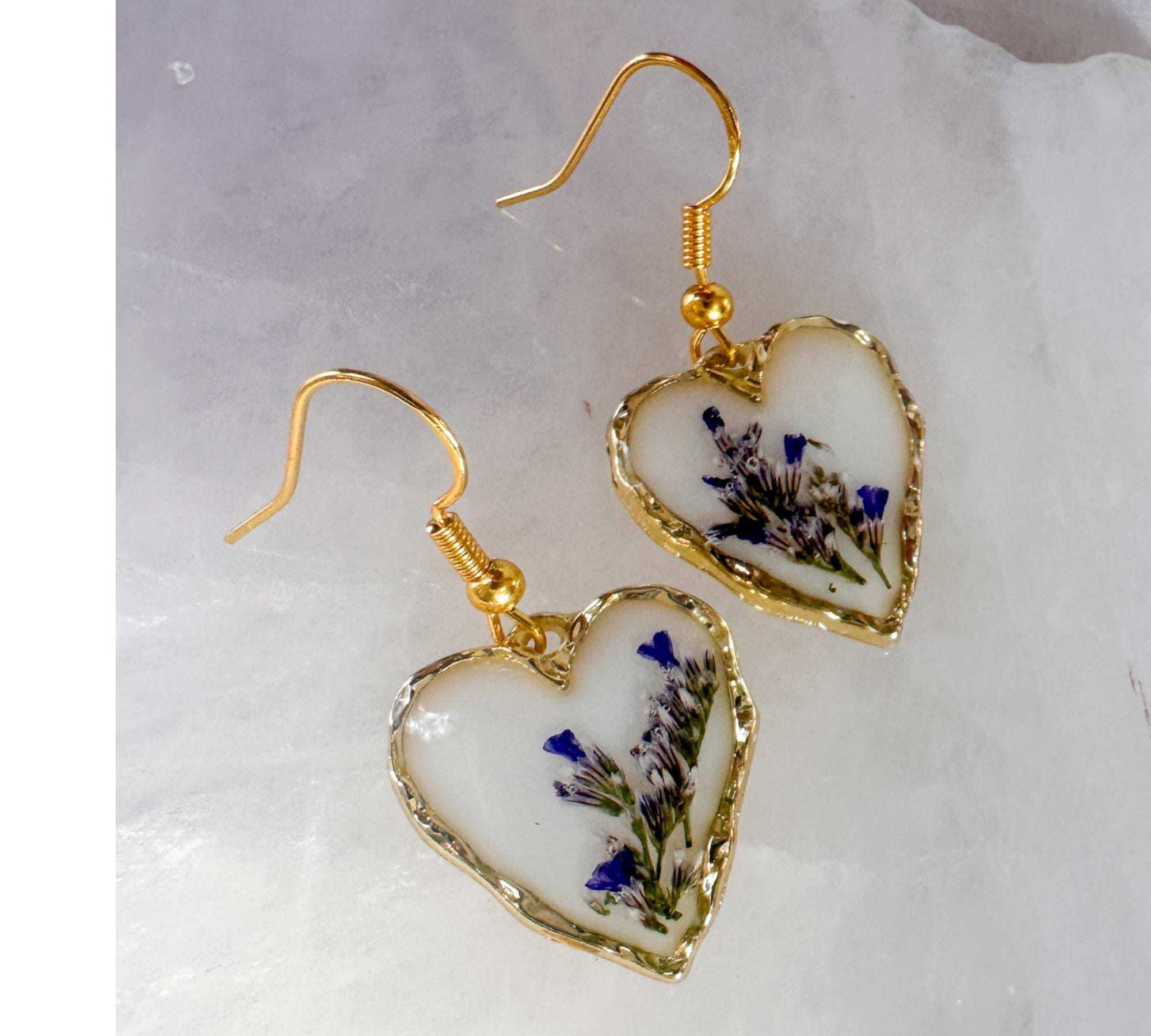• Every heart is hand-poured, ensuring that the floral "landscape" in your earrings is uniquely yours.