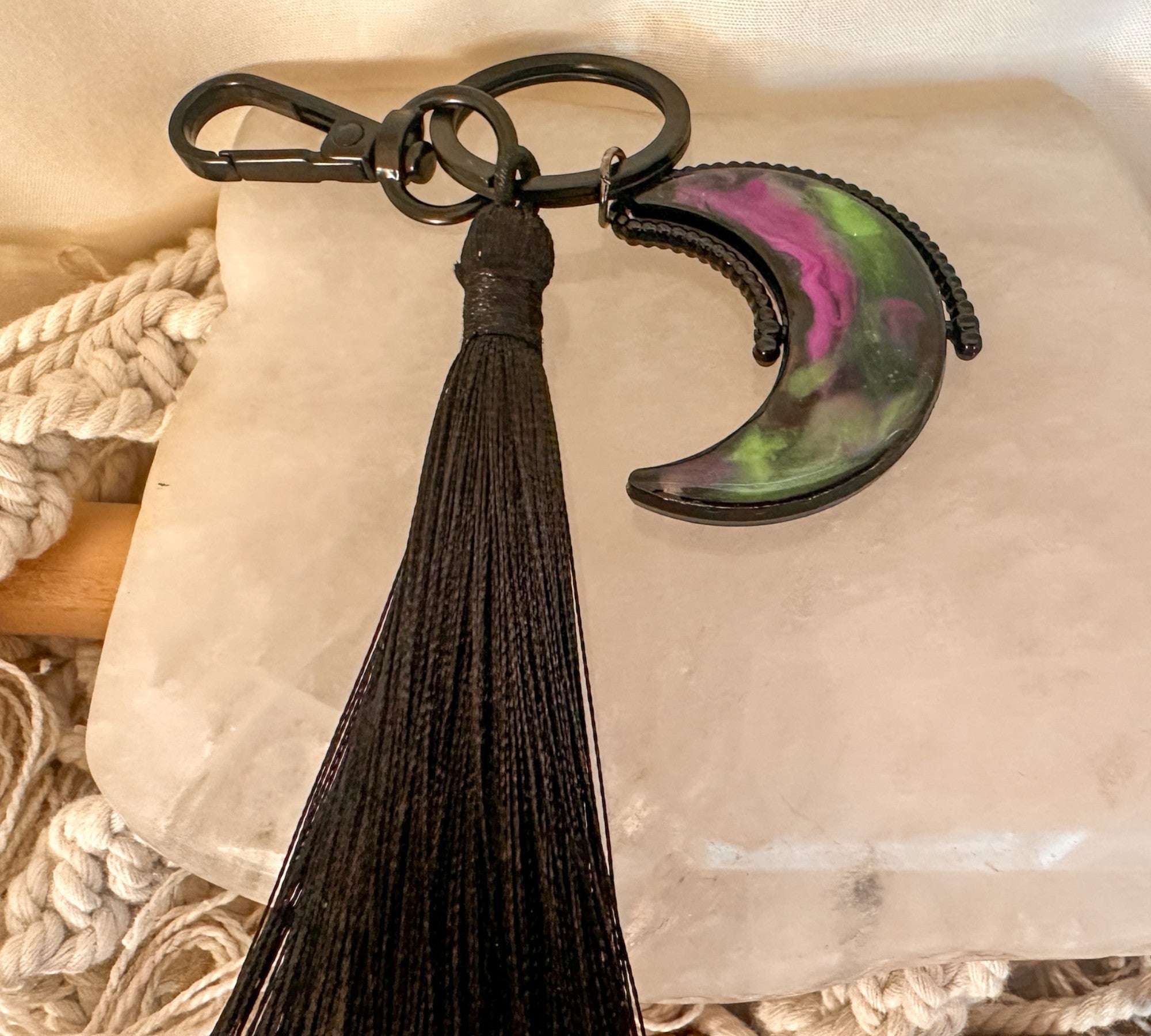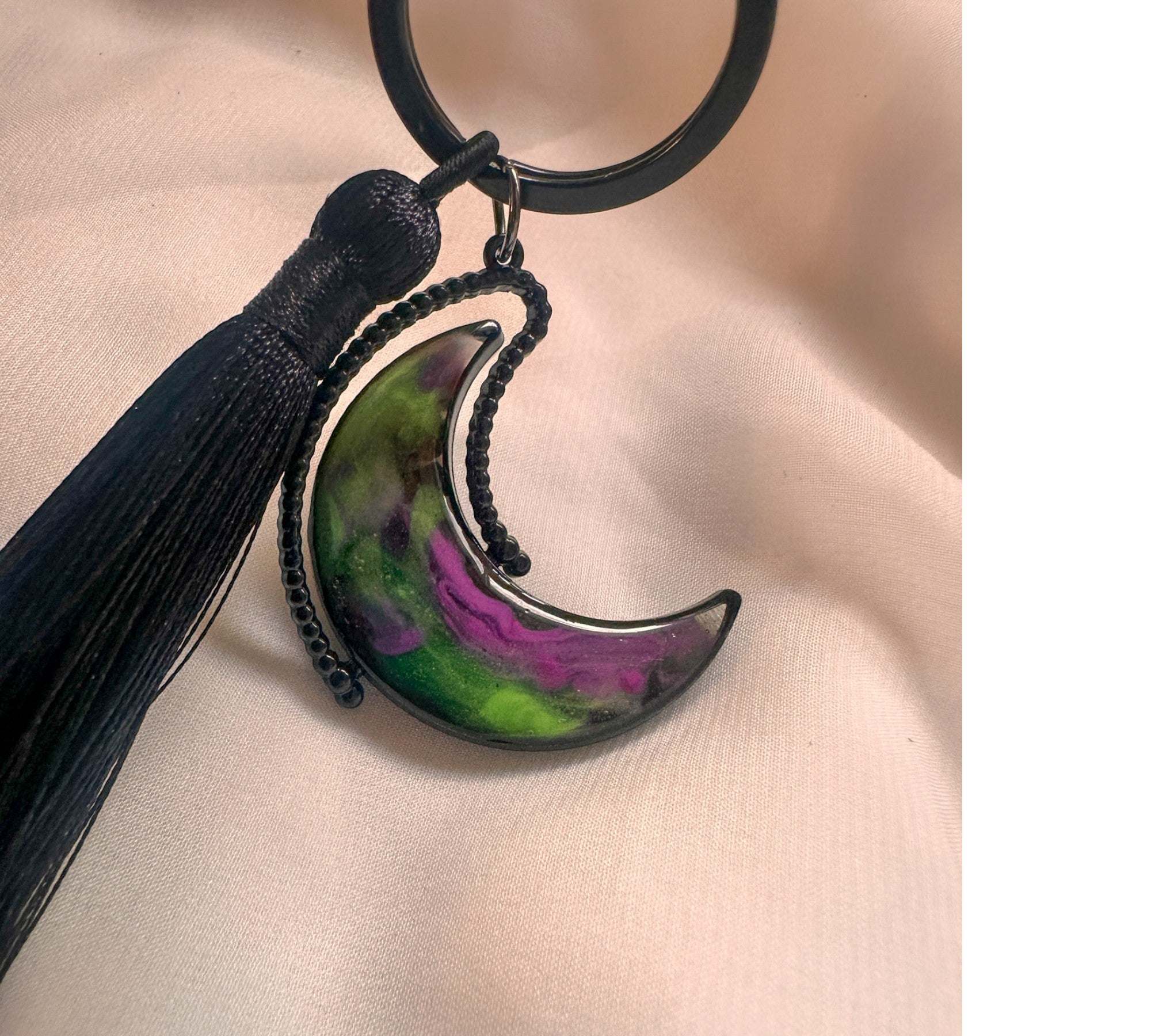 Aurora Moon Spinner Charm - Two Sided Northern Lights Keychain