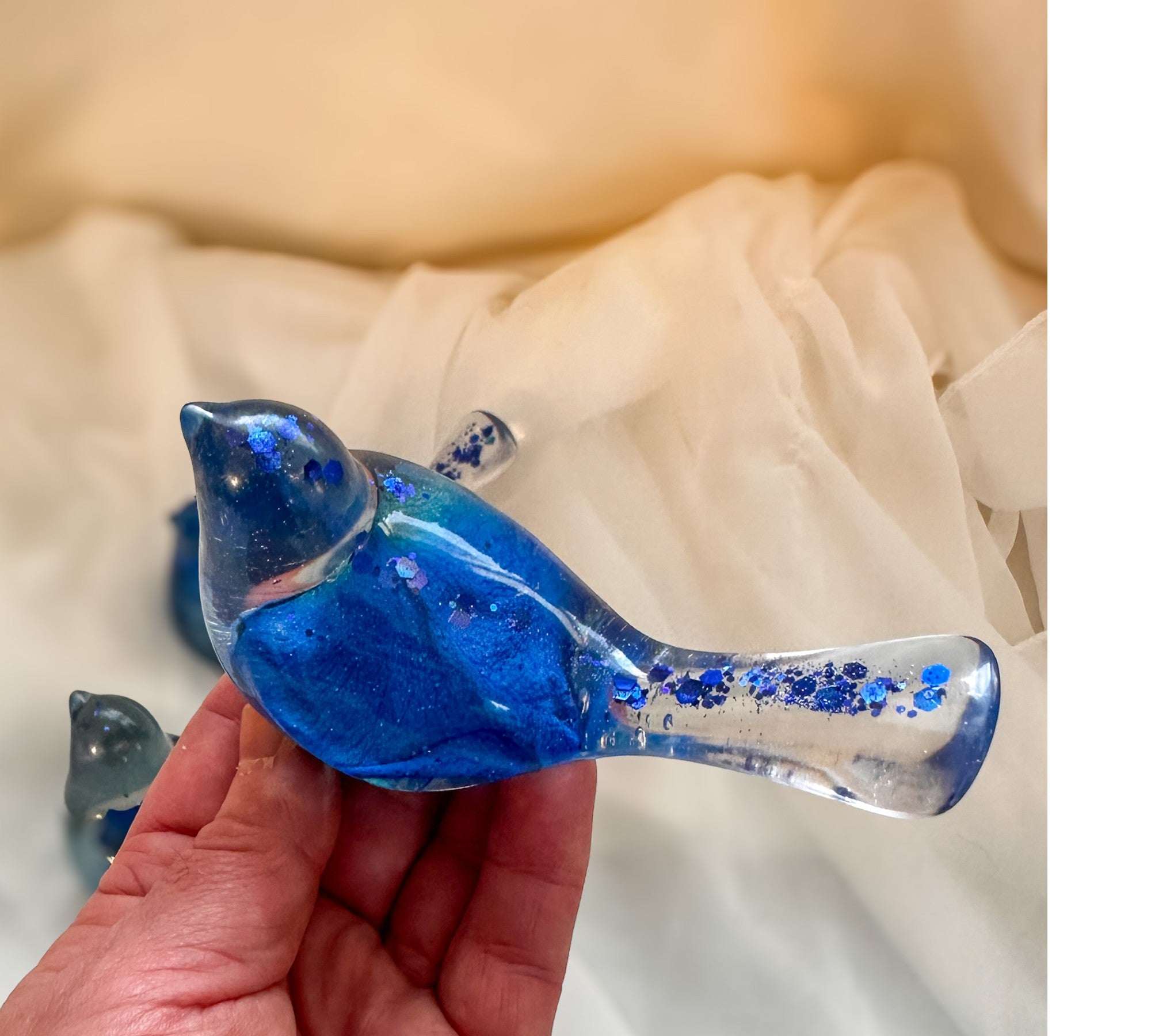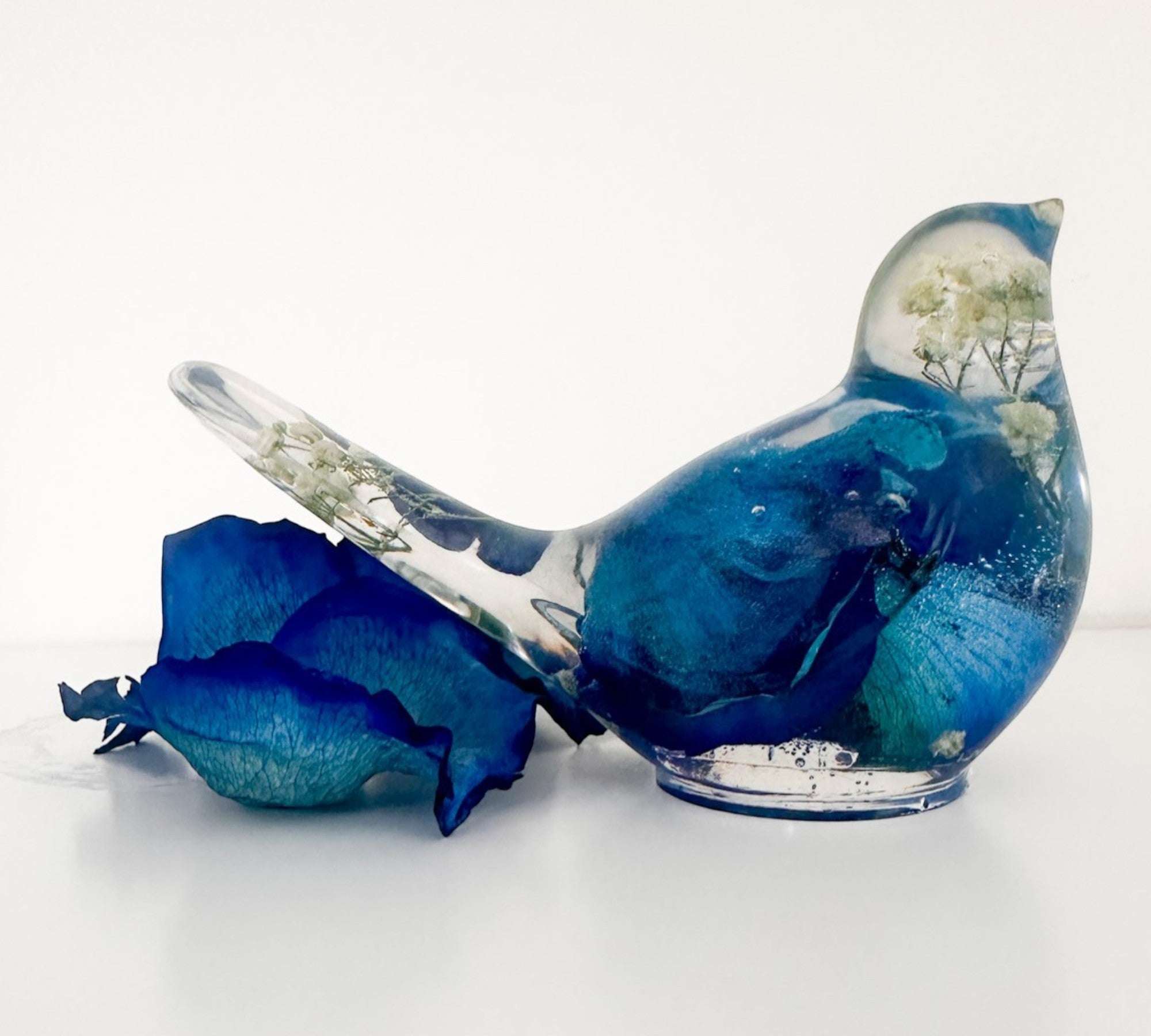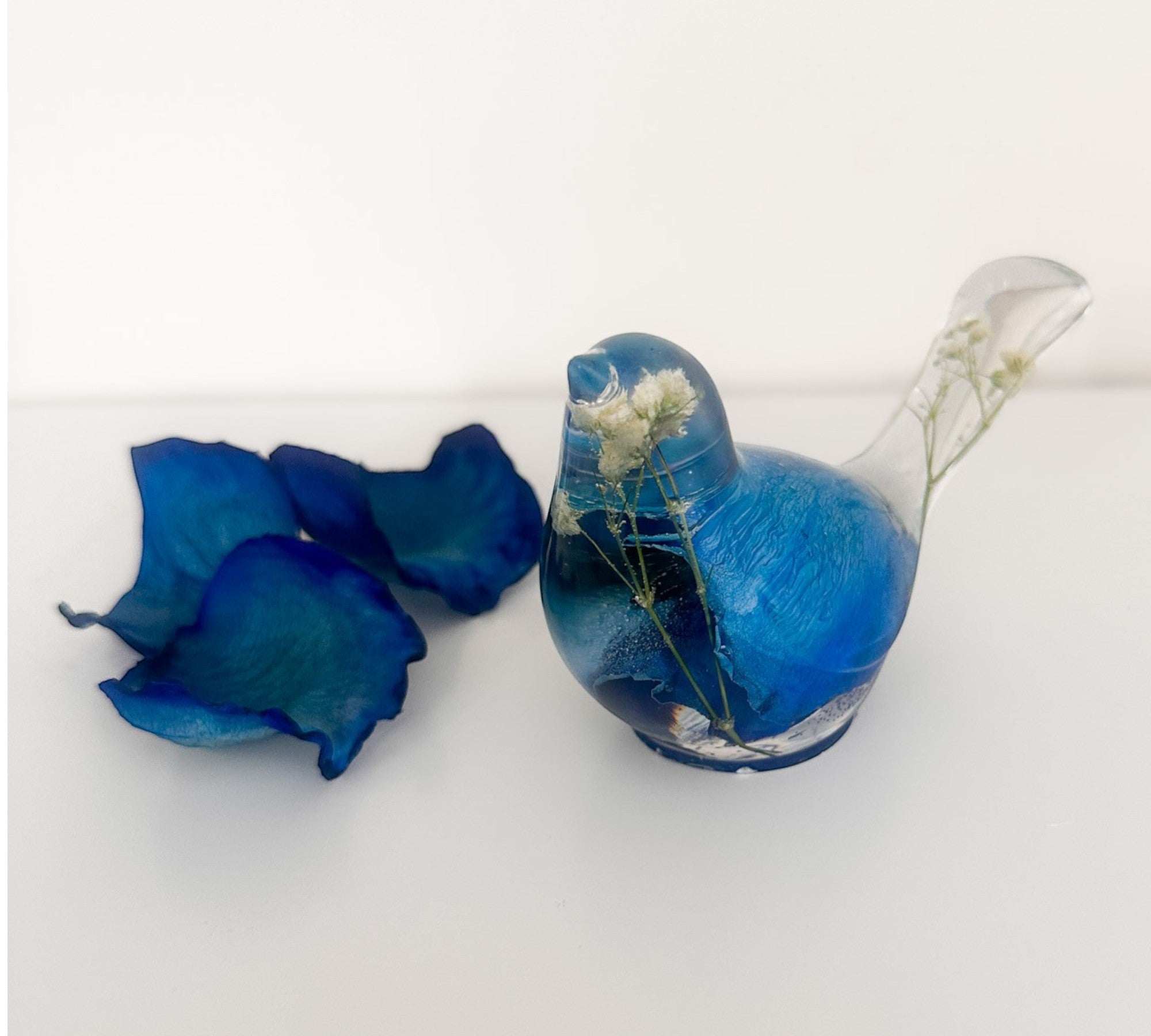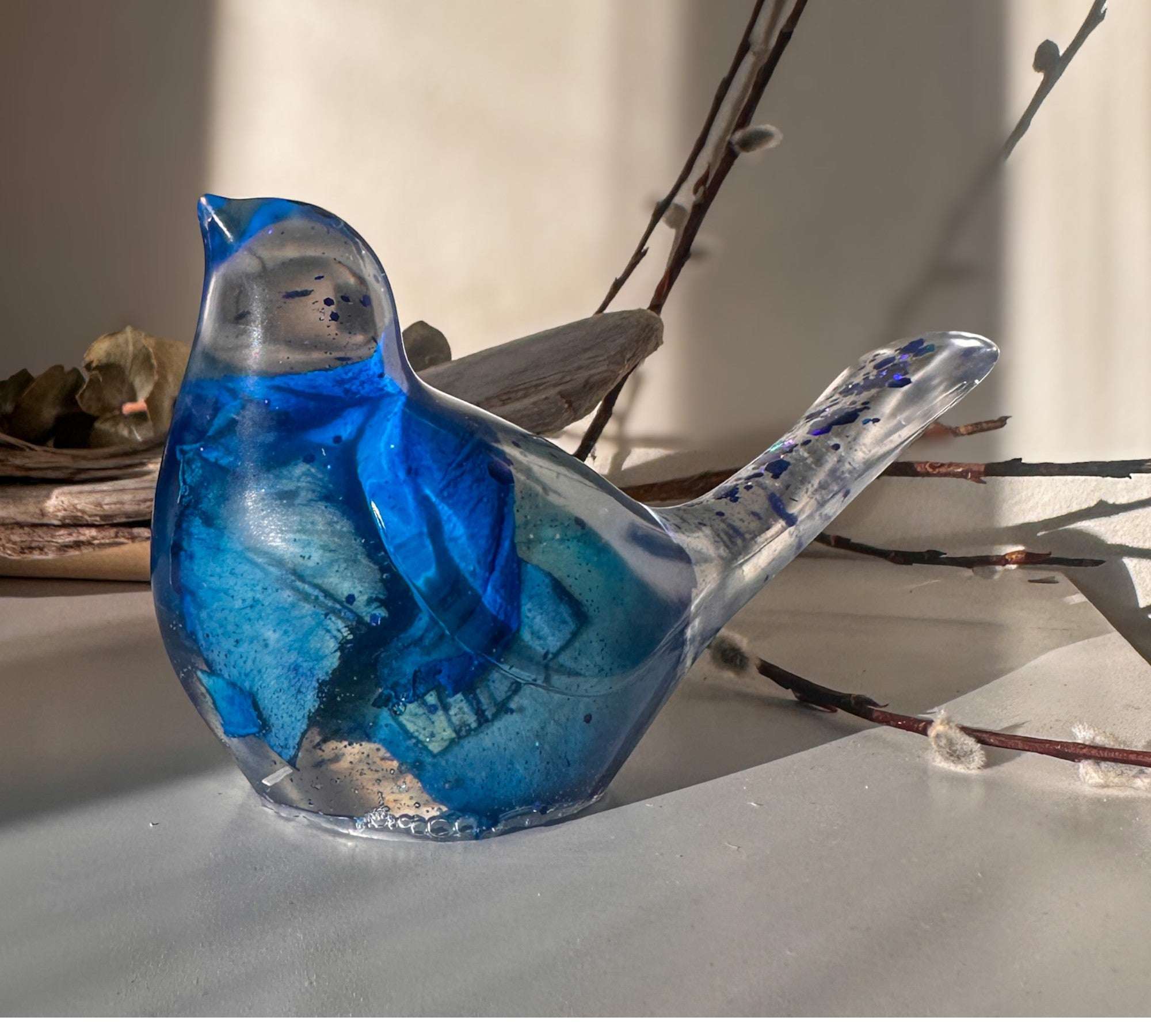 Azure Songbirds of Serenity - Handmade Blue Rose Petal Resin Bird
