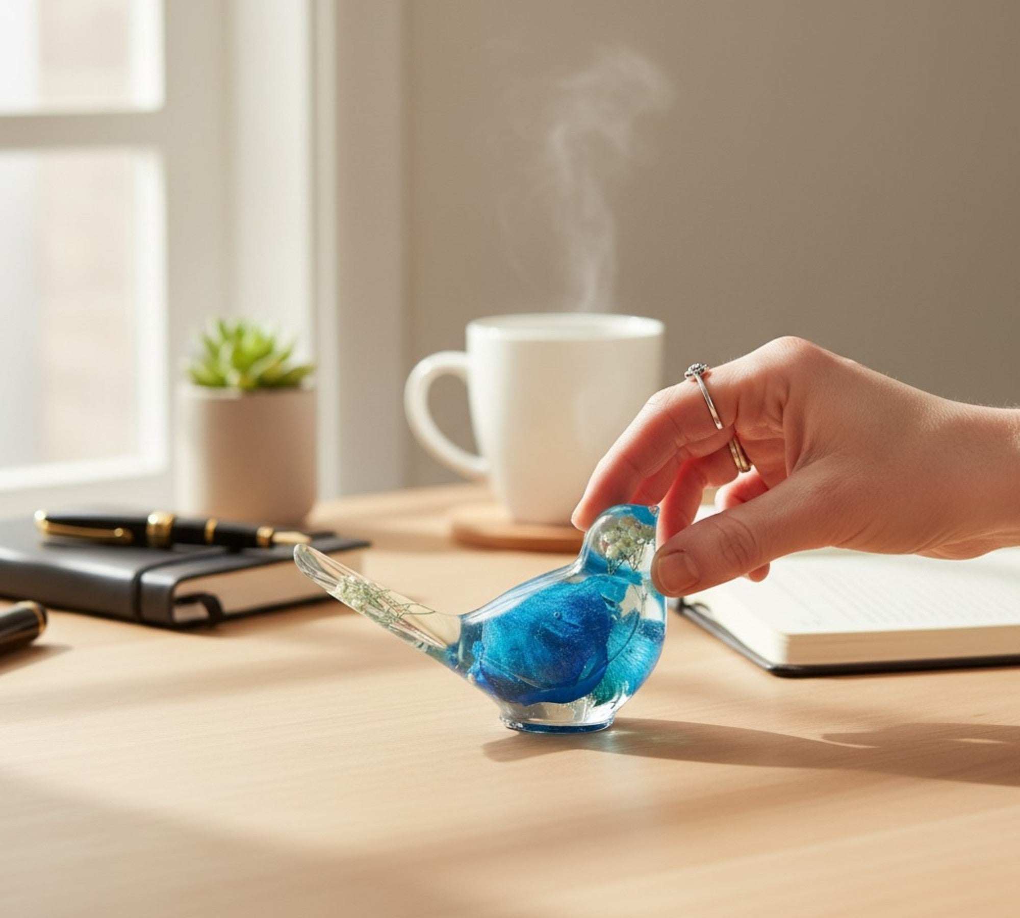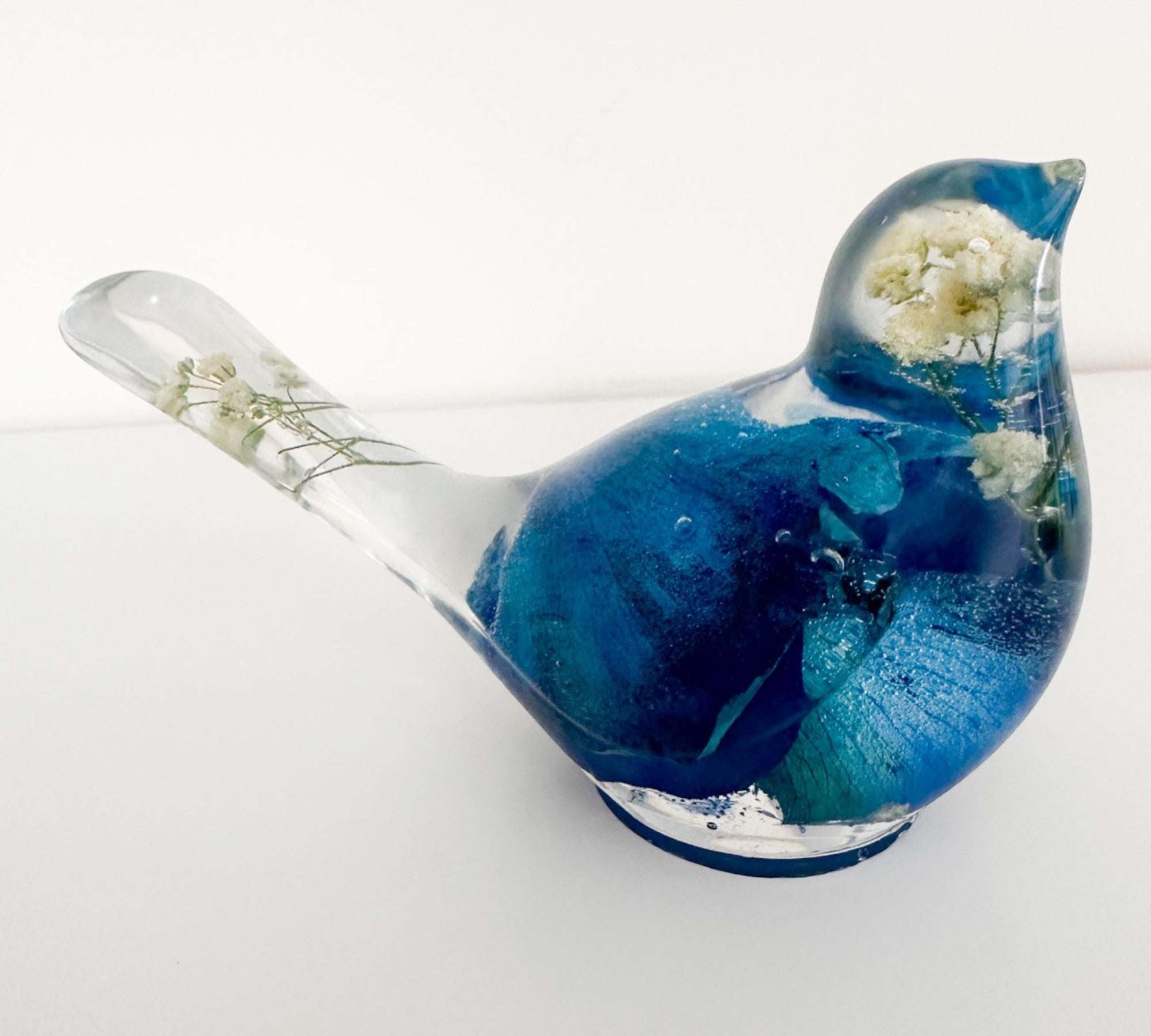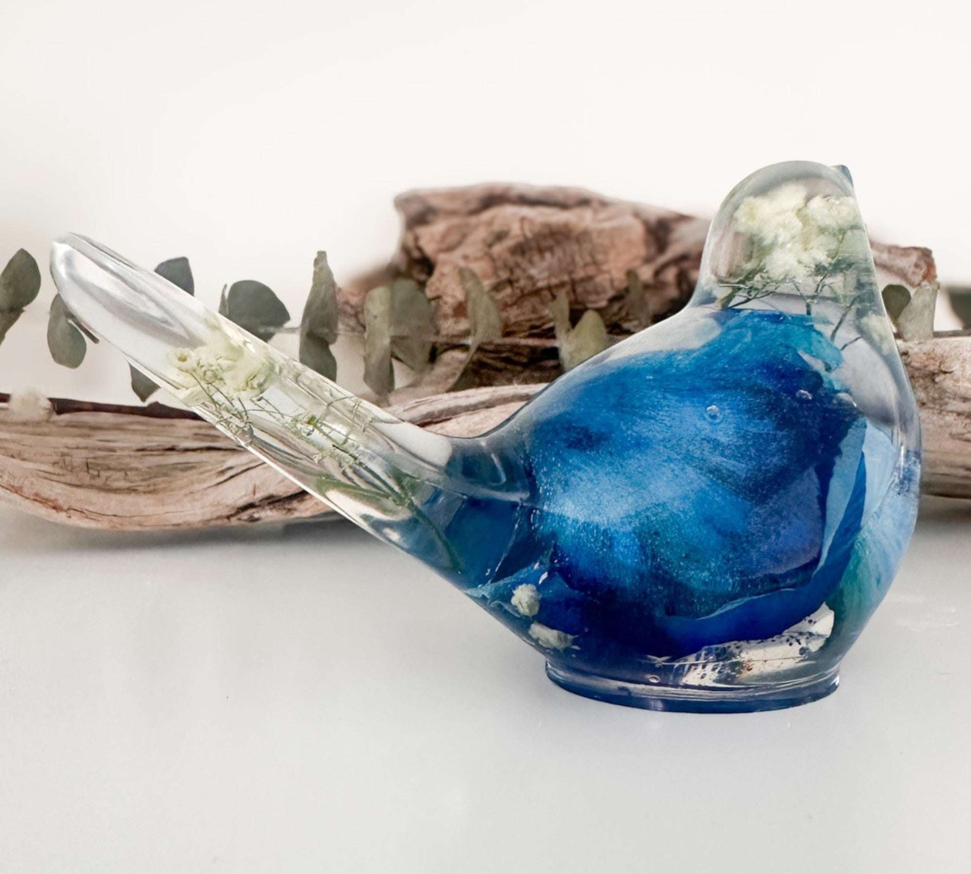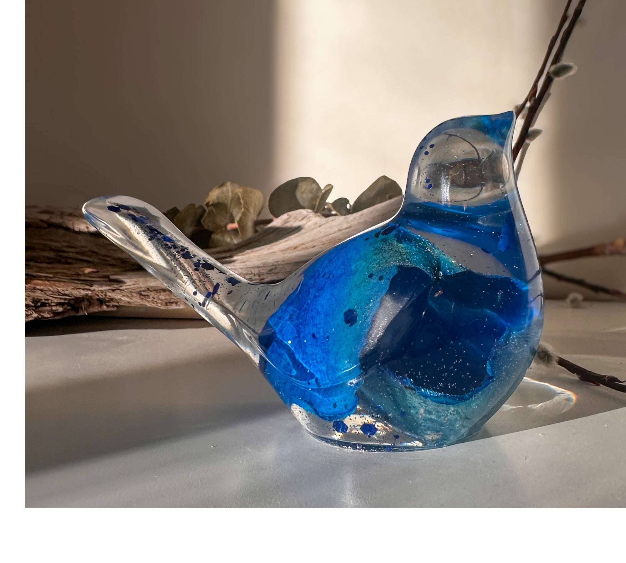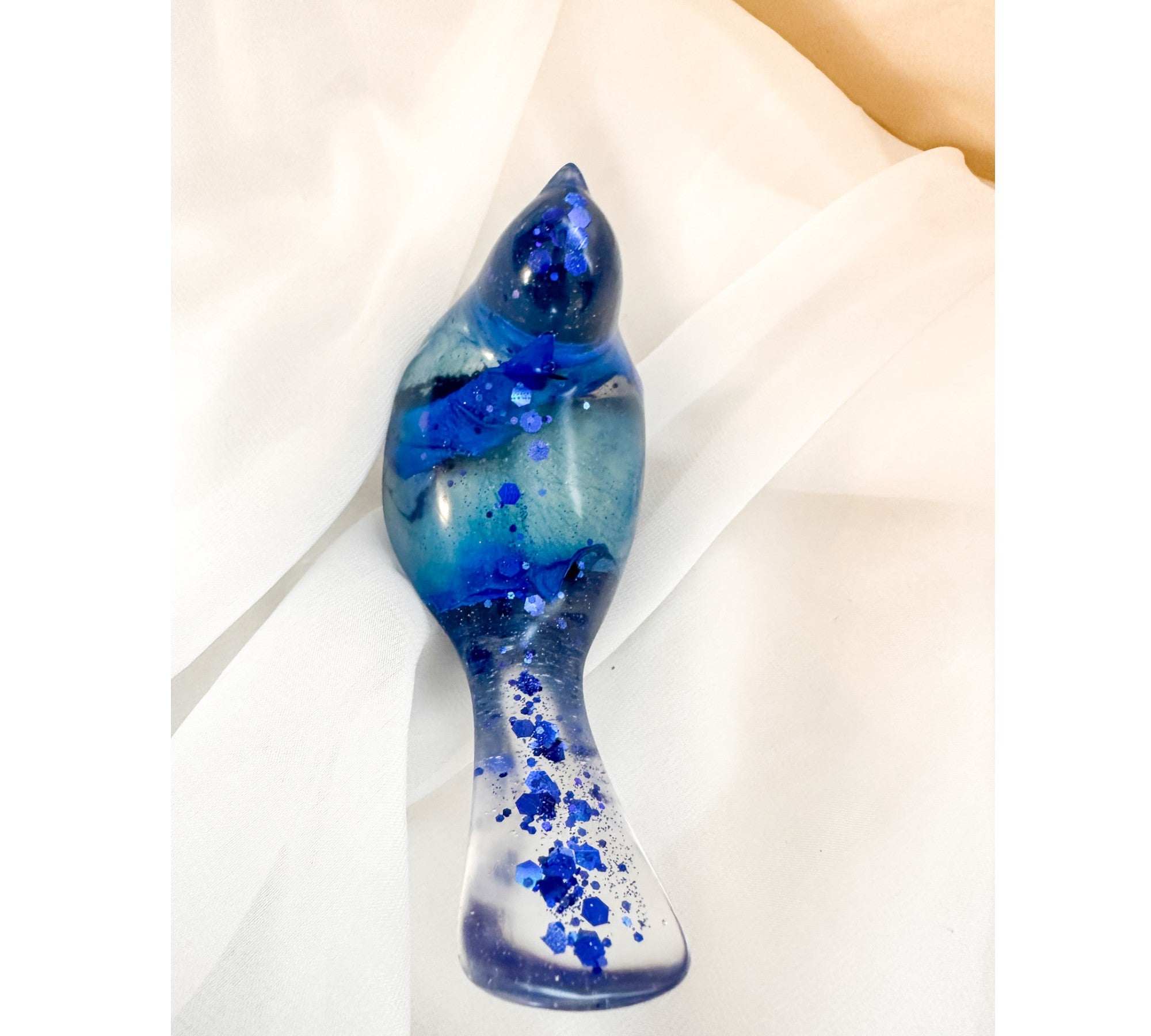 Azure Songbirds of Serenity - Handmade Blue Rose Petal Resin Bird