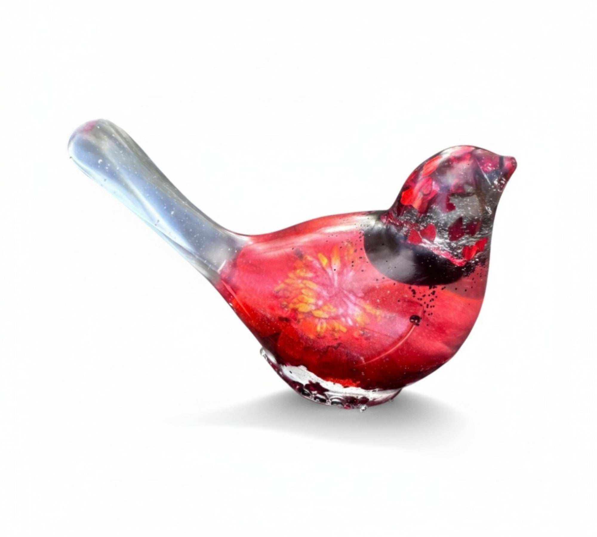 Crimson Melody Songbird – Handmade Resin Art with Real Flowers