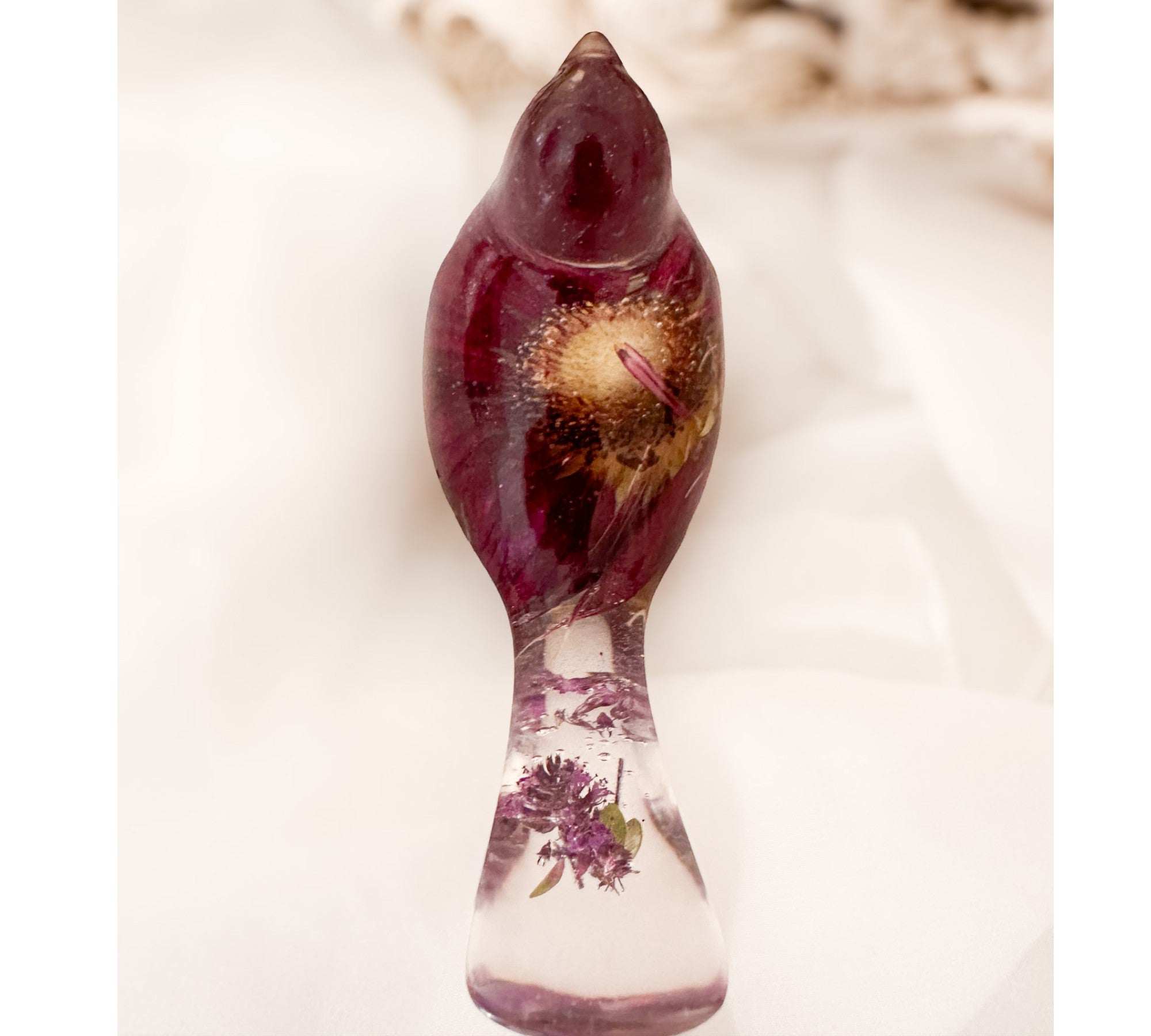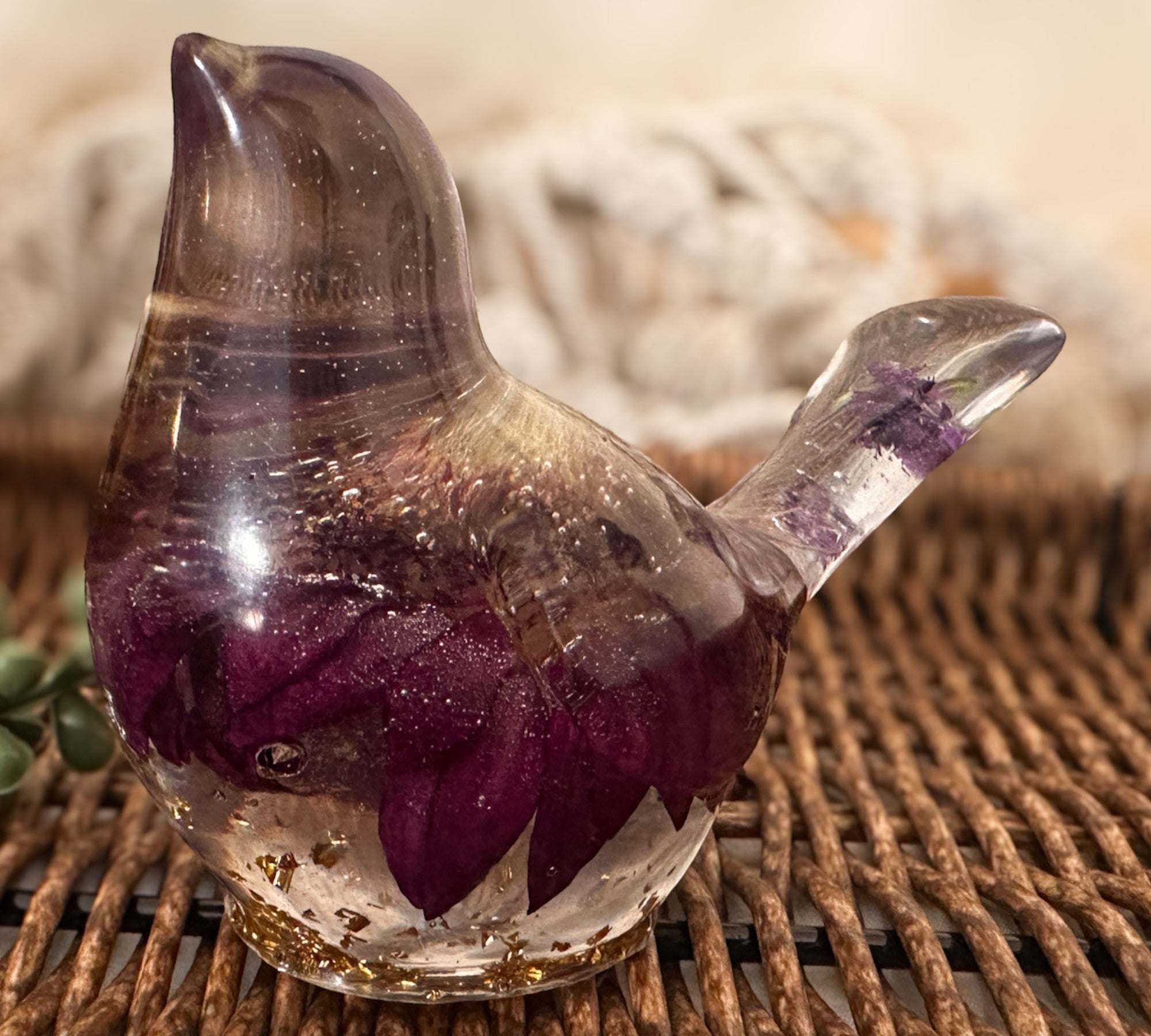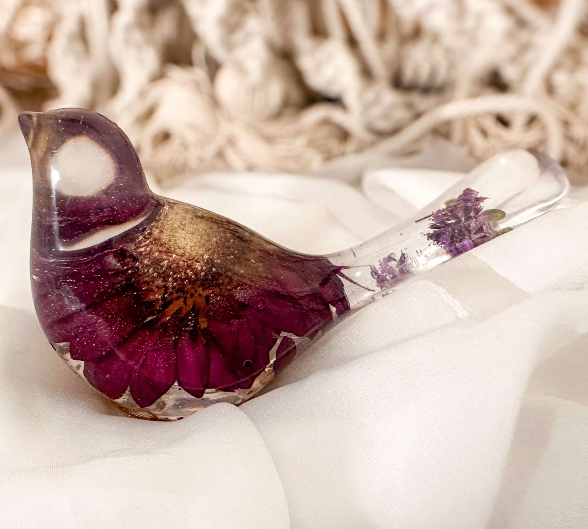 Enchanted Songbird - Handmade Purple Gerbera Daisy Resin Bird Decor
