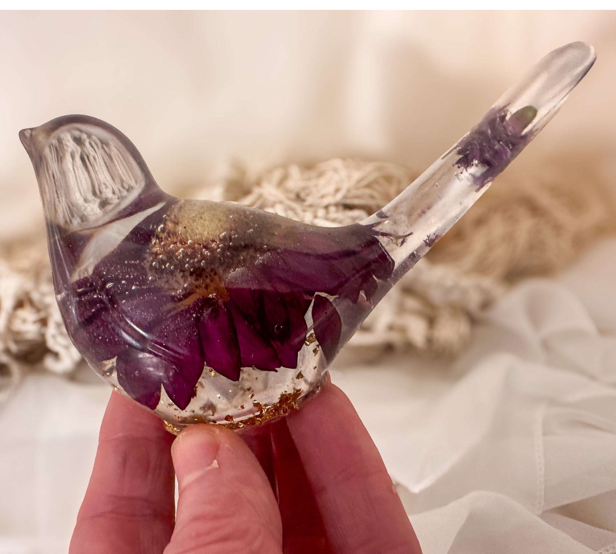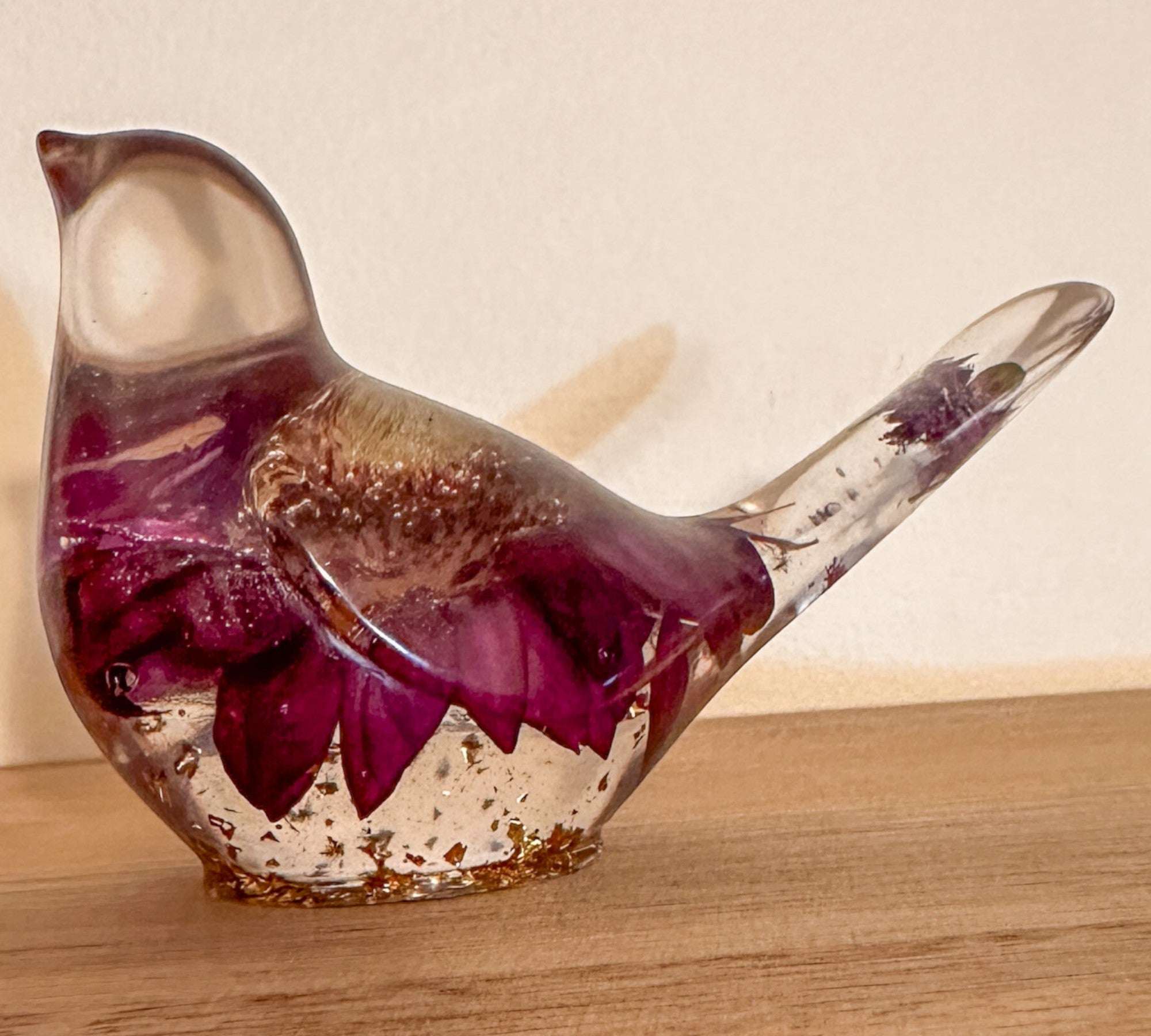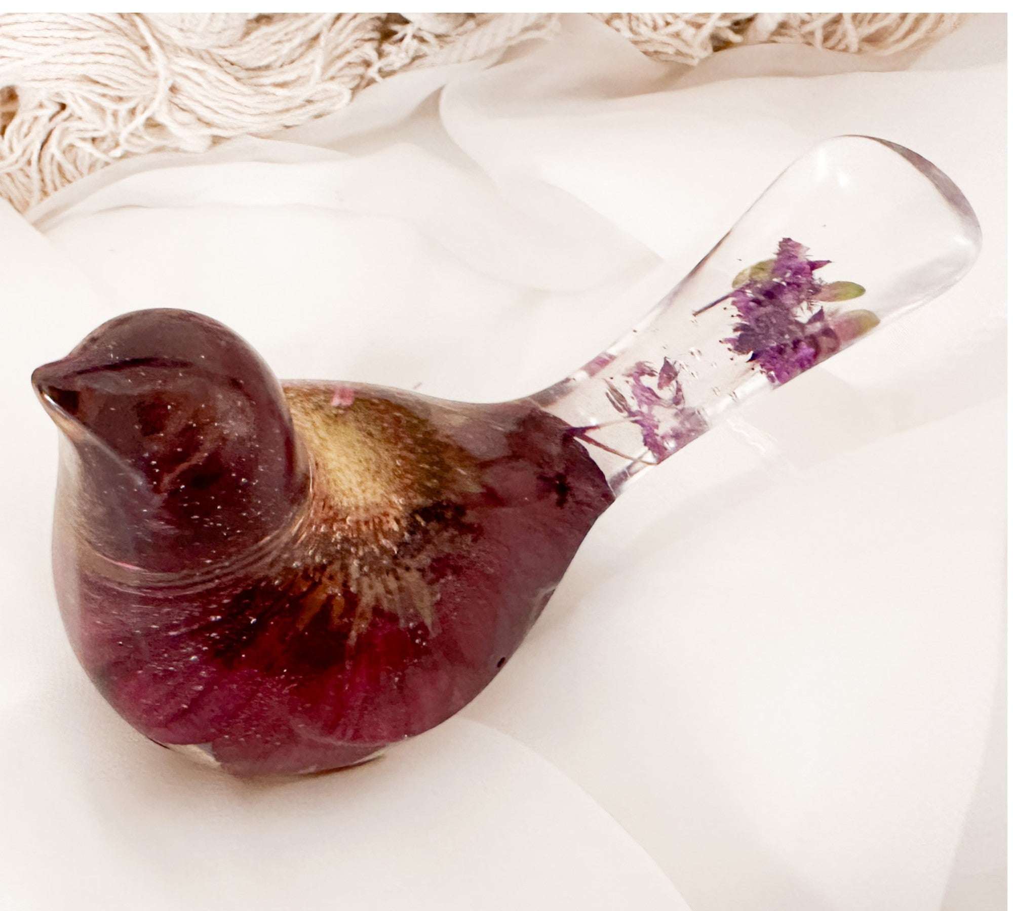 Enchanted Songbird - Handmade Purple Gerbera Daisy Resin Bird Decor