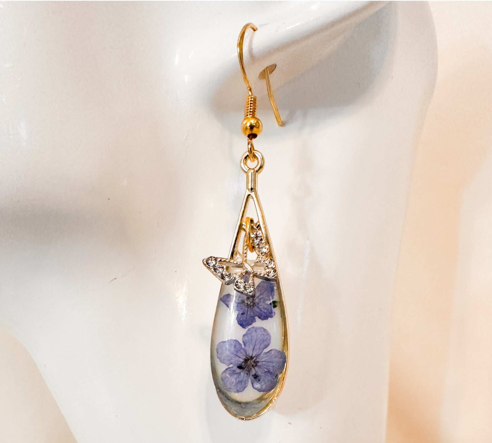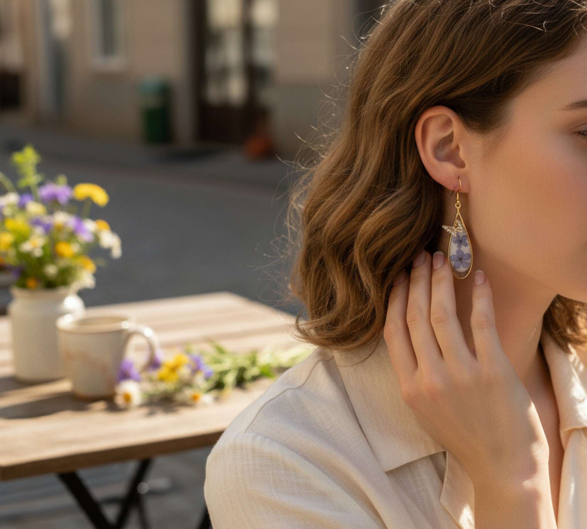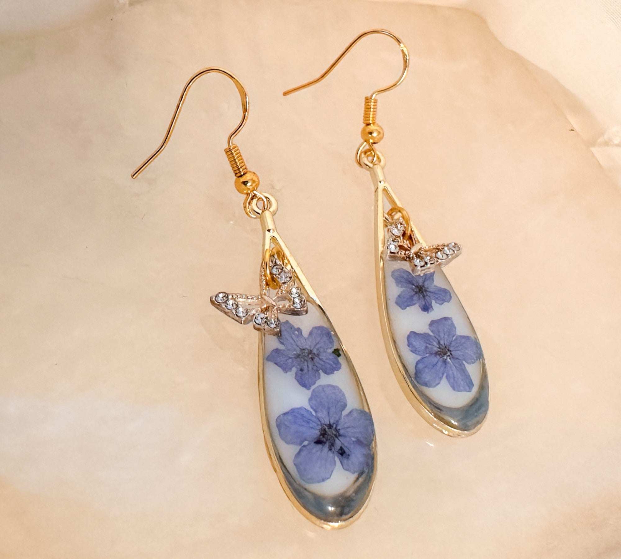 Delicate and full of meaning, these real pressed Forget-Me-Not Earrings capture the gentle beauty of nature in shimmering resin.