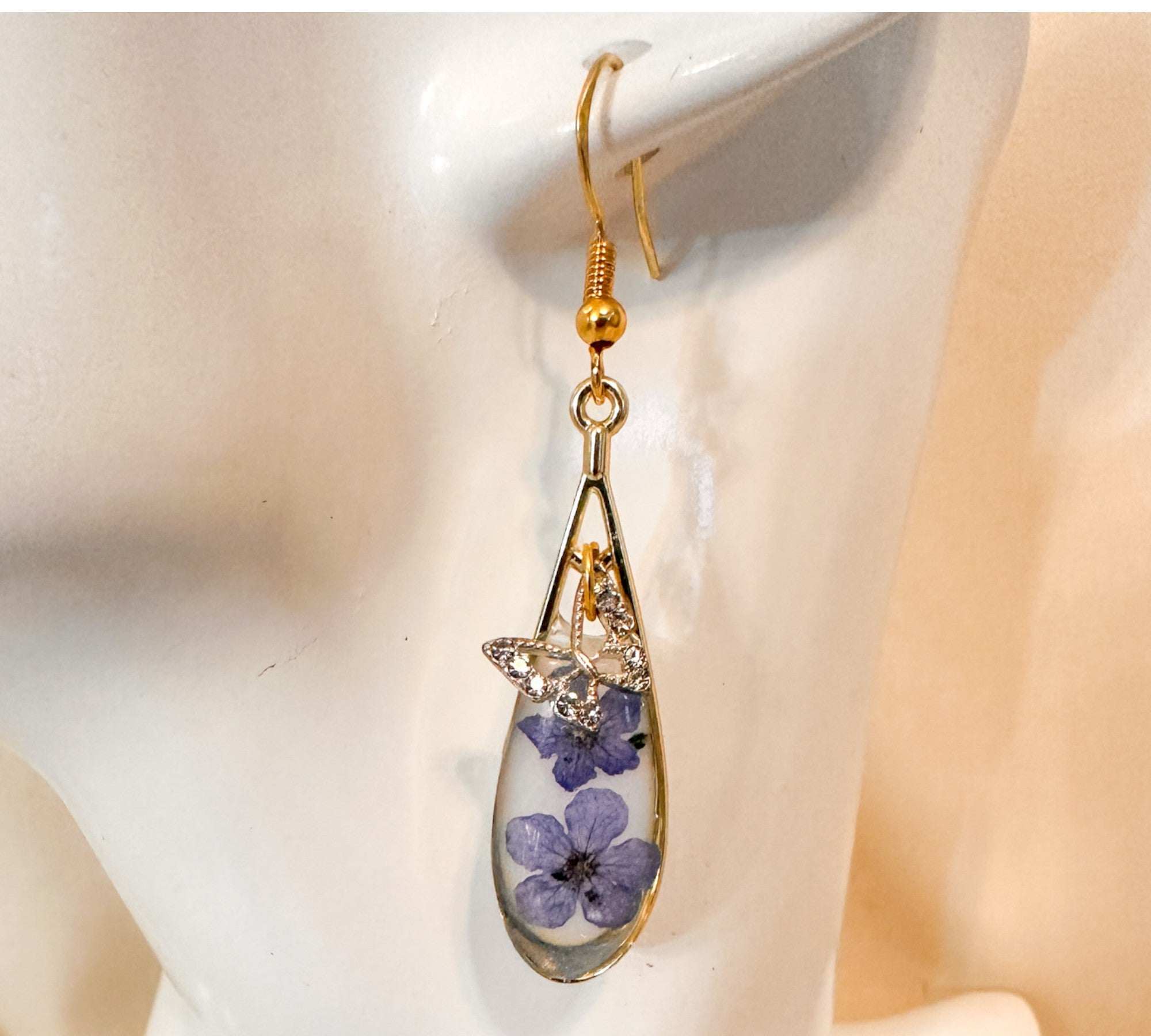 Forget-Me-Not Teardrop Earrings measure 1.5" L