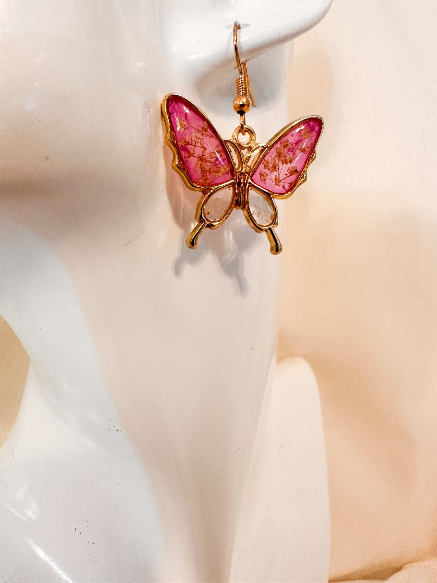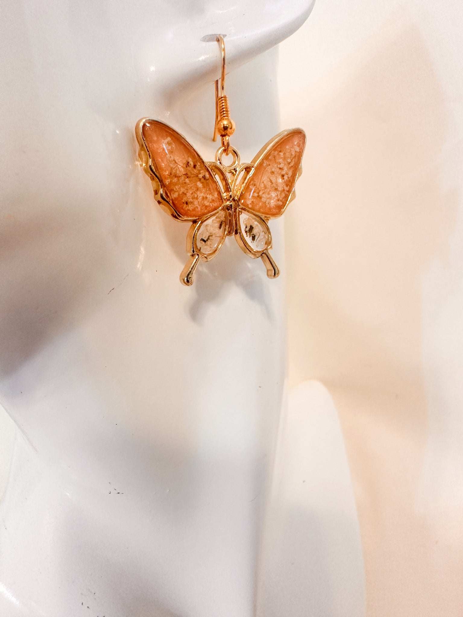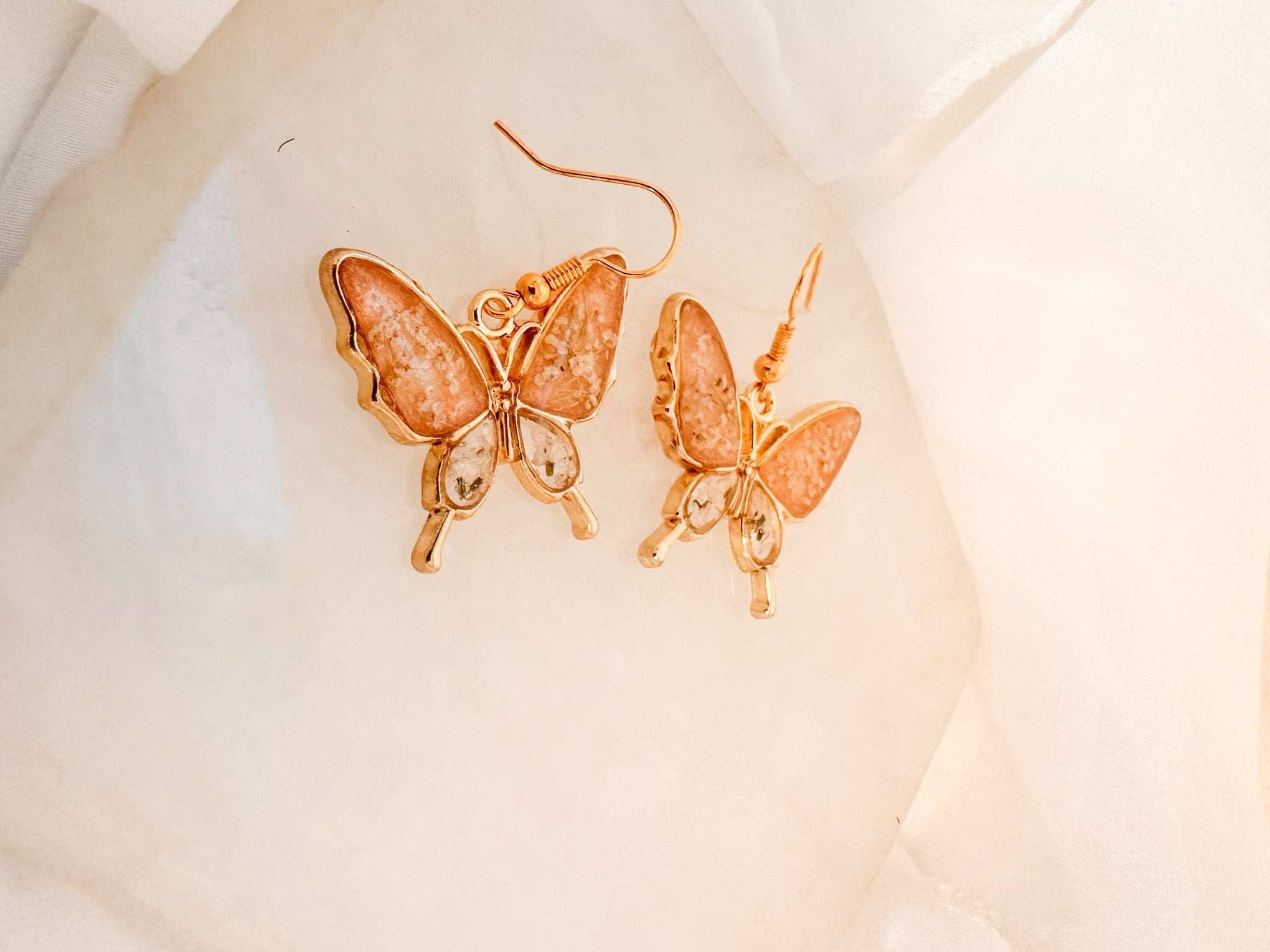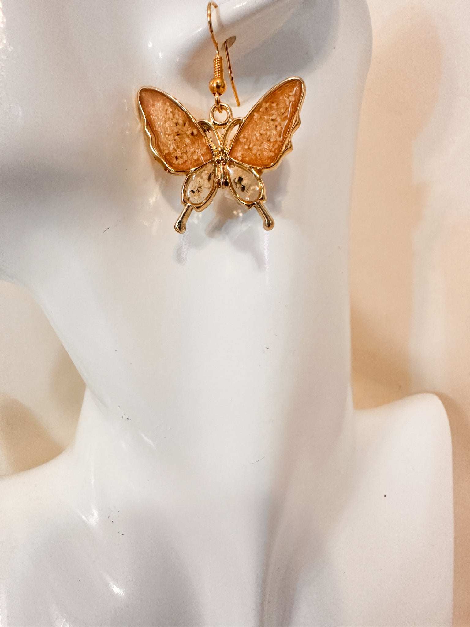 Butterfly - Golden Garden Wings - Handmade Dried Flower Resin Earrings