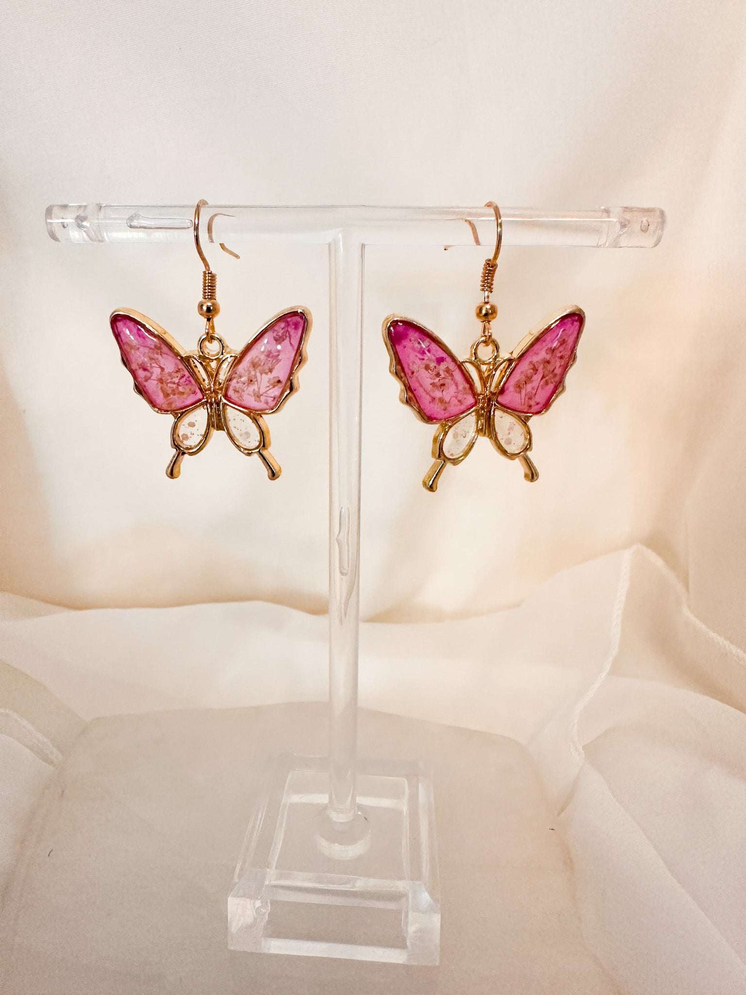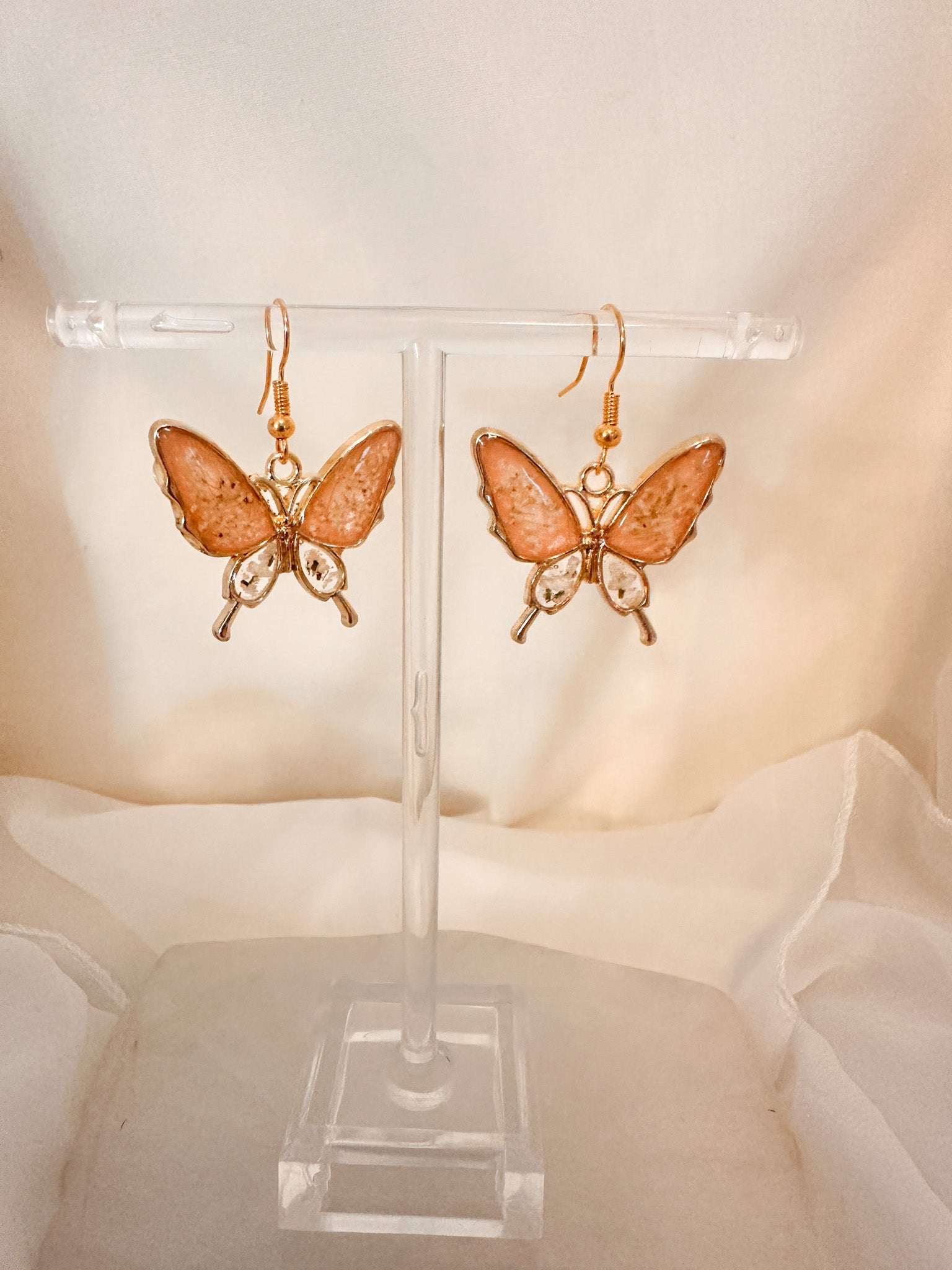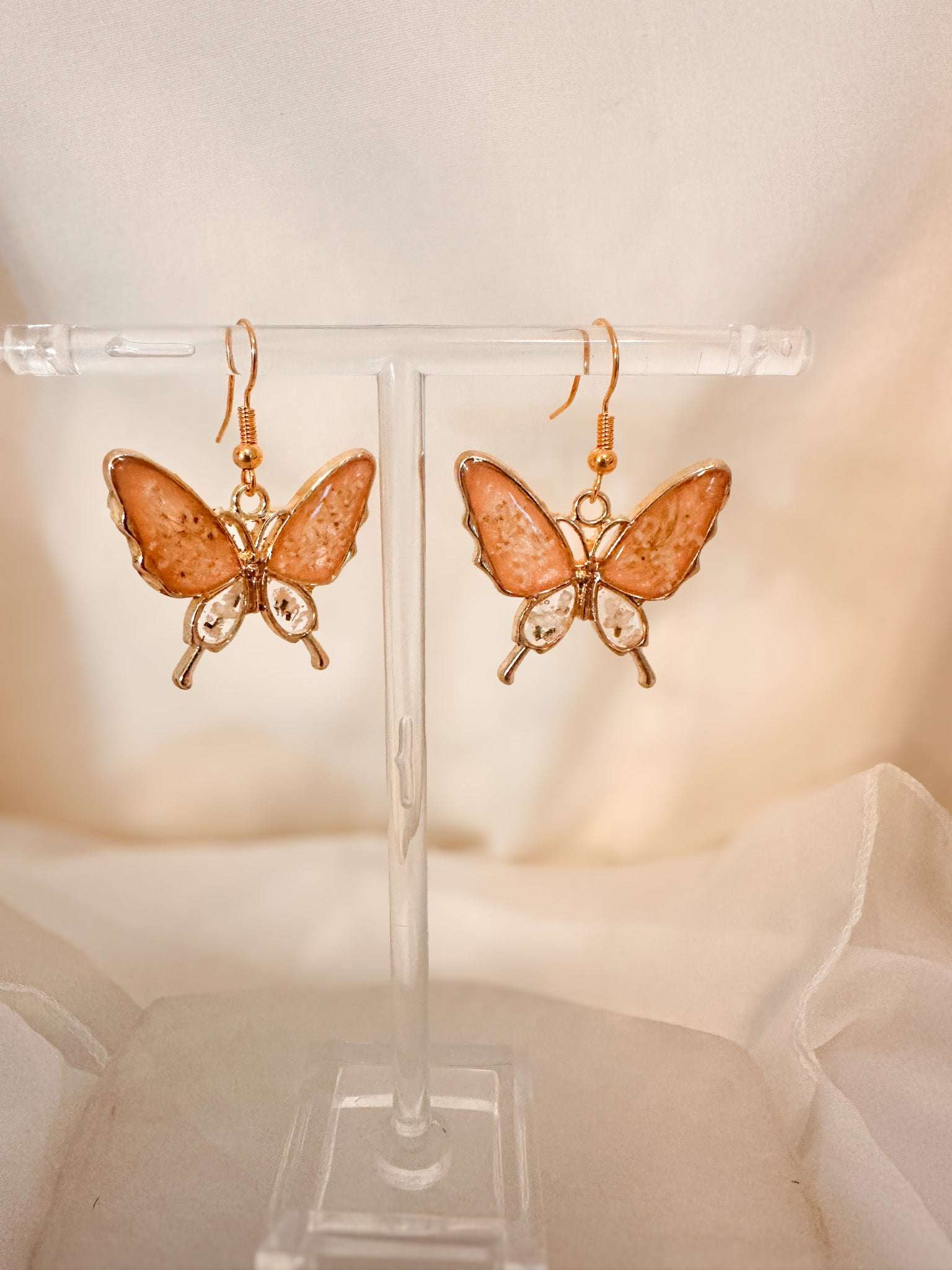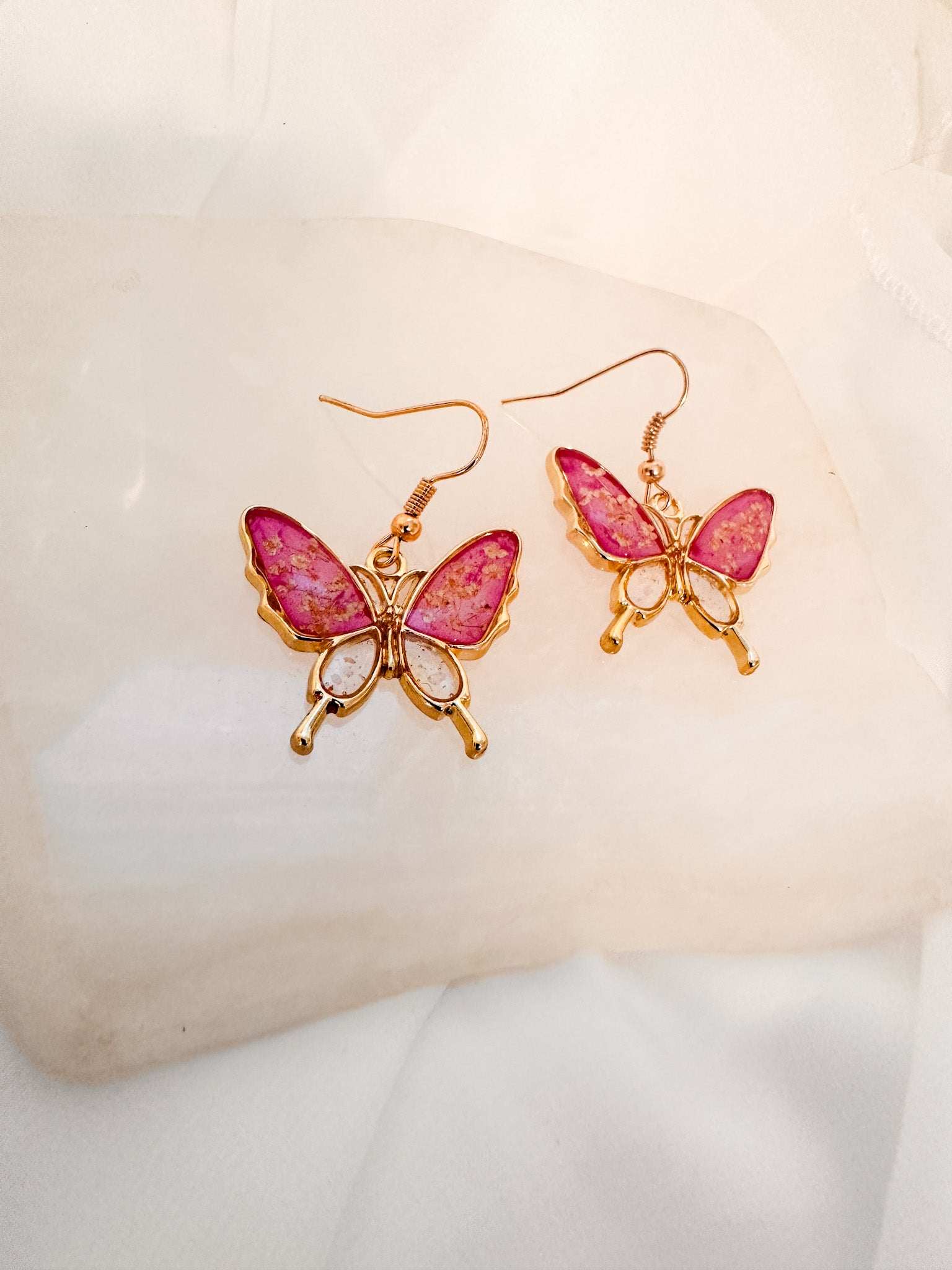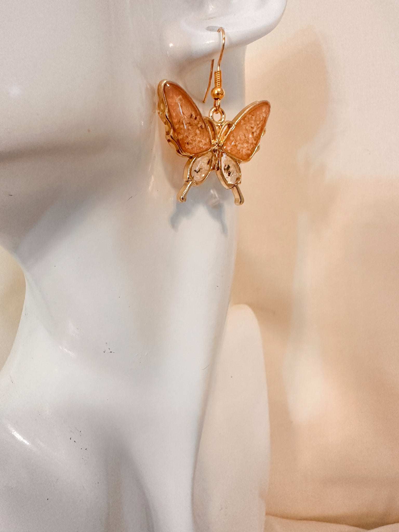 Butterfly - Golden Garden Wings - Handmade Dried Flower Resin Earrings