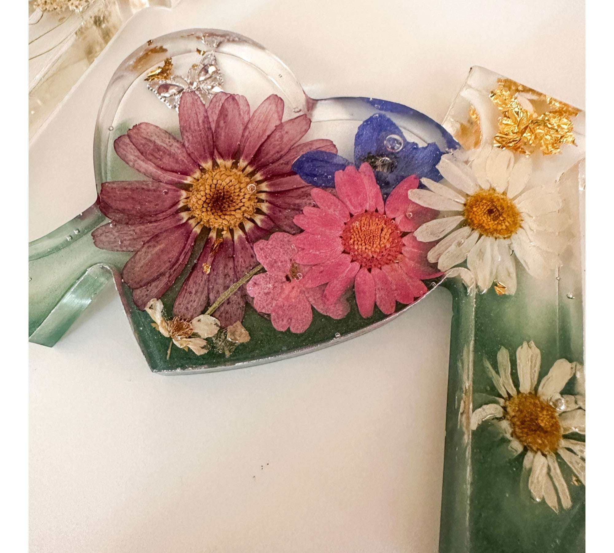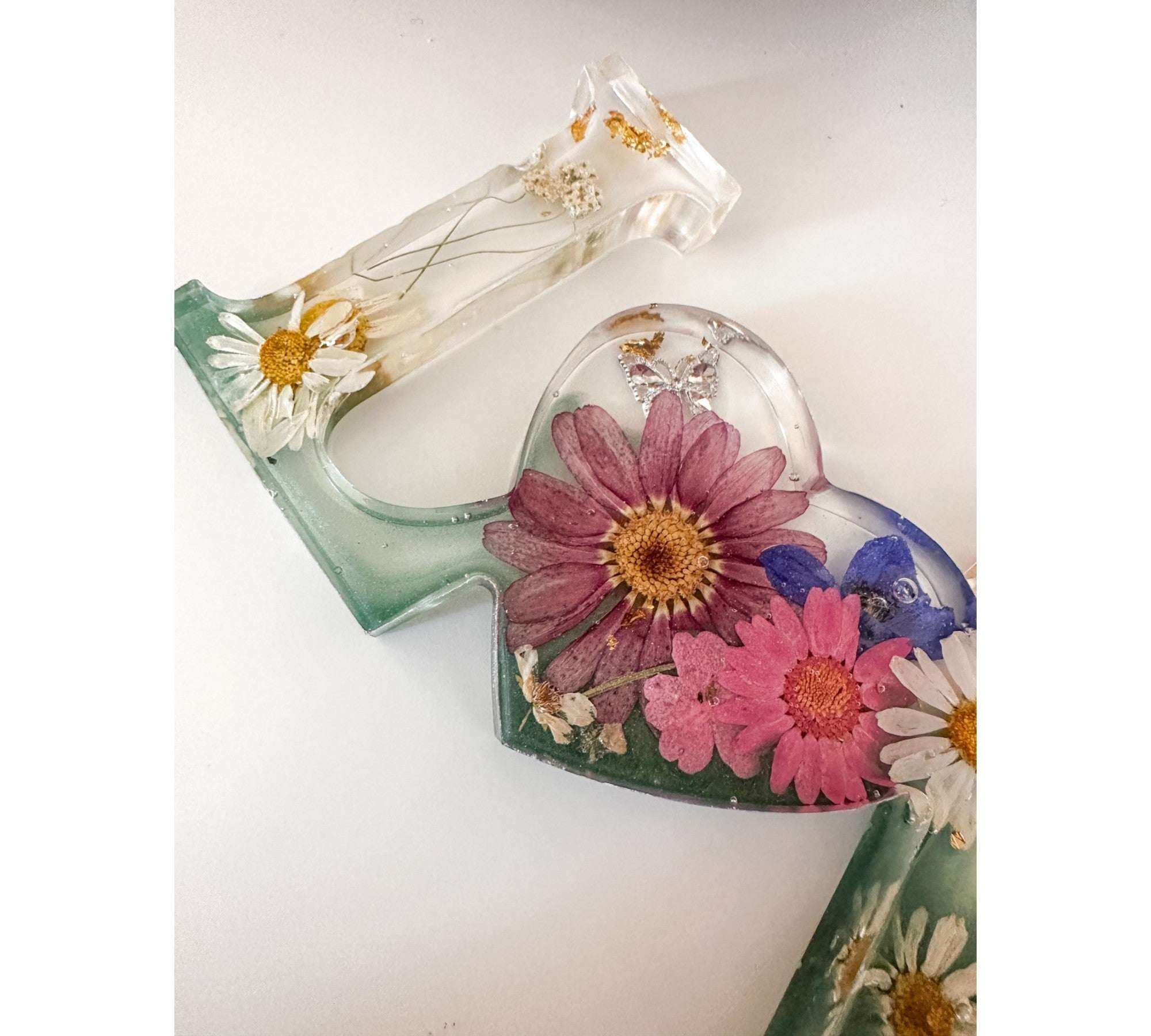 These pieces look most magical when they catch the light! A windowsill, mantel, or bookshelf is perfect. While our resin is high-quality and UV-resistant, we recommend avoiding 24/7 direct, intense sunlight to keep the natural botanical colors vibrant for as long as possible.