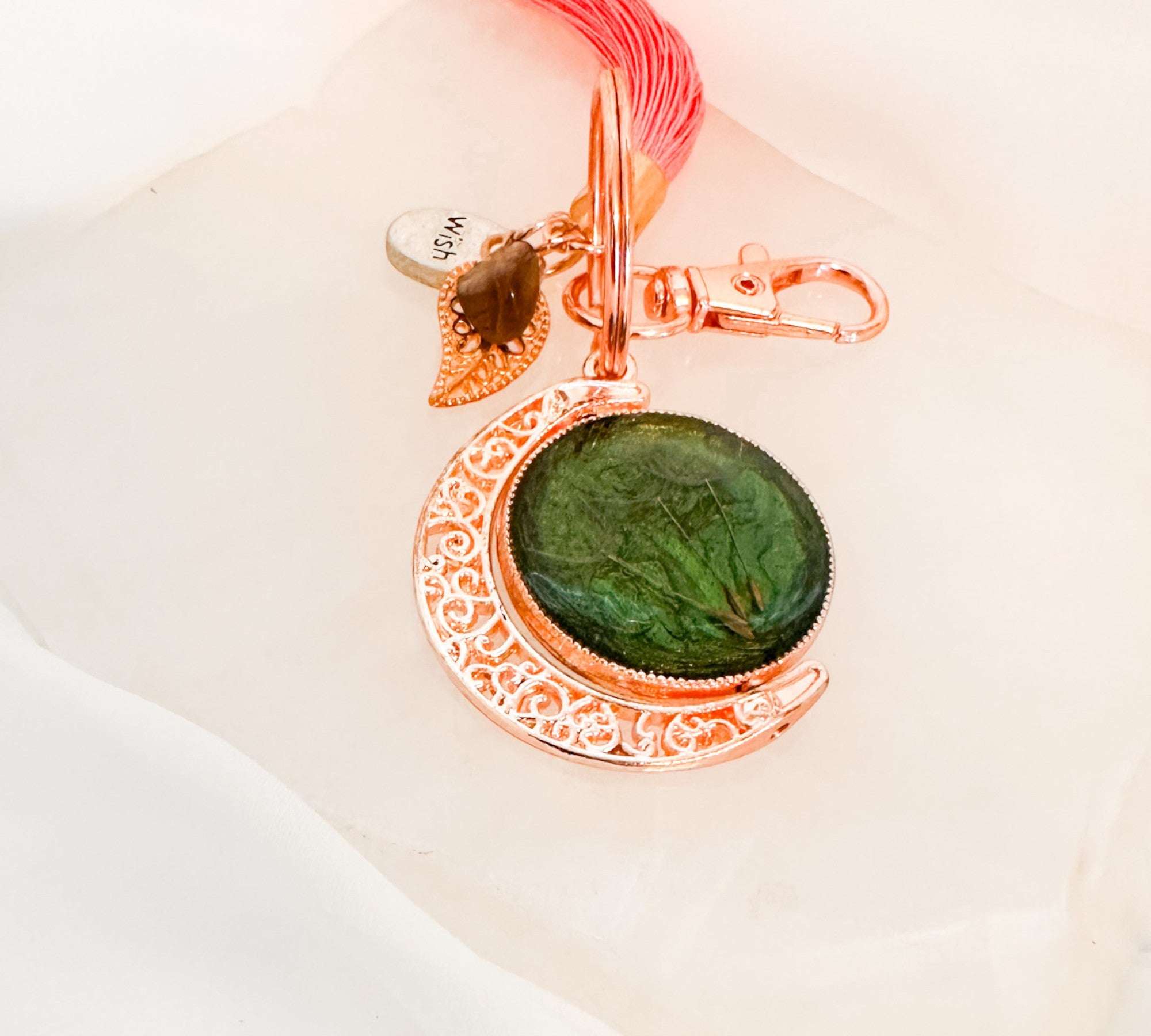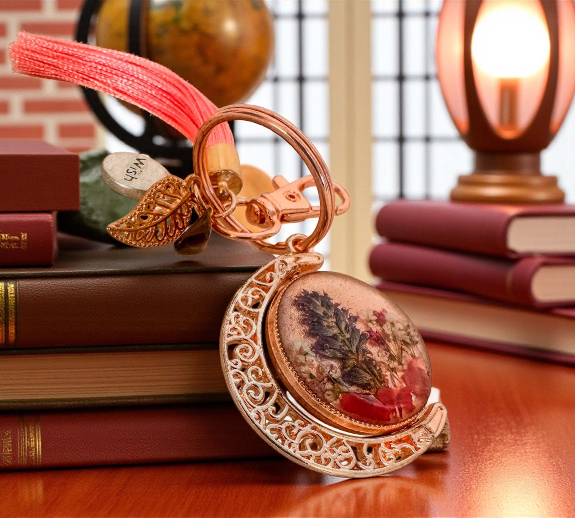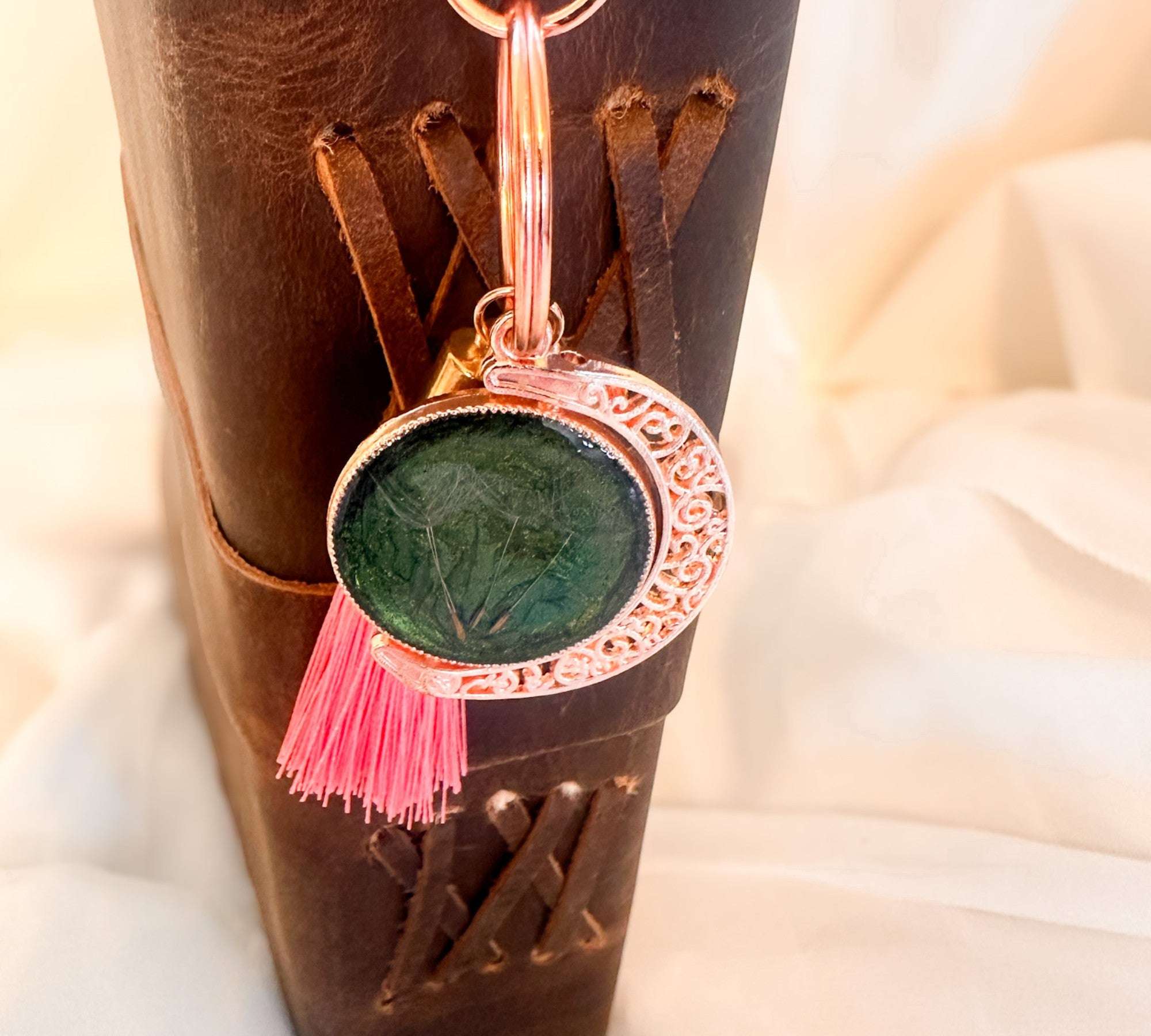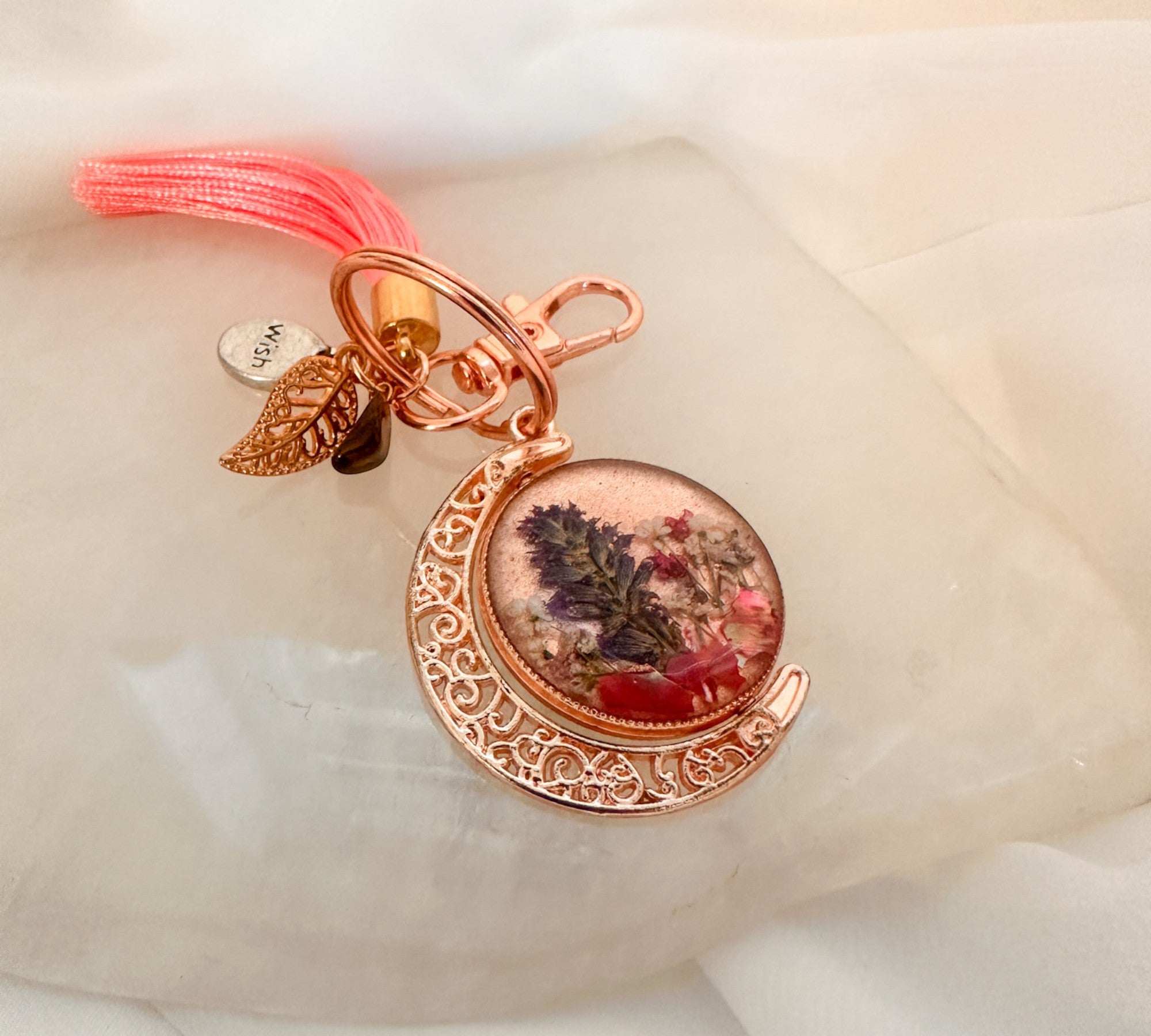 Moonlight Wishes Keychain – Rose Gold Floral & Dandelion Wish Charm