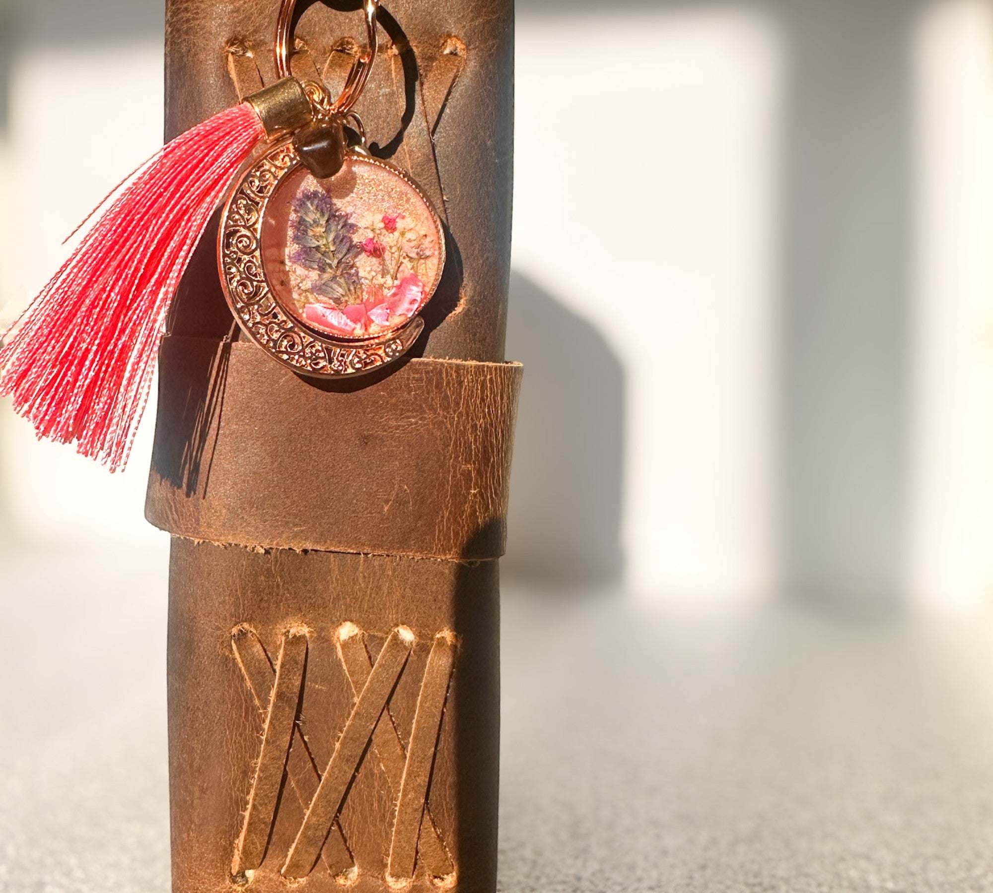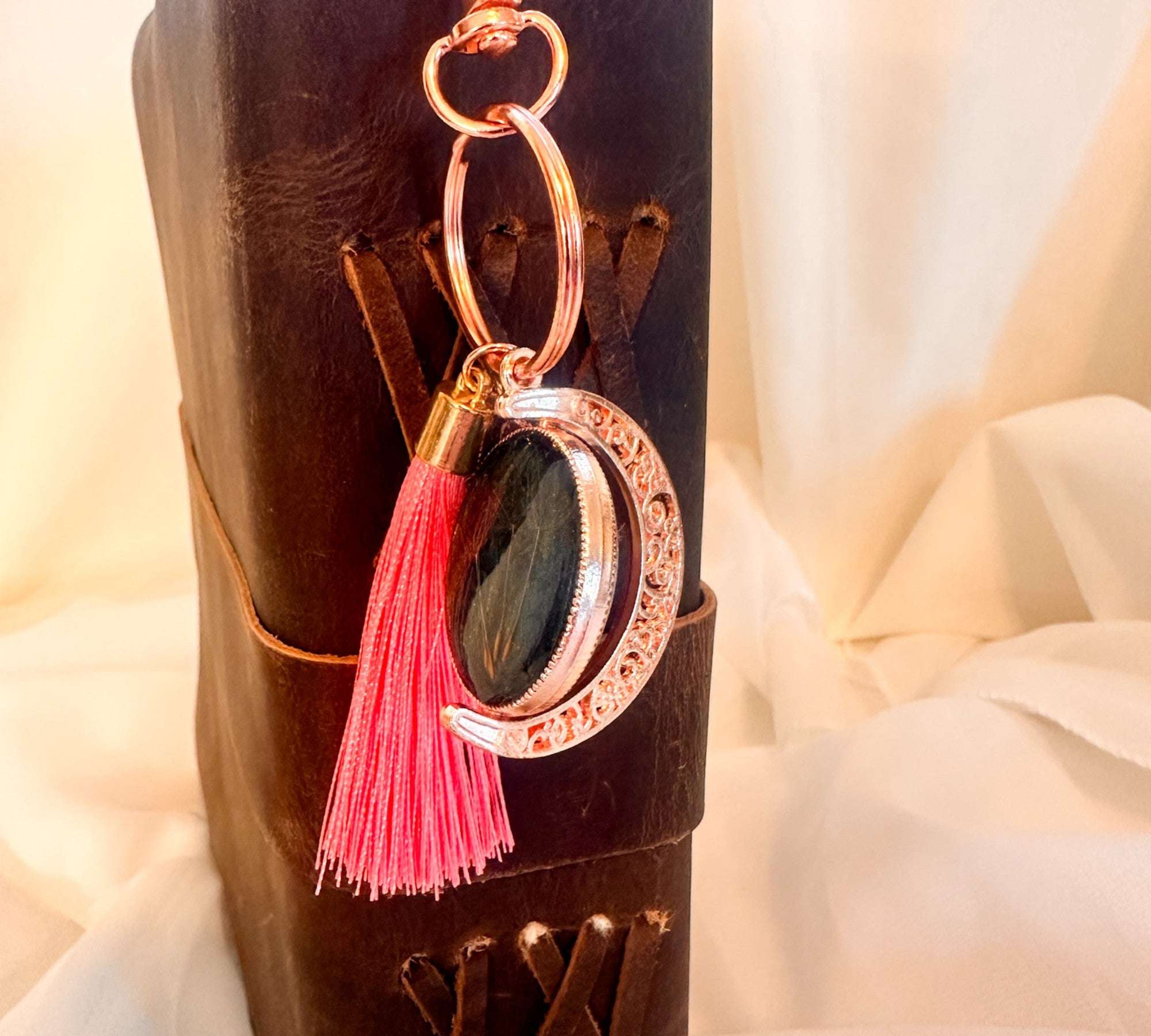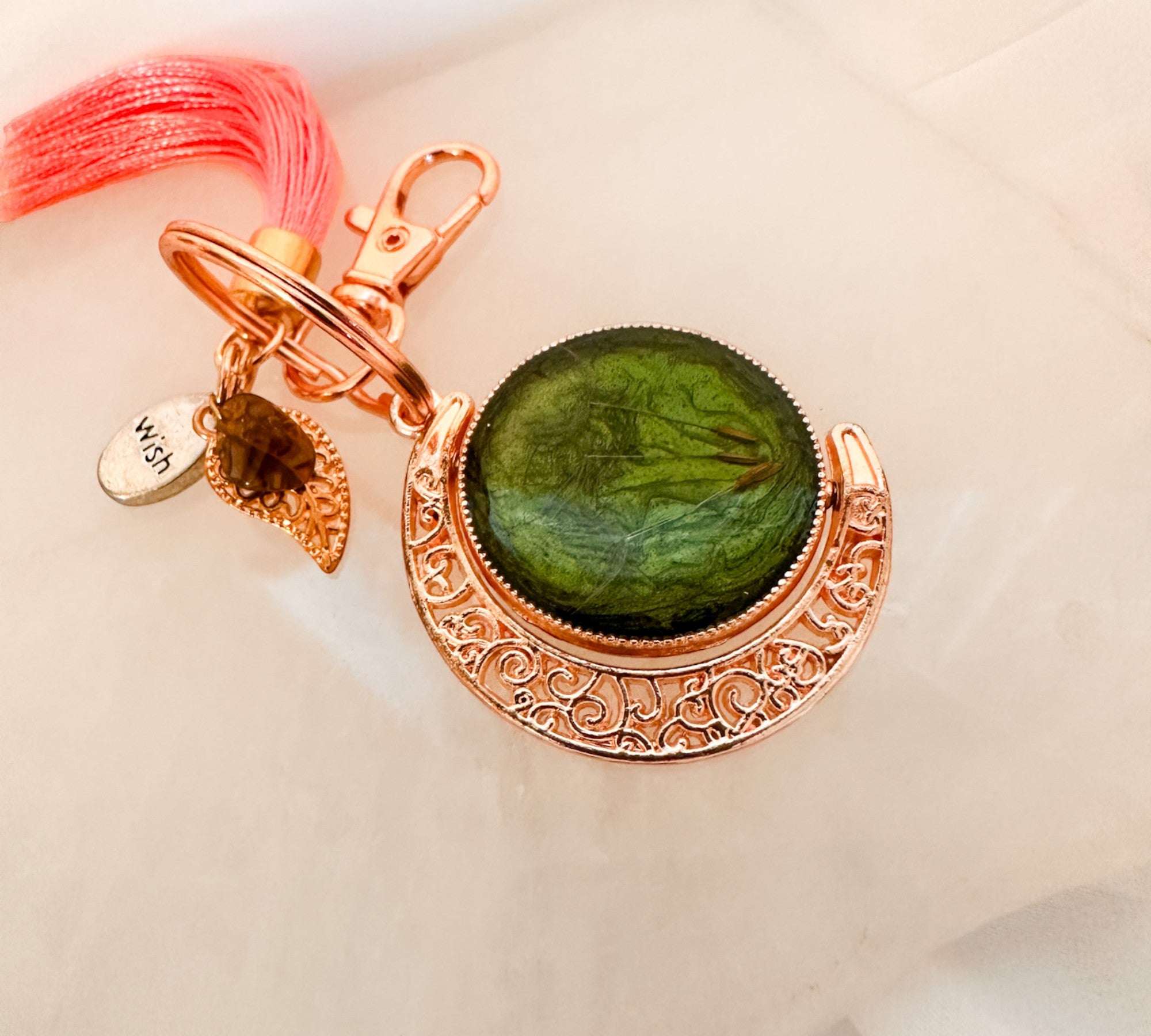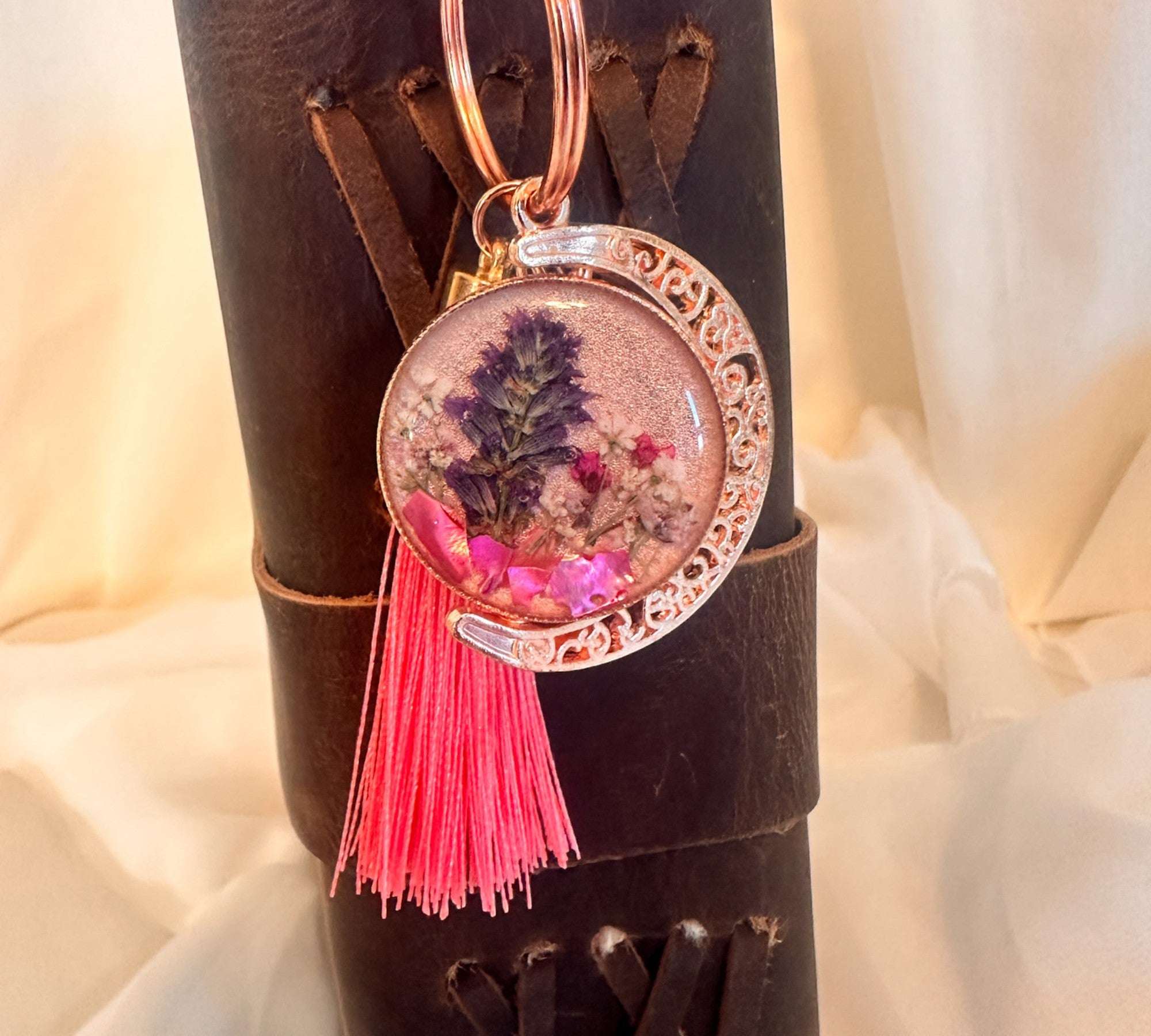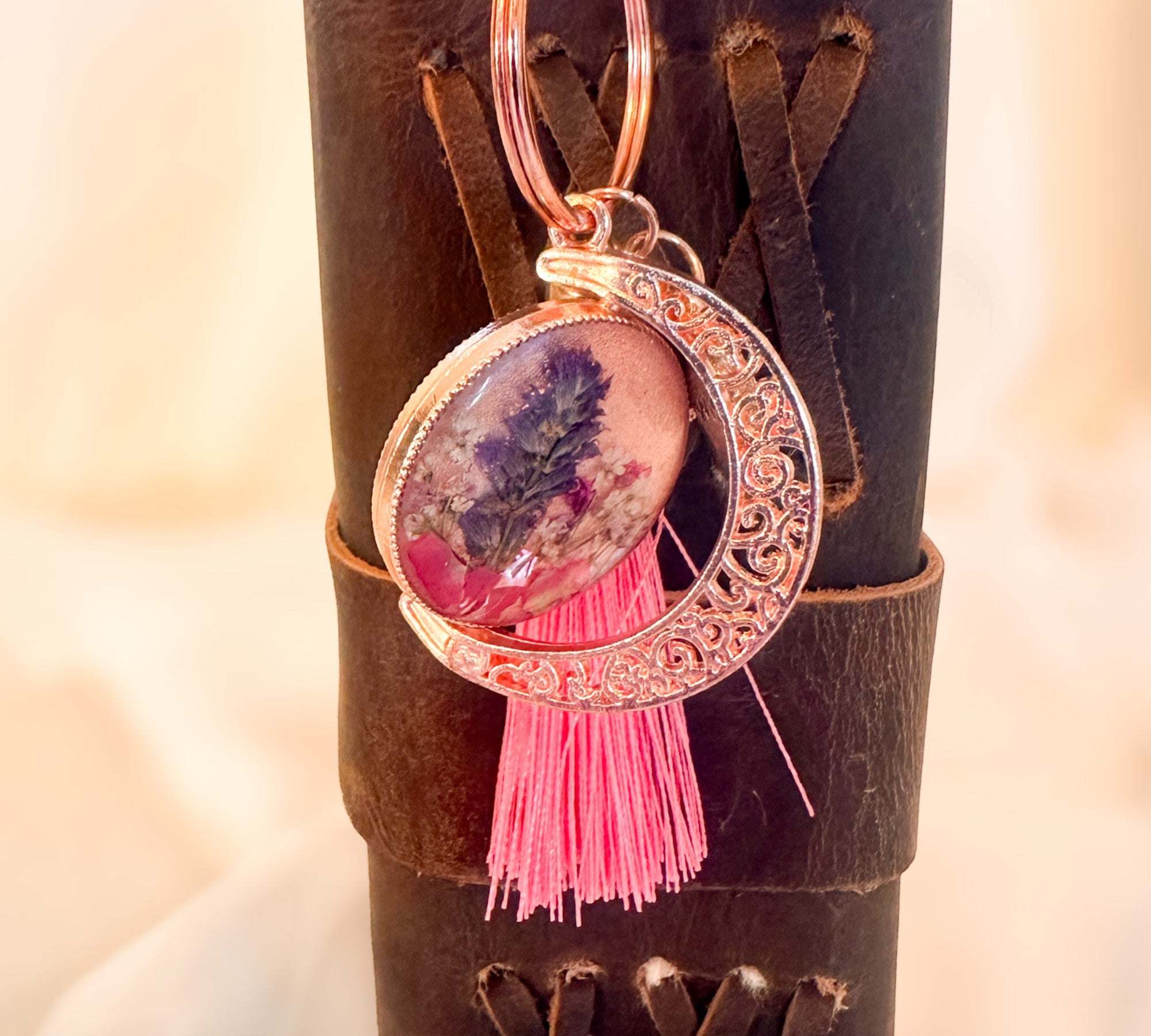 Moonlight Wishes Keychain – Rose Gold Floral & Dandelion Wish Charm