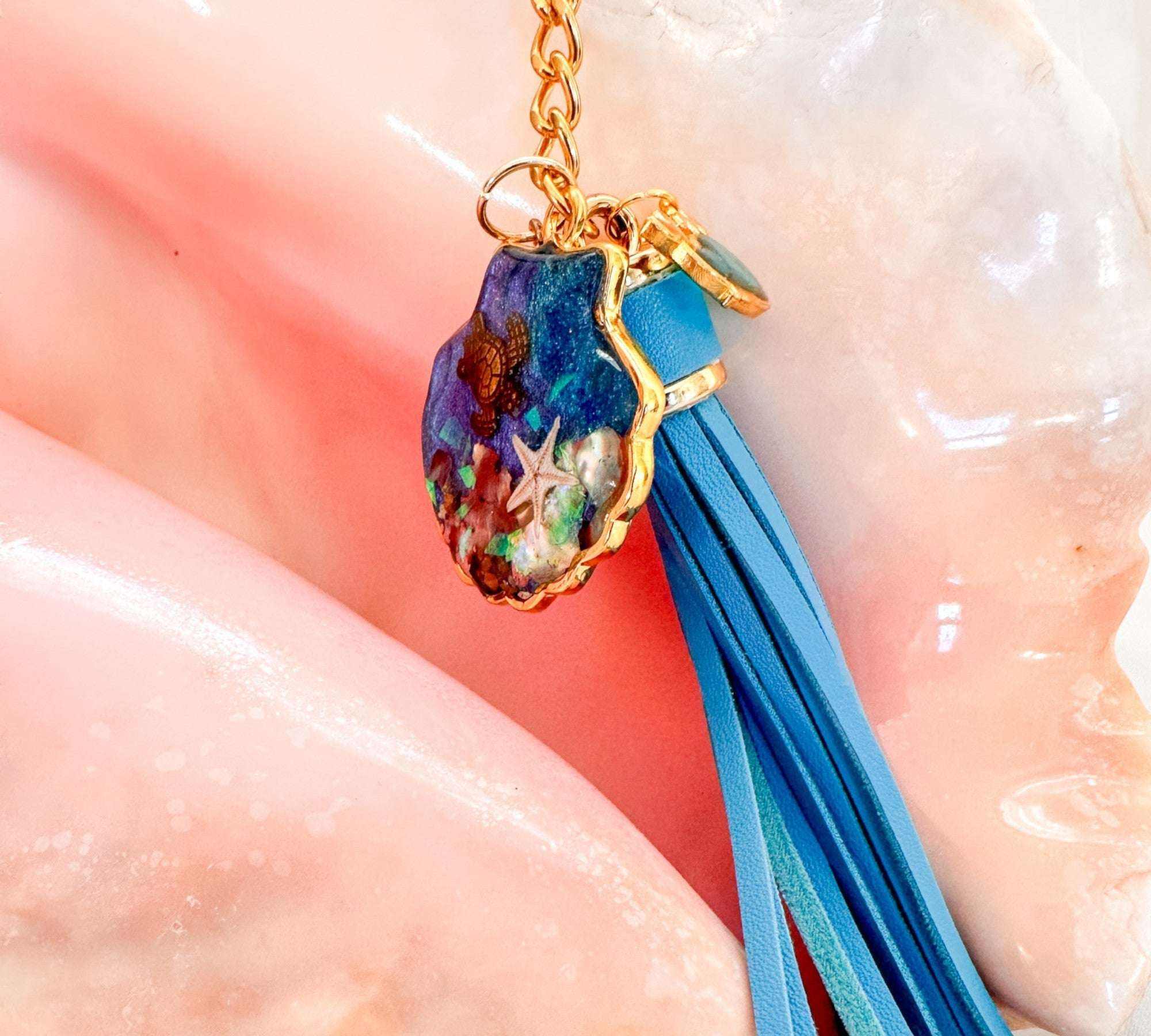 Bring the magic of the sea wherever you go with this stunning, handcrafted resin bag charm and keychain.