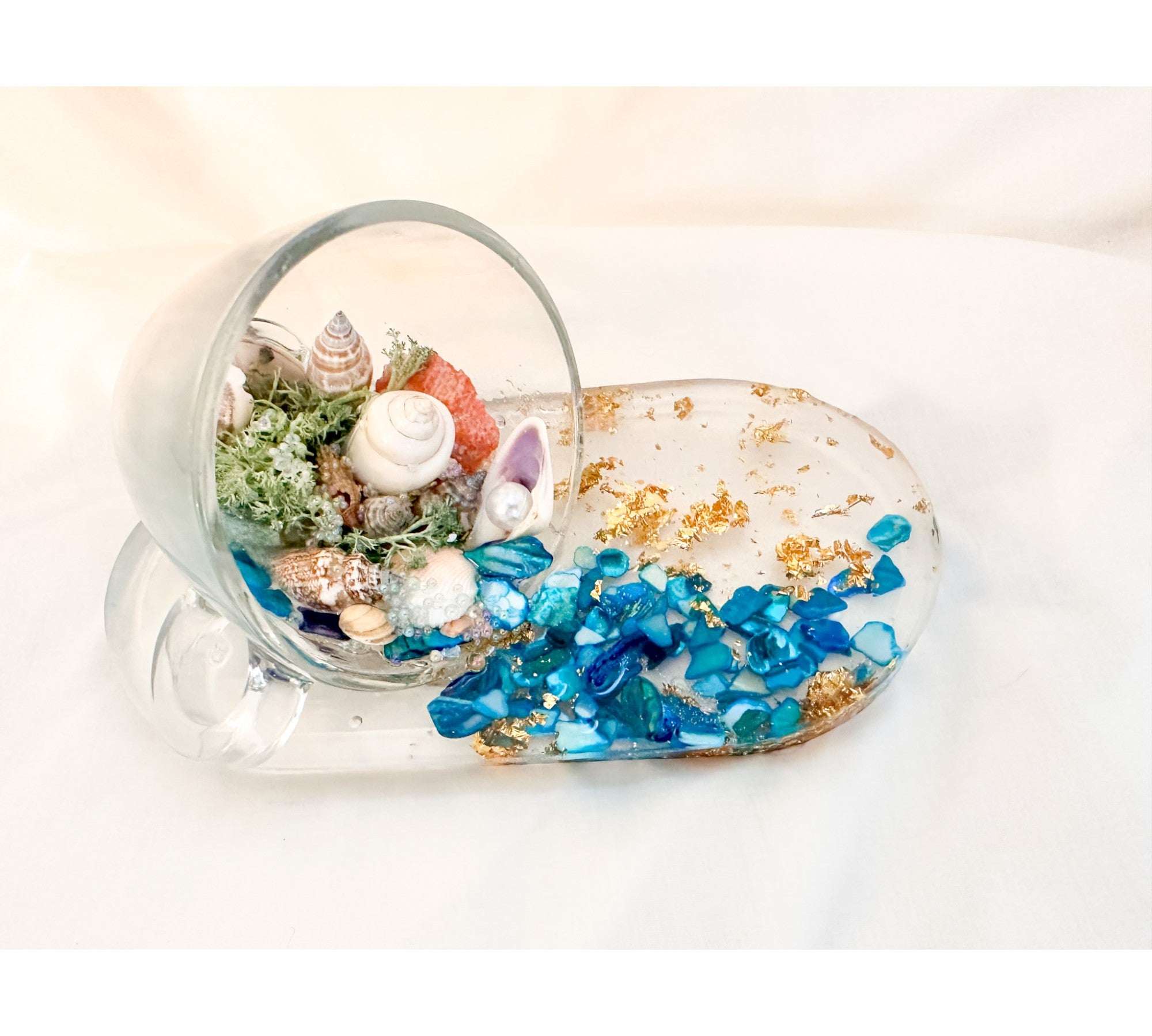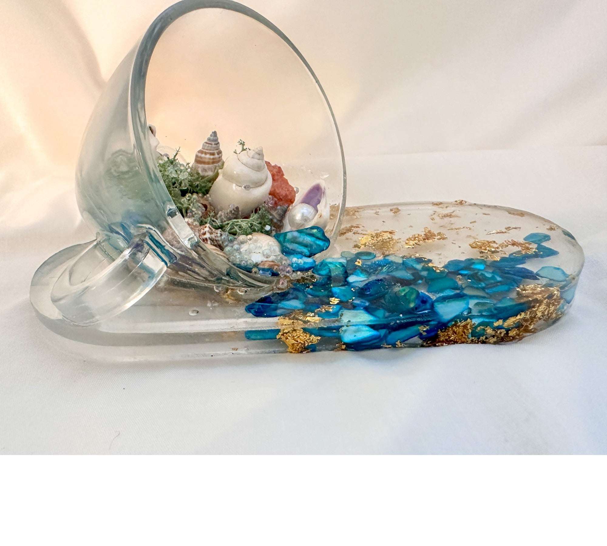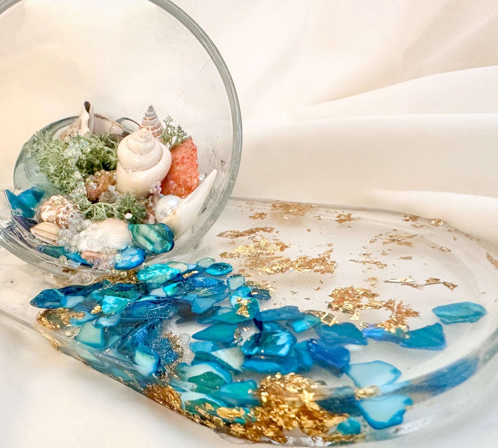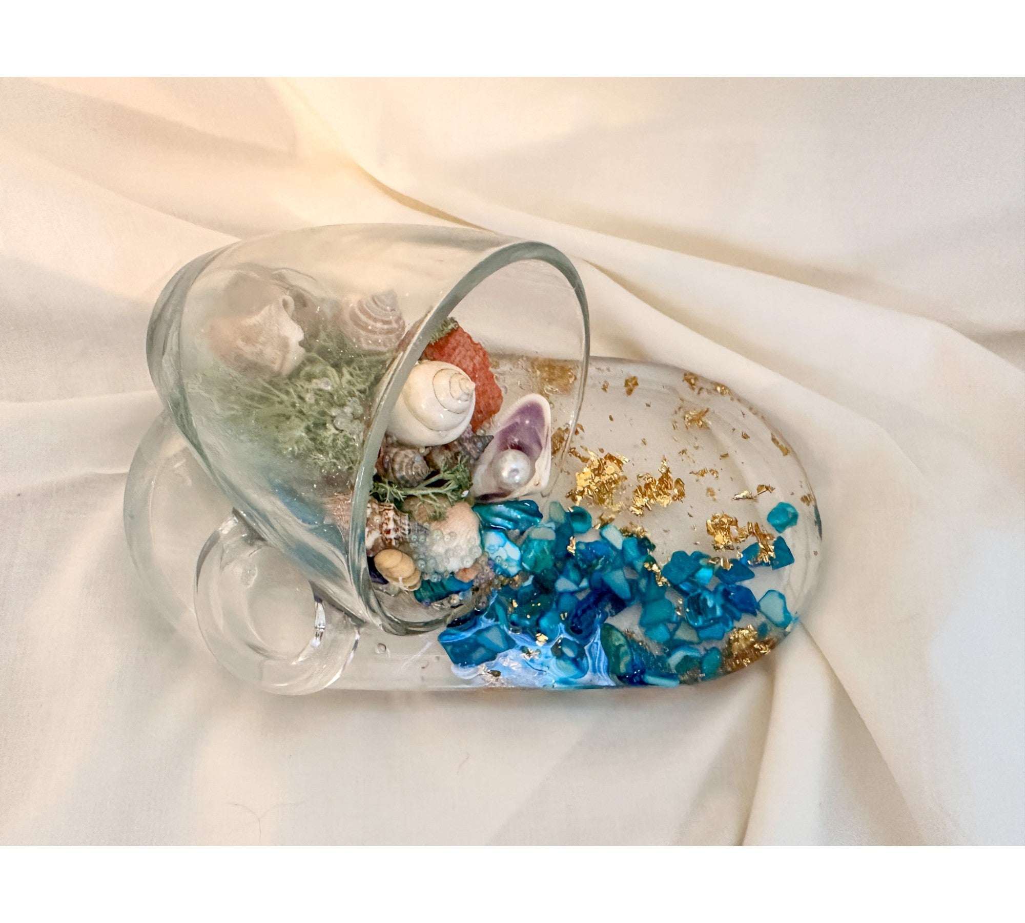 Ocean Spillover Mug Tray - Whimsical Handmade Beach Resin Art