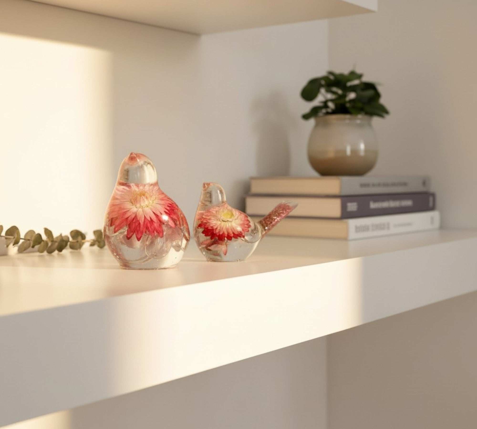 • Artisan Craftsmanship: Each bird is hand-poured individually in high-quality resin, keeping the botanicals vivid and the gemstones perfectly suspended for years to come