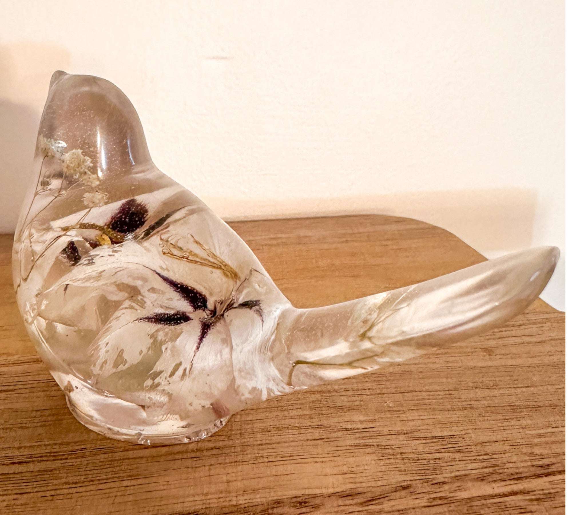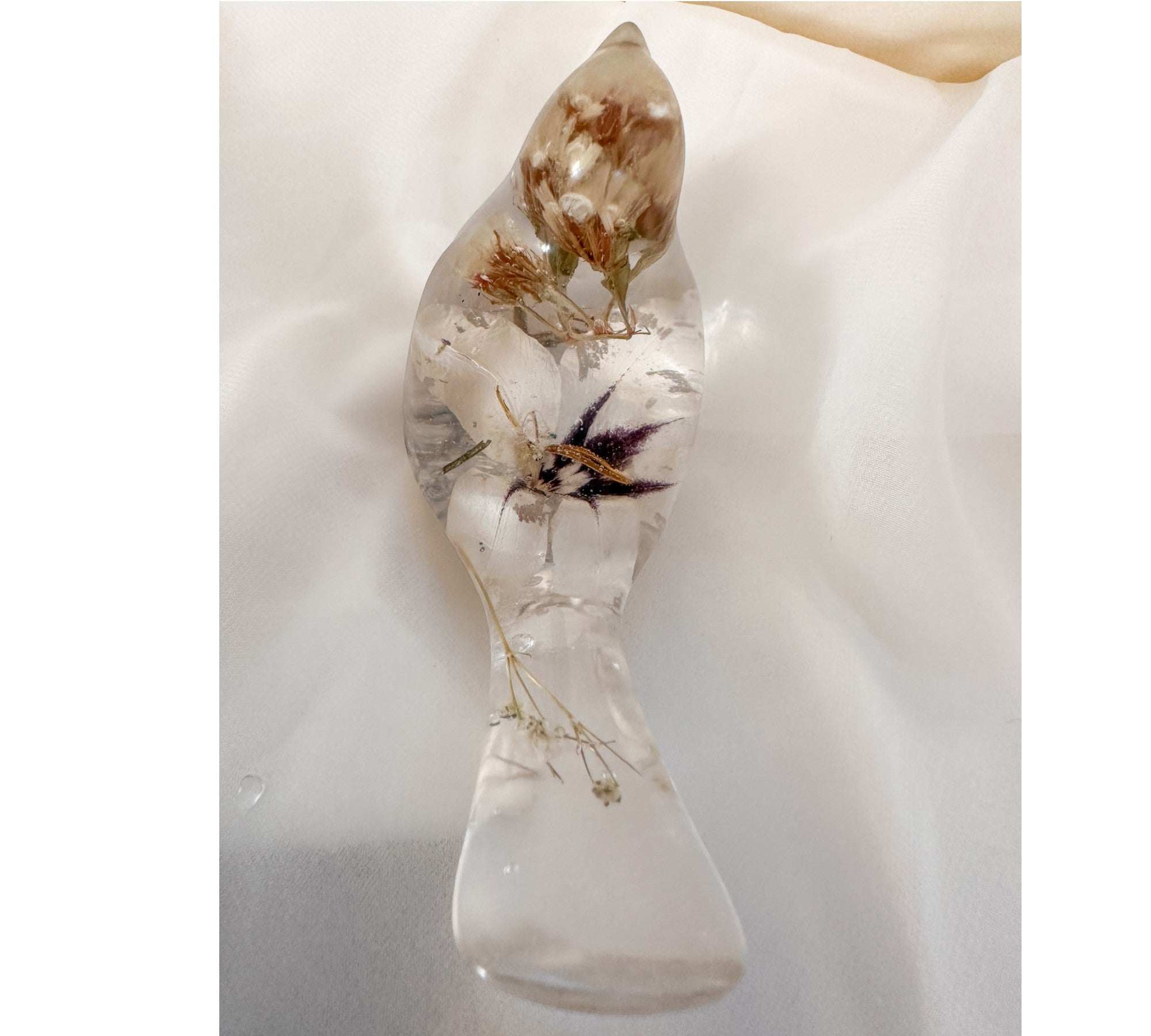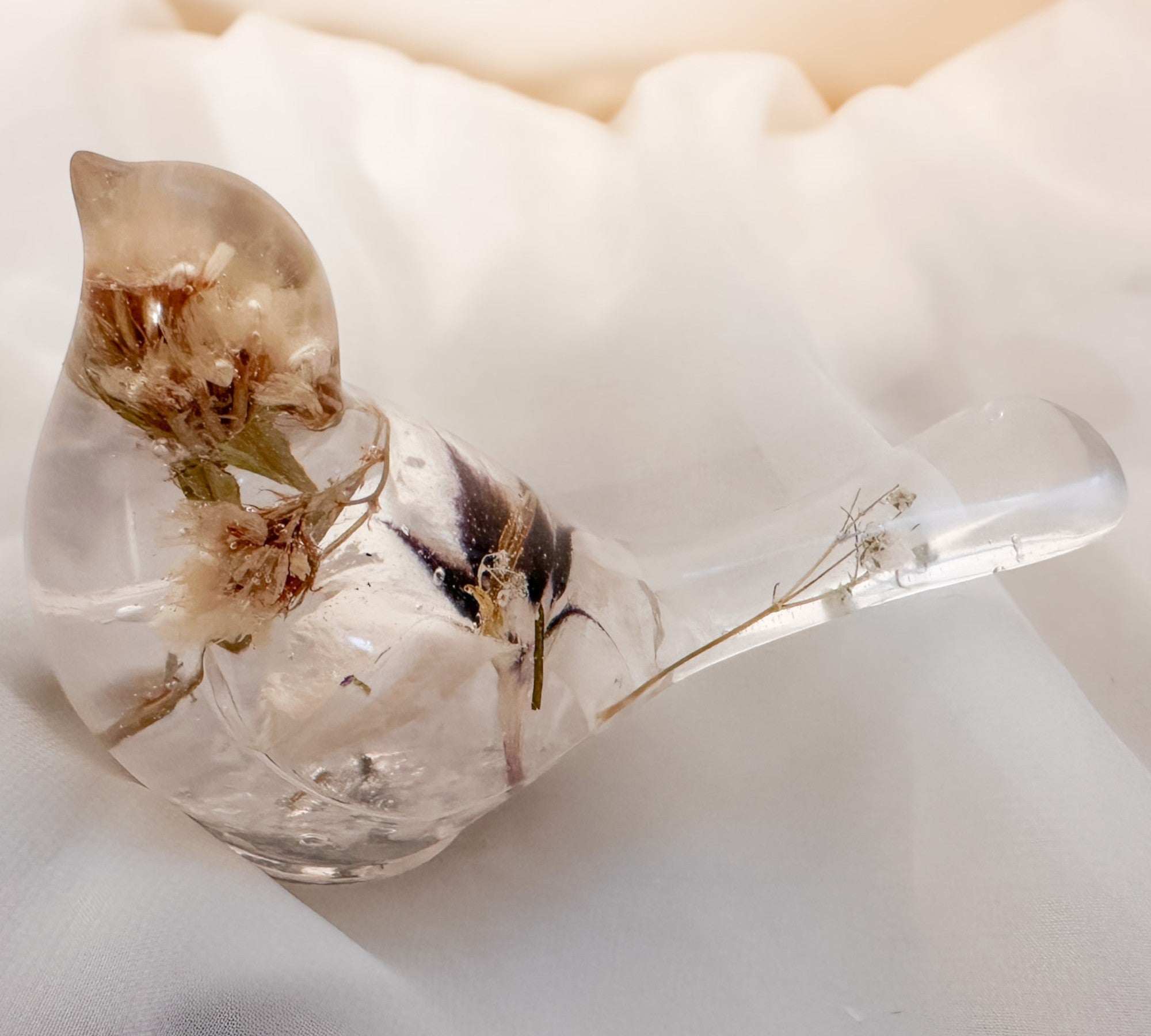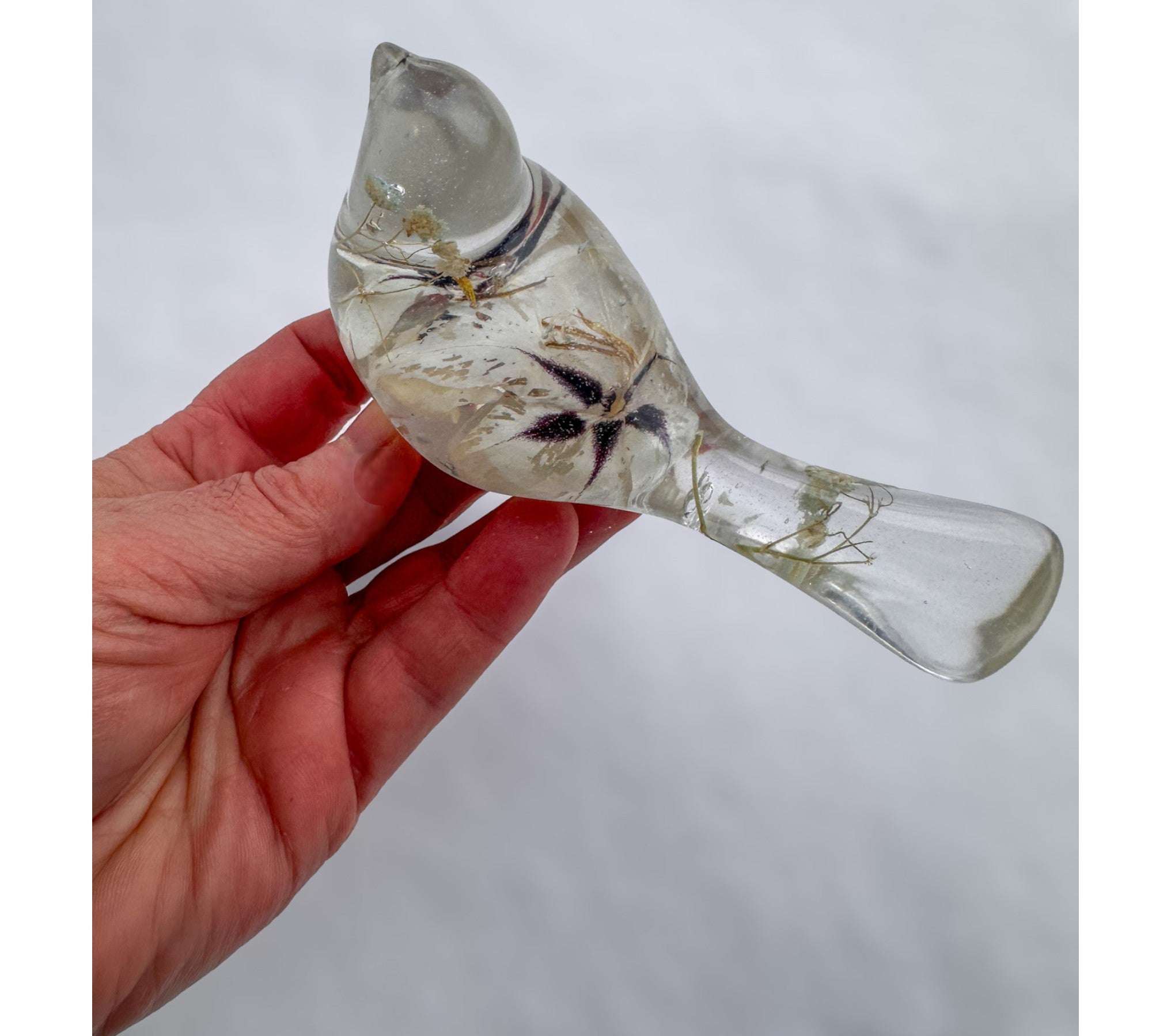 Starlit Peacock Orchid Songbird – Handmade Floral Resin Bird Decor